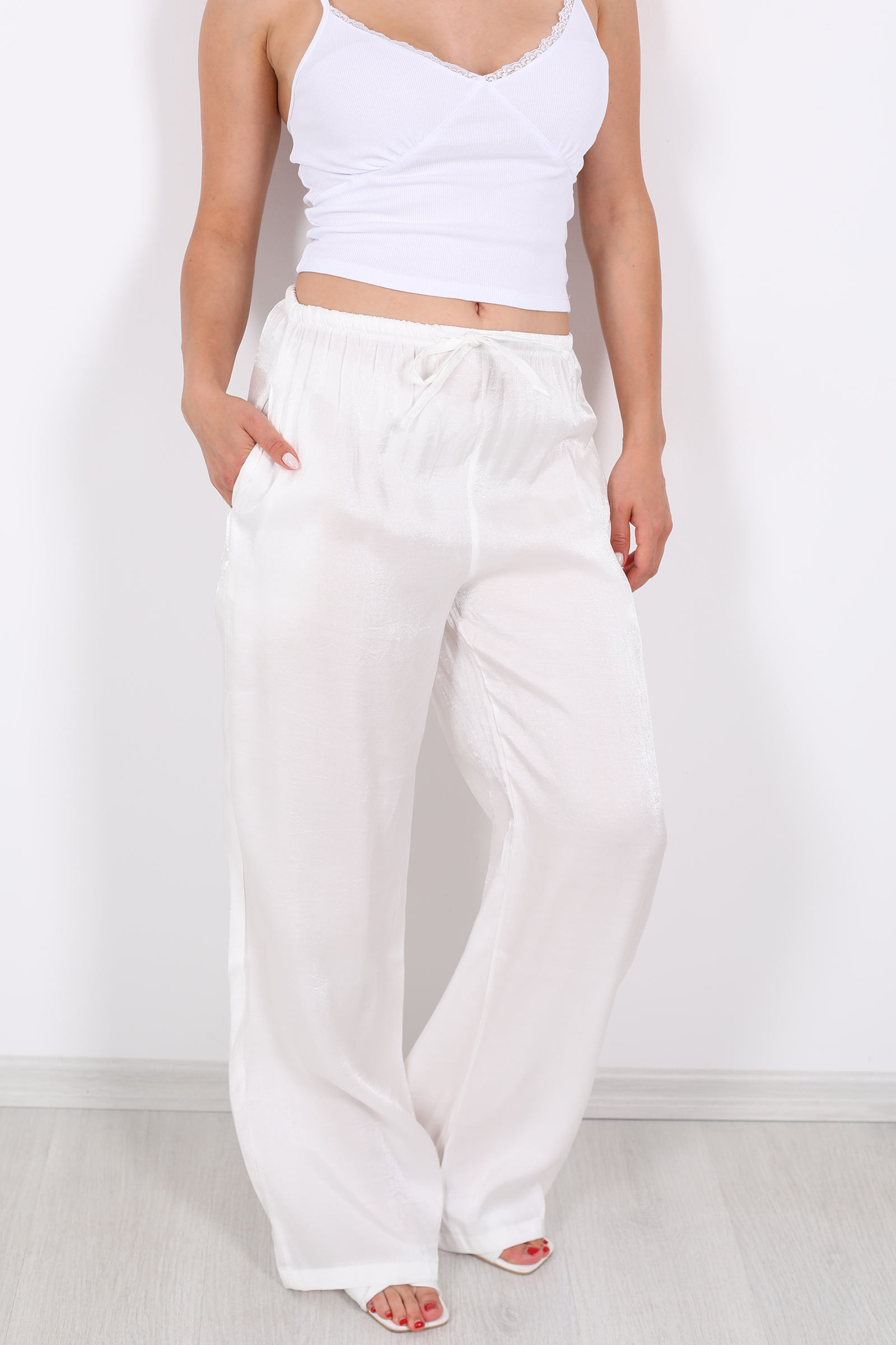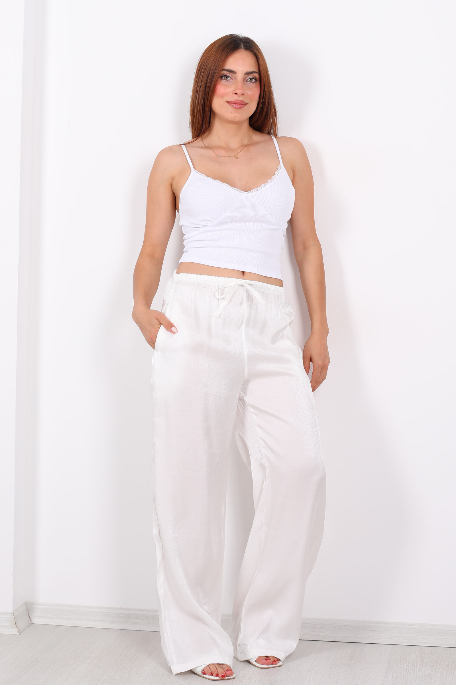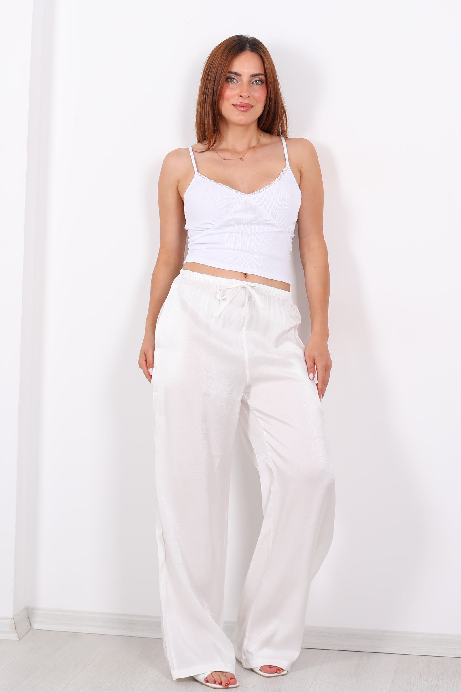 Zarif ve şık duruşunuza parlak beyazın saf enerjisini eklemek isteyenler için Berox ince kemerli saten pantolon, kusursuz bir tercih. İnce kemer detayı ve satenin pürüzsüz ışıltısı, her adımda kendinizi özel hissetmenizi sağlar.İnce kemer detayı belinizi zarifçe sarmakla kalmaz, aynı zamanda pantolonun şıklığını tamamlayan ince bir detay olarak öne çıkar. Kaliteli işçiliği ve rahat kesimiyle gün boyu konfor sunarken, beyaz bluzlardan parlak üstlere kadar birçok farklı kombin seçeneğine kolayca uyum sağlar.