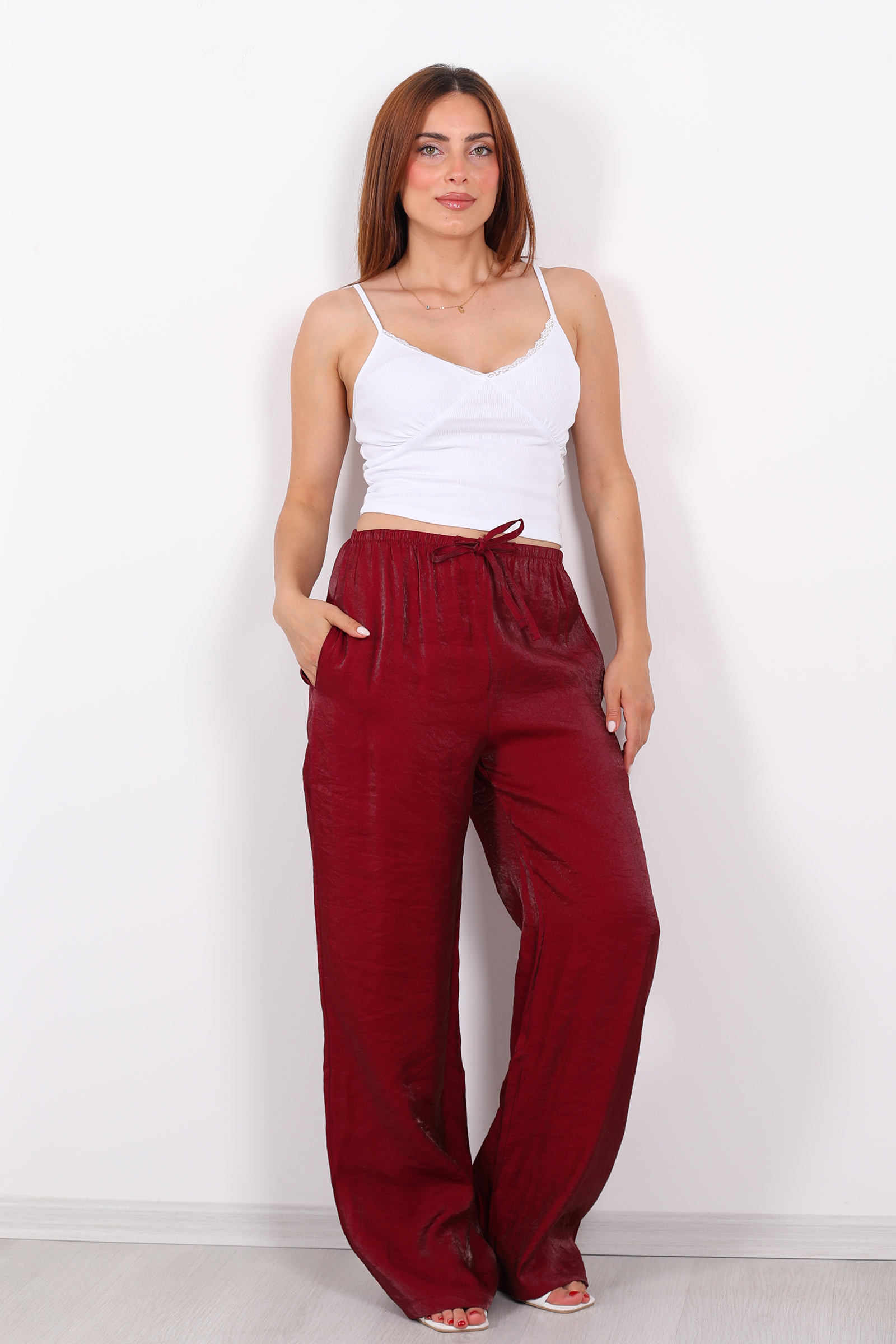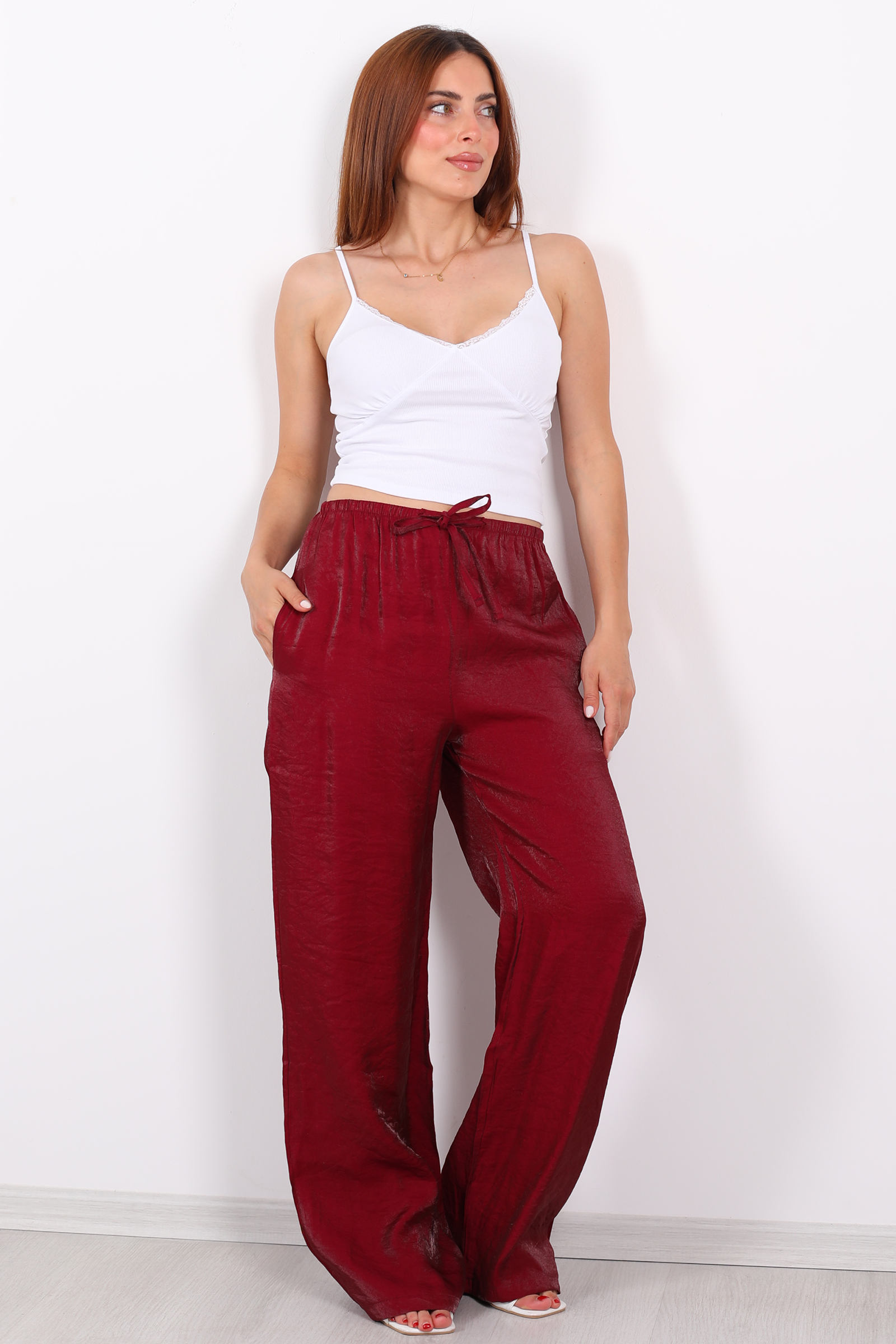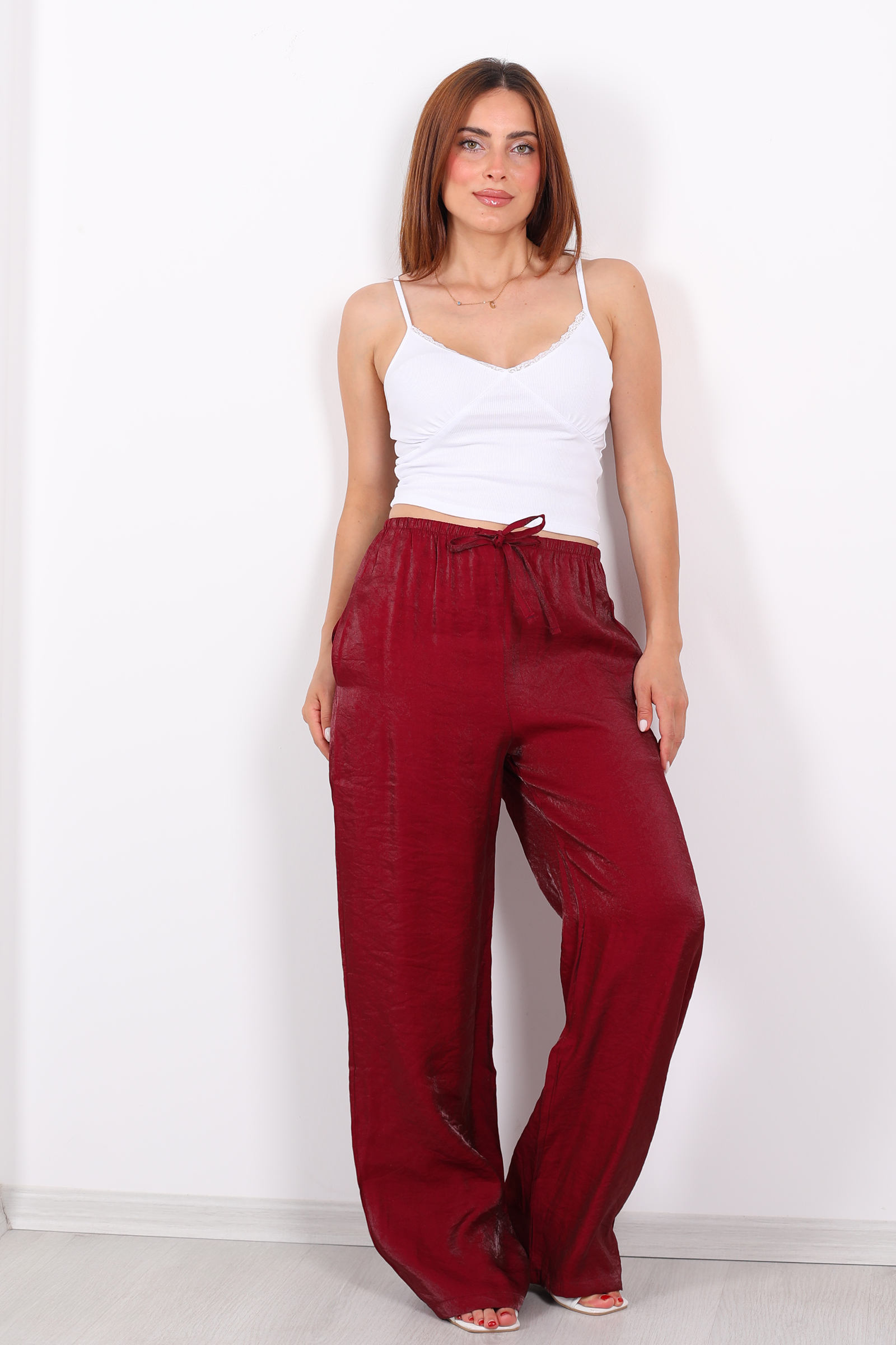 Berox ince kemerli parlak bordo saten pantolon, sofistike ve enerjik tarzını zarif bir dokunuşla buluşturmak isteyen kadınlar için tasarlandı. Derin bordo tonu, saten kumaşın parlaklığıyla birleşerek hem gündüz ofis şıklığına hem de akşam davetlerine kusursuz bir geçiş sağlar. İnce kemeri, bele oturarak modern ve feminen bir siluet yaratırken, kaliteli işçiliği ve Türkiye’de üretilmiş olmasıyla güven verir. Bu pantolon, sade bluzlardan iddialı üstlere kadar pek çok kombin seçeneğiyle stilinize canlılık katacak, her adımda fark yaratmanızı sağlayacak. Şıklığı ve rahatlığı bir arada sunan bu özel parça, gardırobunuzun en gözde parçalarından biri olmaya aday.