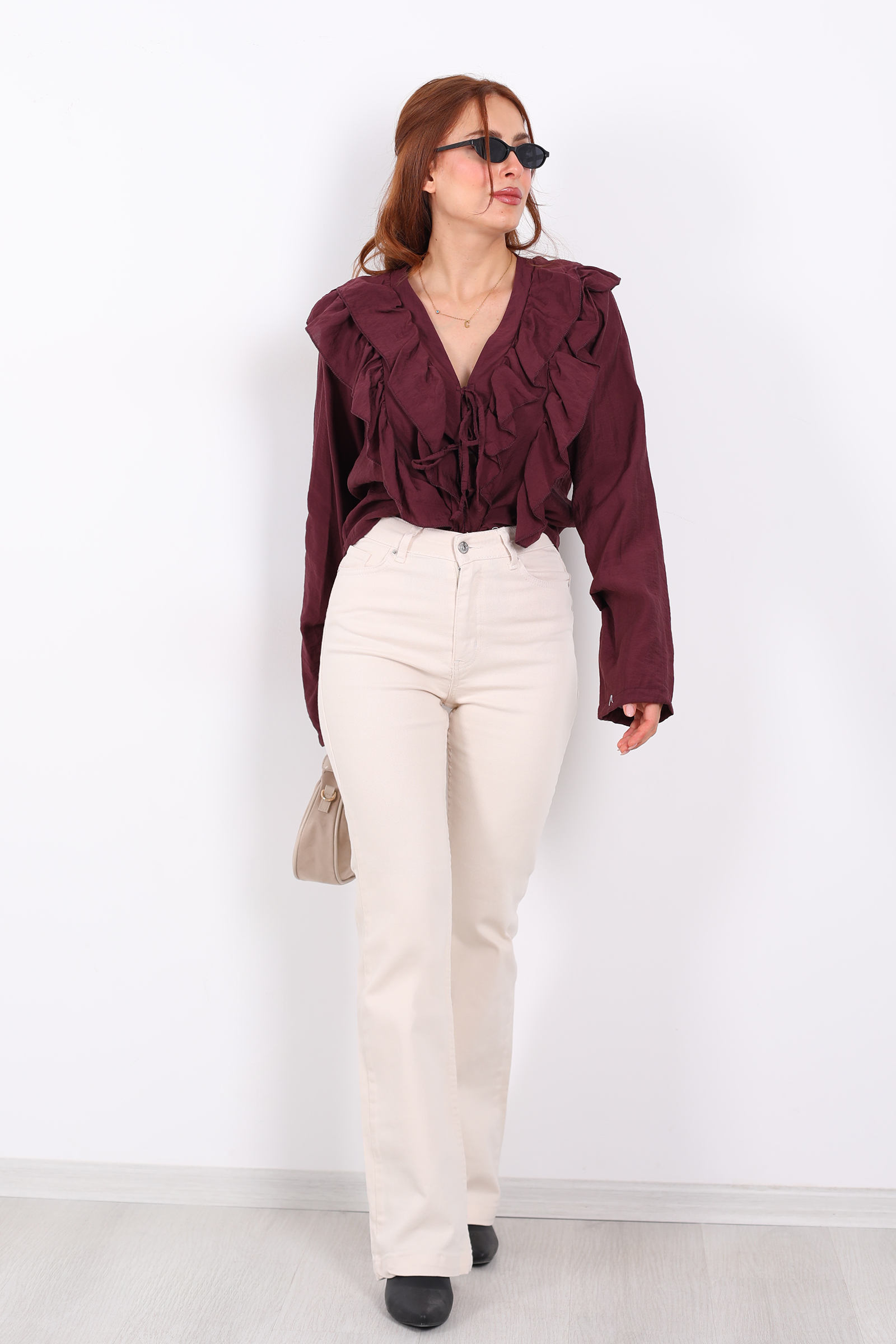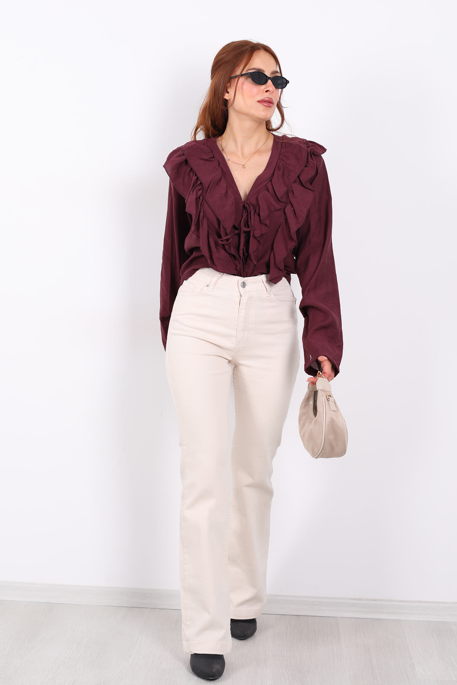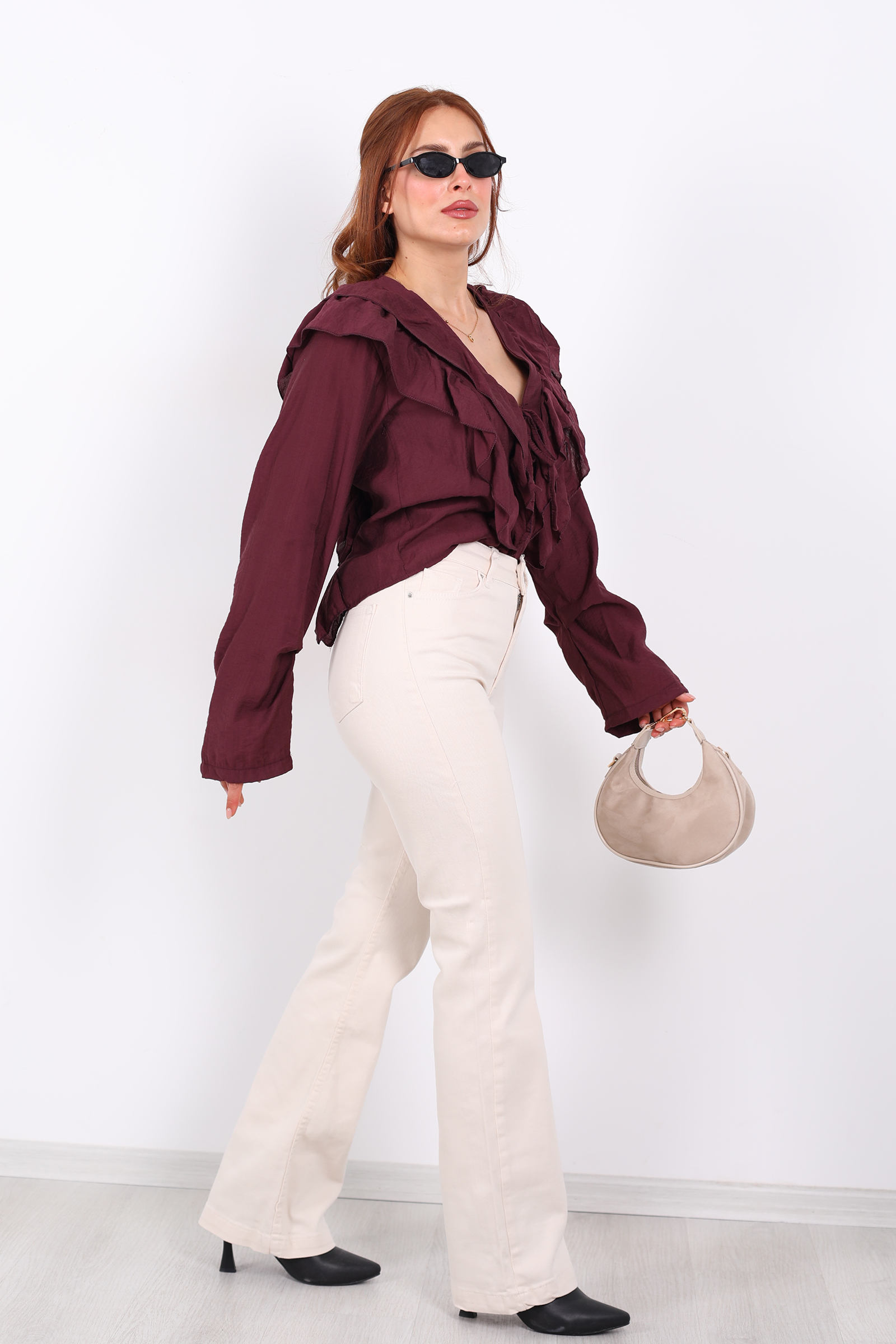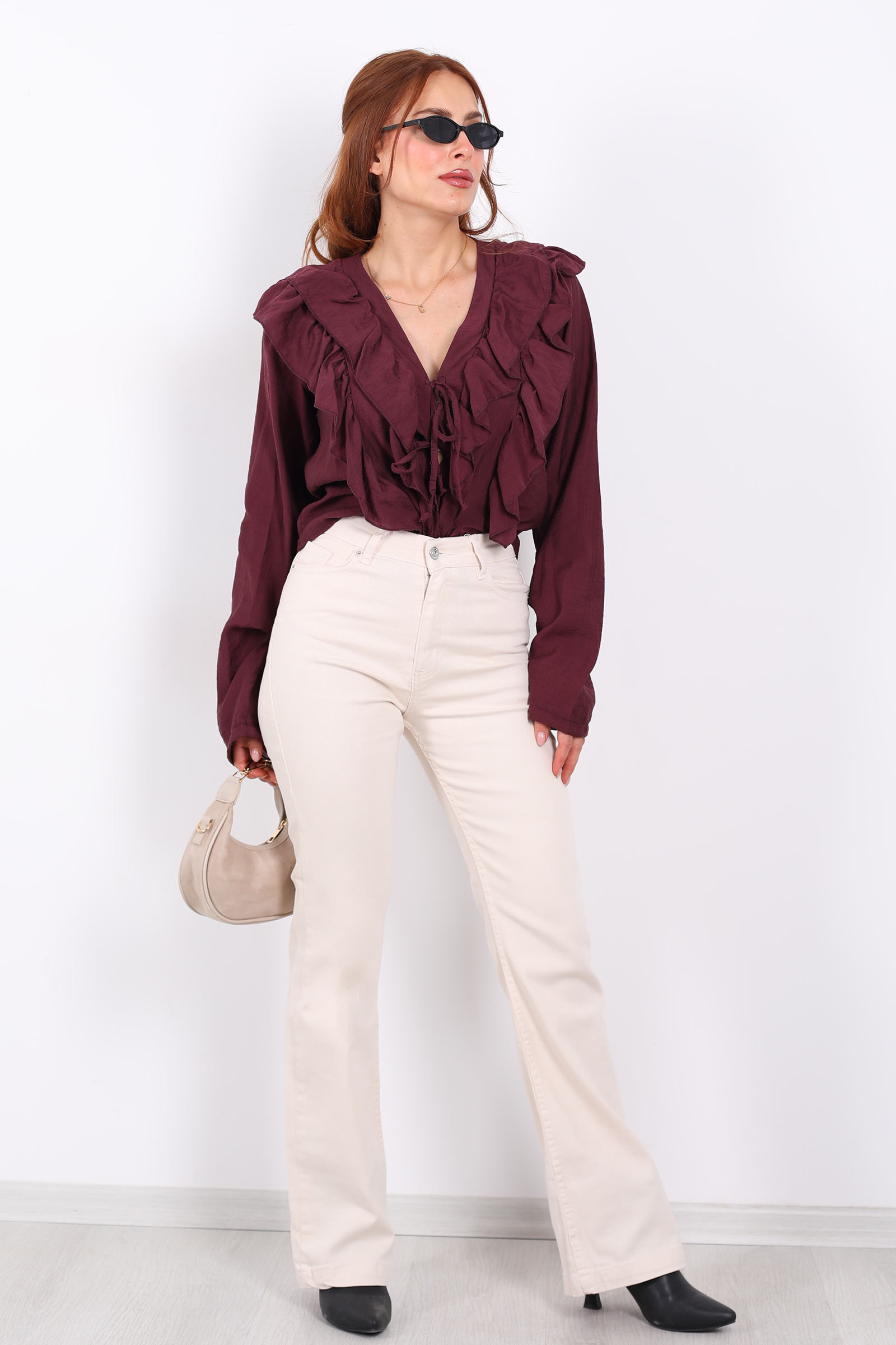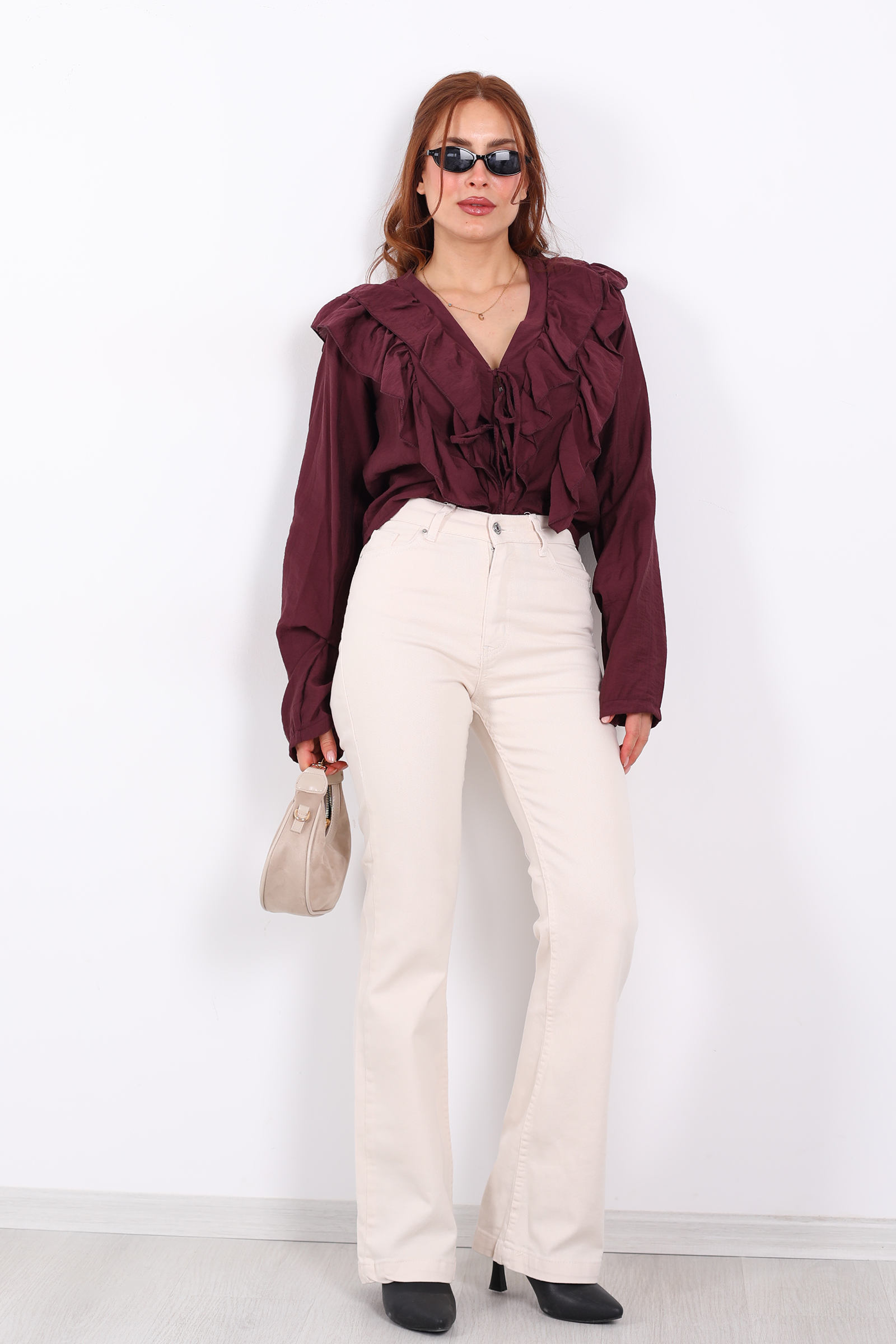 Bu krem tonlu İspanyol paça jean, likralı denim kumaşıyla zarafeti ve rahatlığı kusursuz şekilde harmanlıyor. Likra sayesinde pantolon esnek bir yapı kazanıyor; hareket ederken vücudu kavrarken sıkışmıyor, uzun süreli konfor sağlıyor. İspanyol paça kesimi bacak çizginizi dengeli ve şık bir şekilde vurgularken, retro ve modern estetiği bir arada sunuyor. Krem rengi, klasik mavi kotun yanı sıra gardırobunuzu yumuşak ve nötr bir baza taşımak için ideal bir alternatif haline getiriyor.