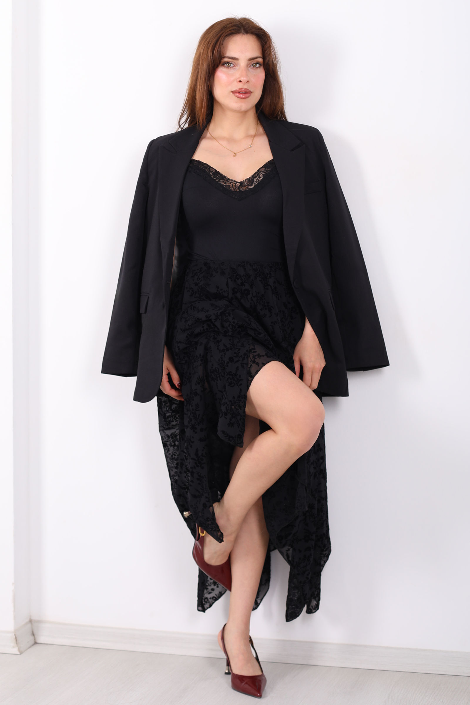 Askılı Dantel Detaylı Siyah Kadın Çıtçıtlı Body