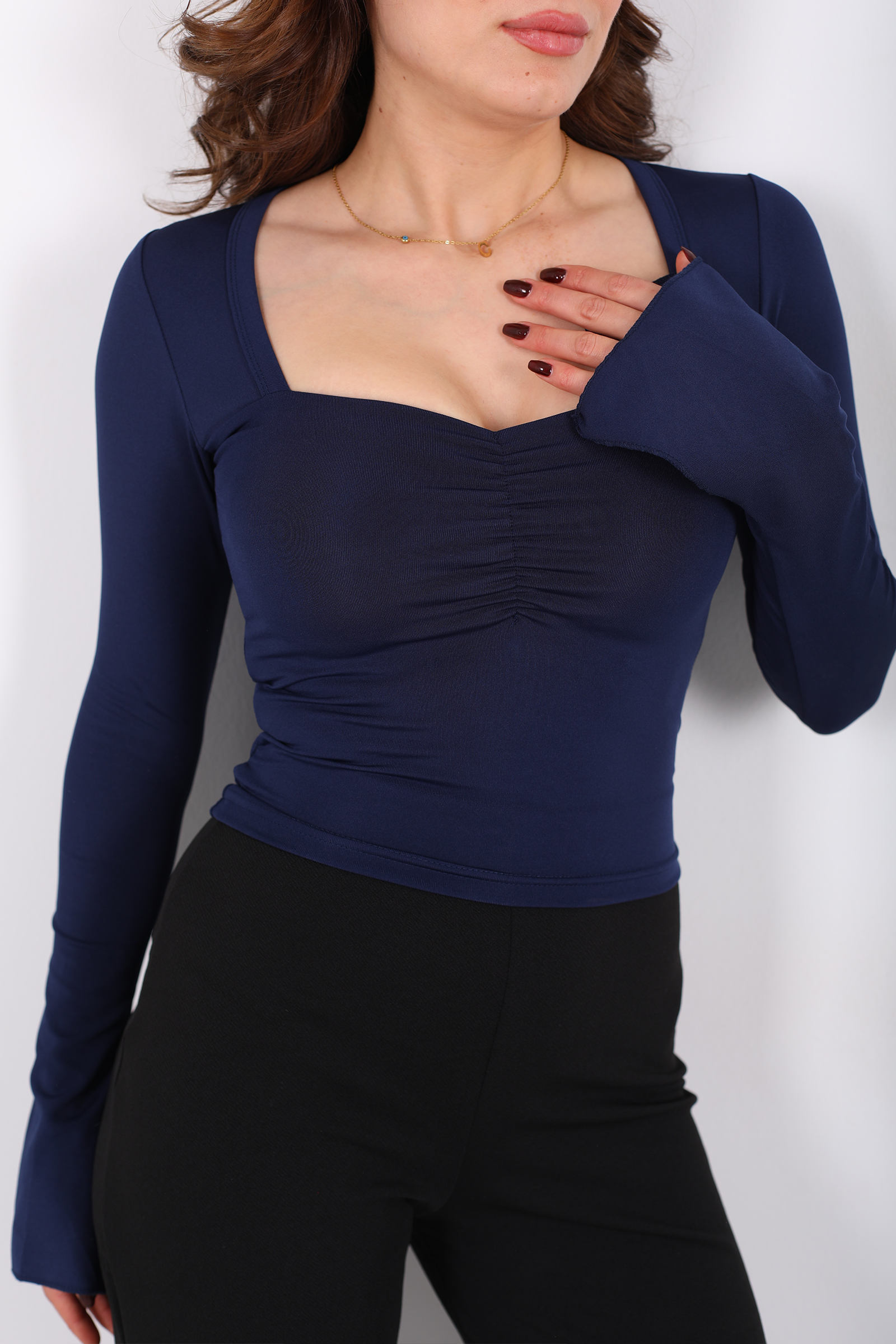 Kalp Yaka İspanyol Kol Kadın Lacivert Bluz