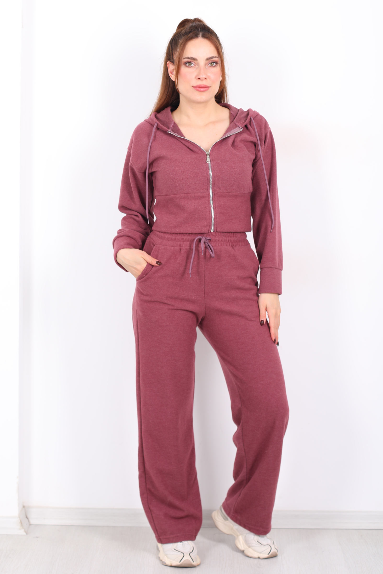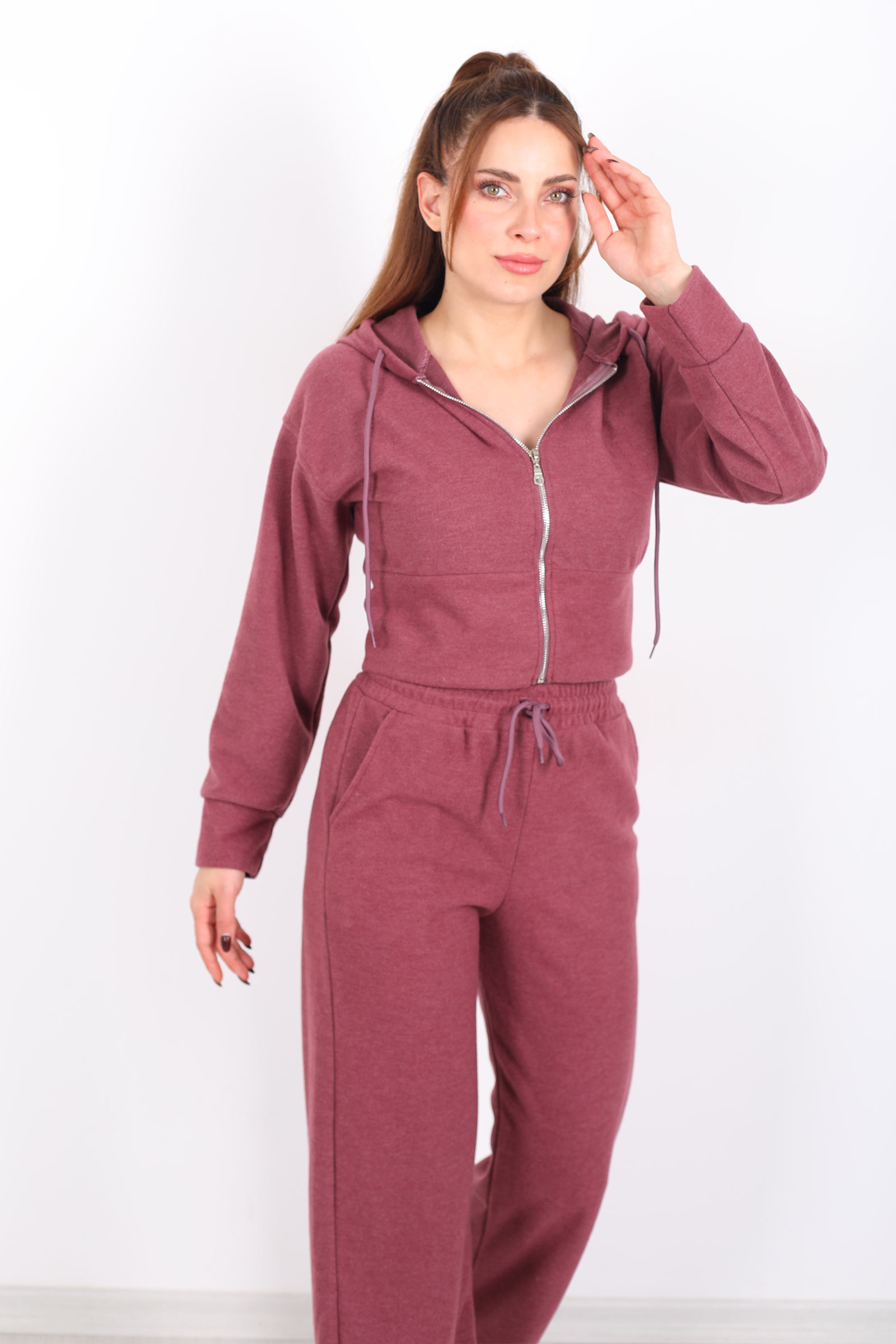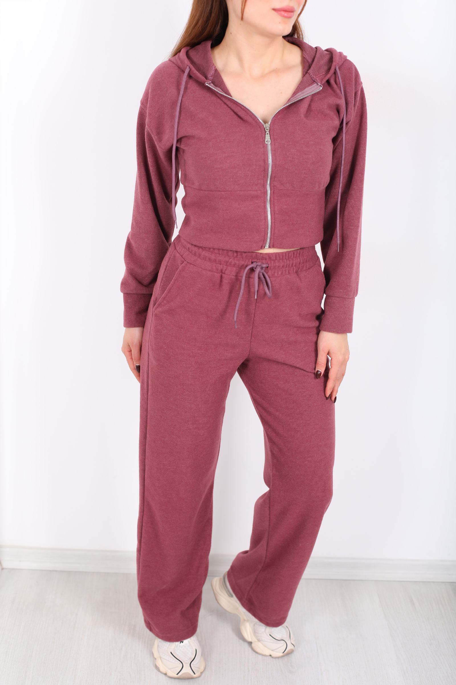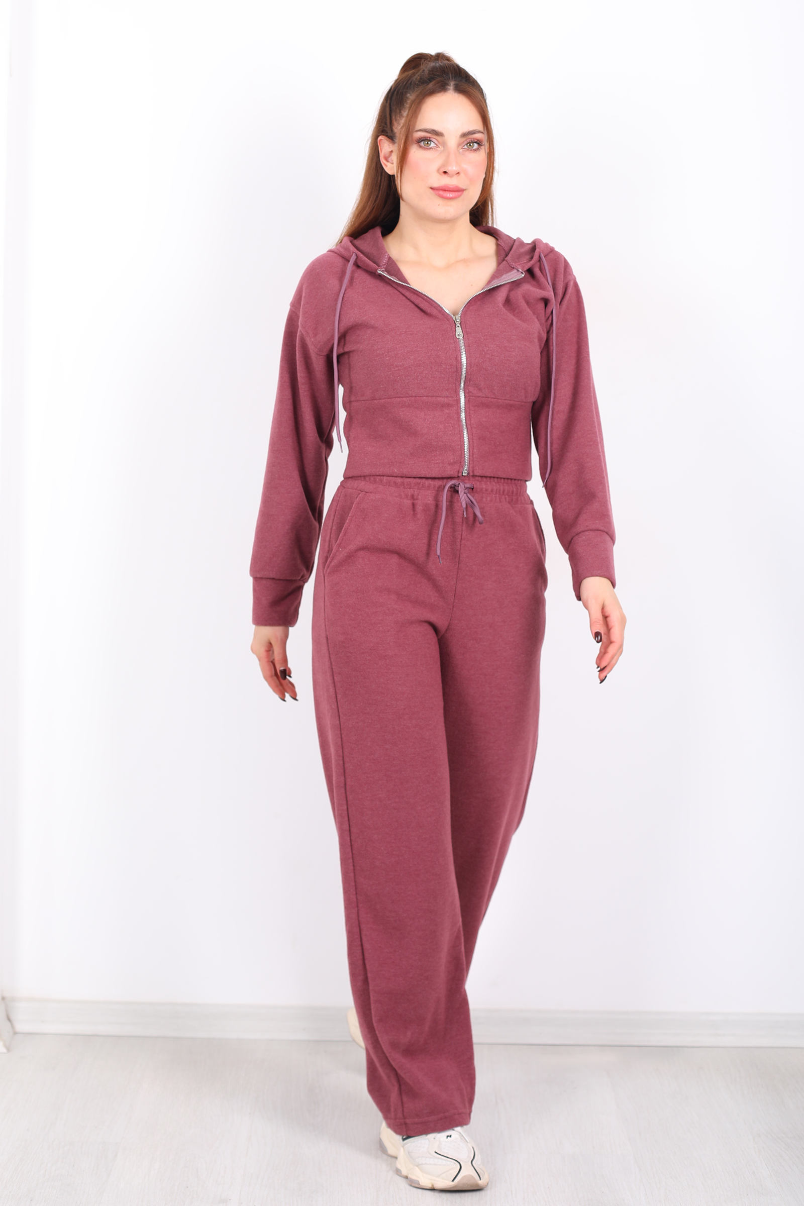 Her adımda zarafeti ve konforu bir arada isteyenler için tasarlanmış Kapüşonlu Fermuarlı Gül Kurusu Kadın Pantolon Ceket Takım, gül kurusunun soft enerjisiyle stilinize sıcak bir bakış kazandırır. Soft kapüşon detayı ve önden fermuar, sportif duruşu feminen çizgilerle harmanlarken, takımın pantolonuyla olan bütünlüğü sade ama etkileyici bir kombin sunar. Gül kurusunun romantik tonu, günlük stilinizi hafif bir ferahlıkla tamamlar ve basic parçalarla soft uyum yakalamanızı sağlar.