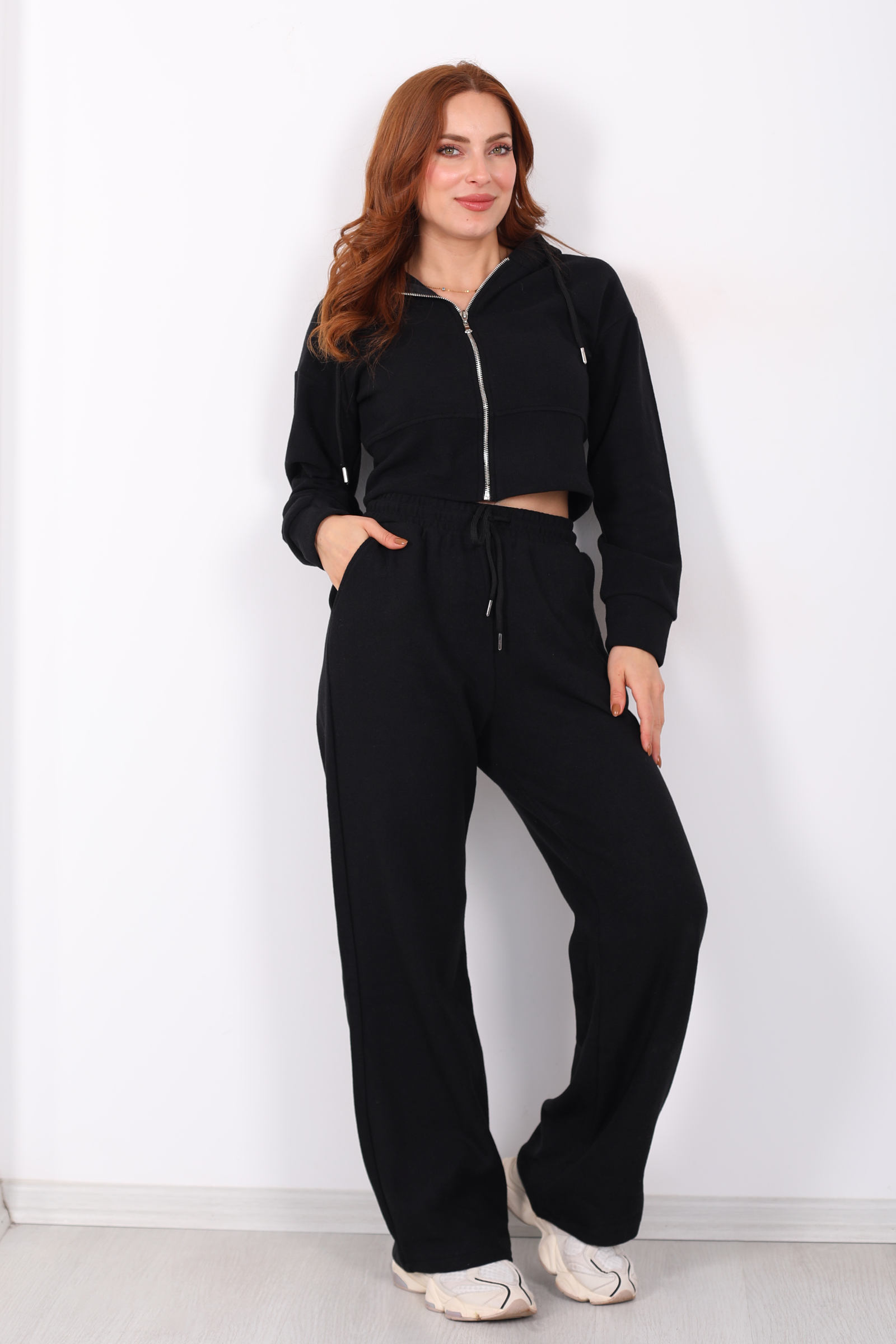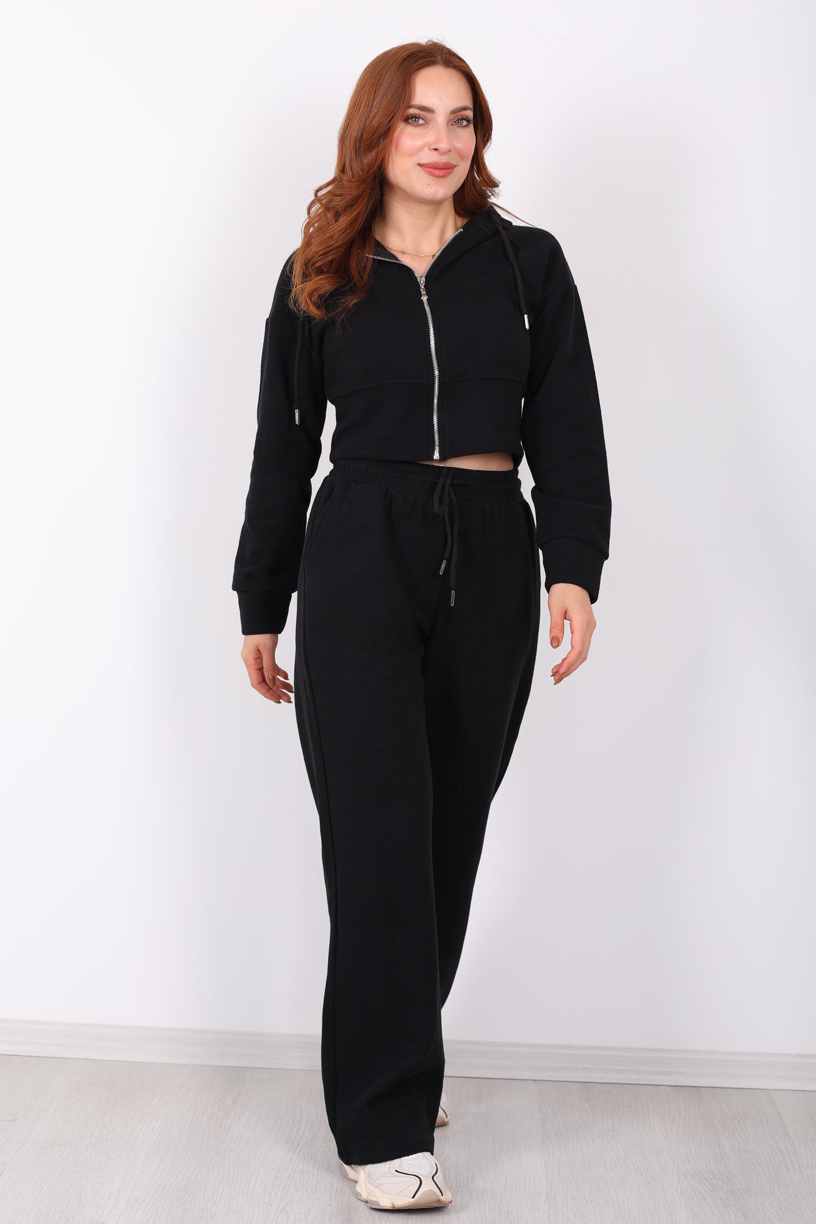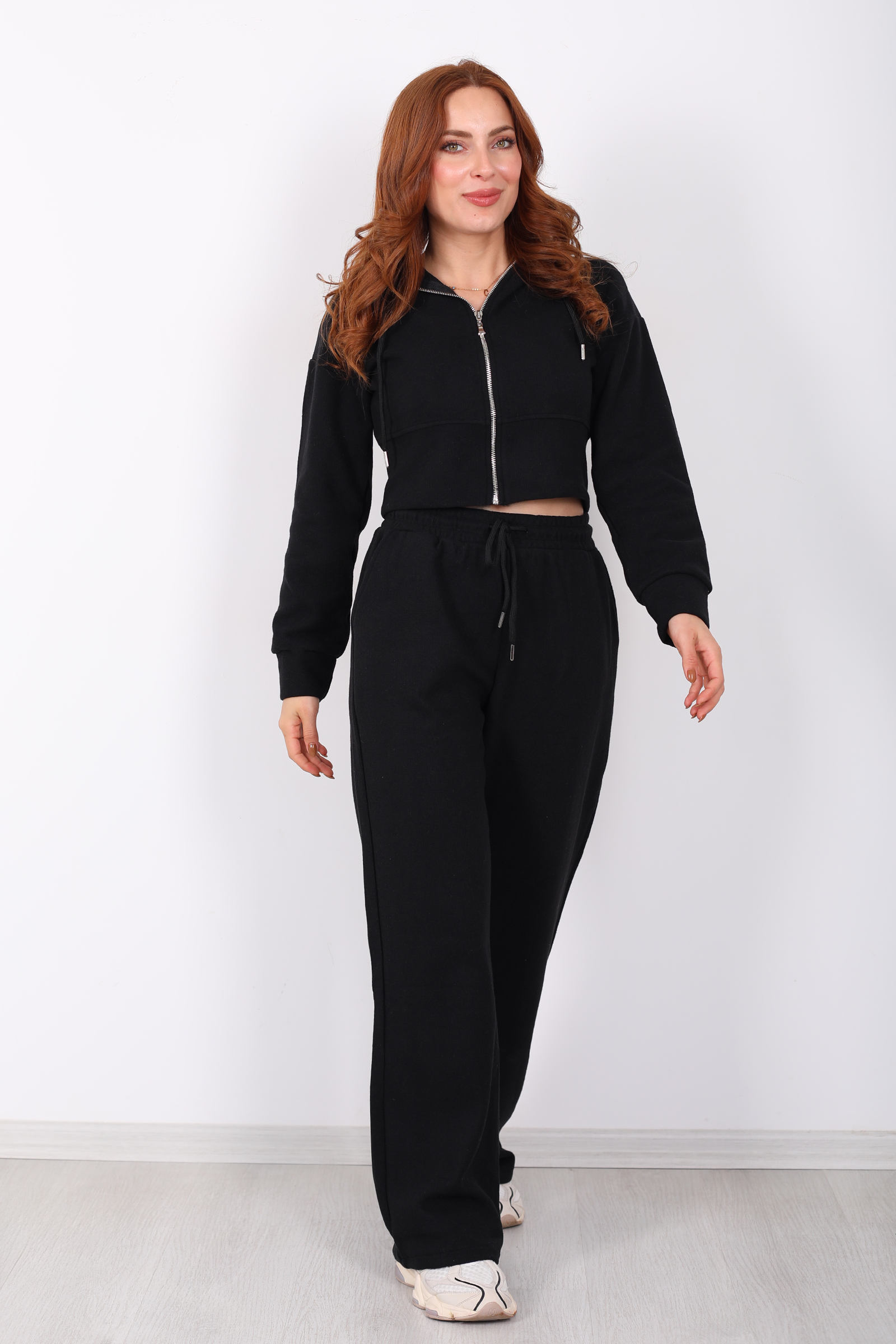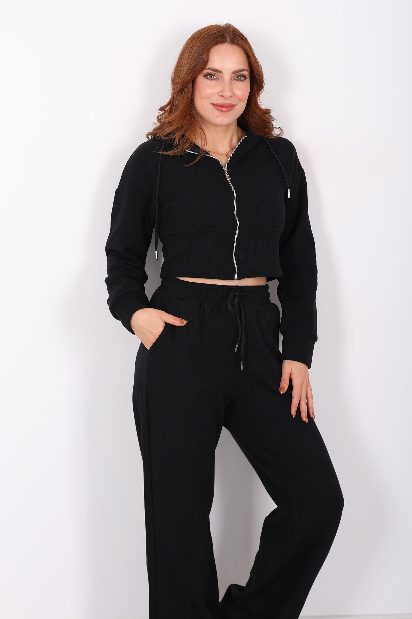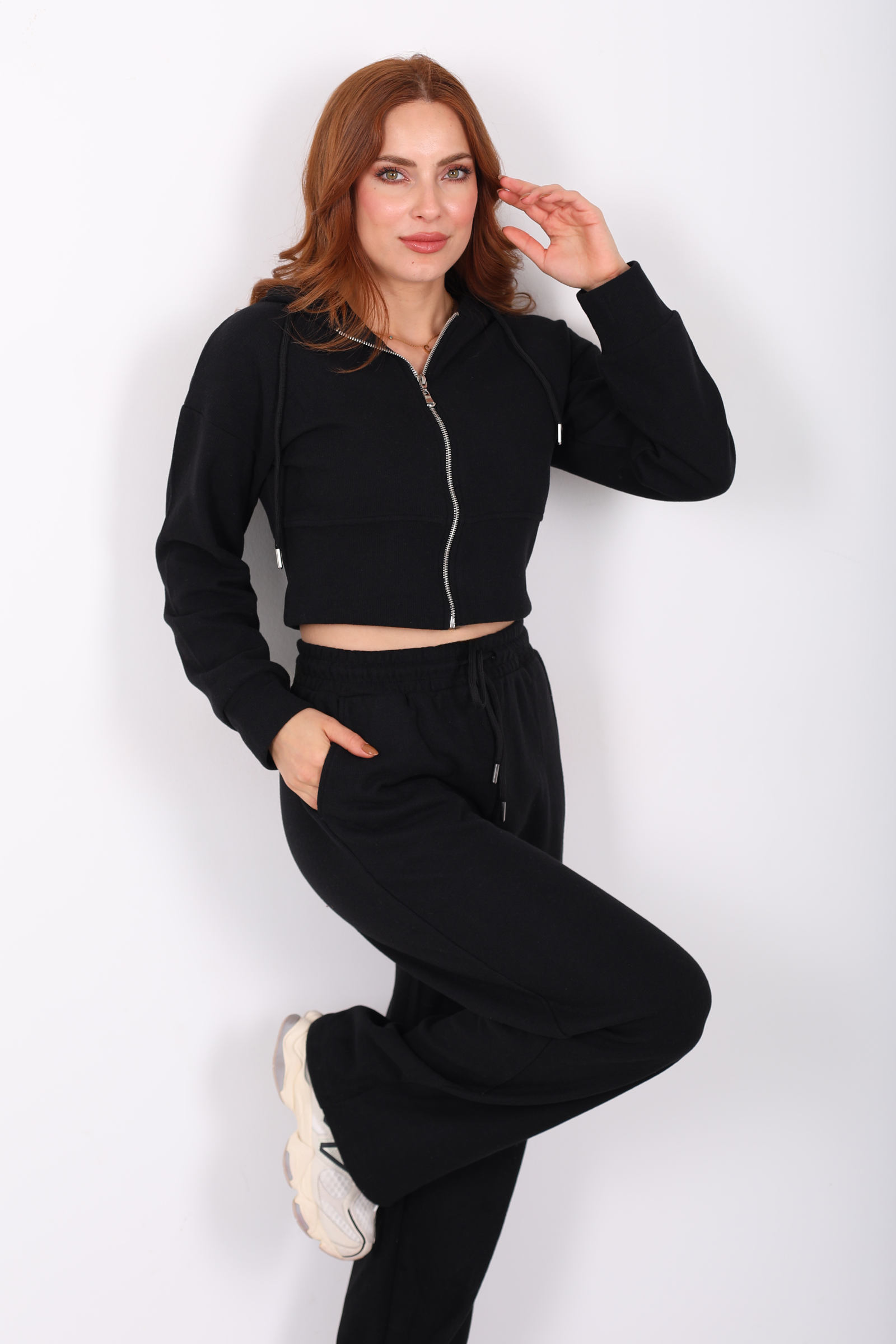 Kapüşonlu Fermuarlı Siyah Kadın Selanik Takım