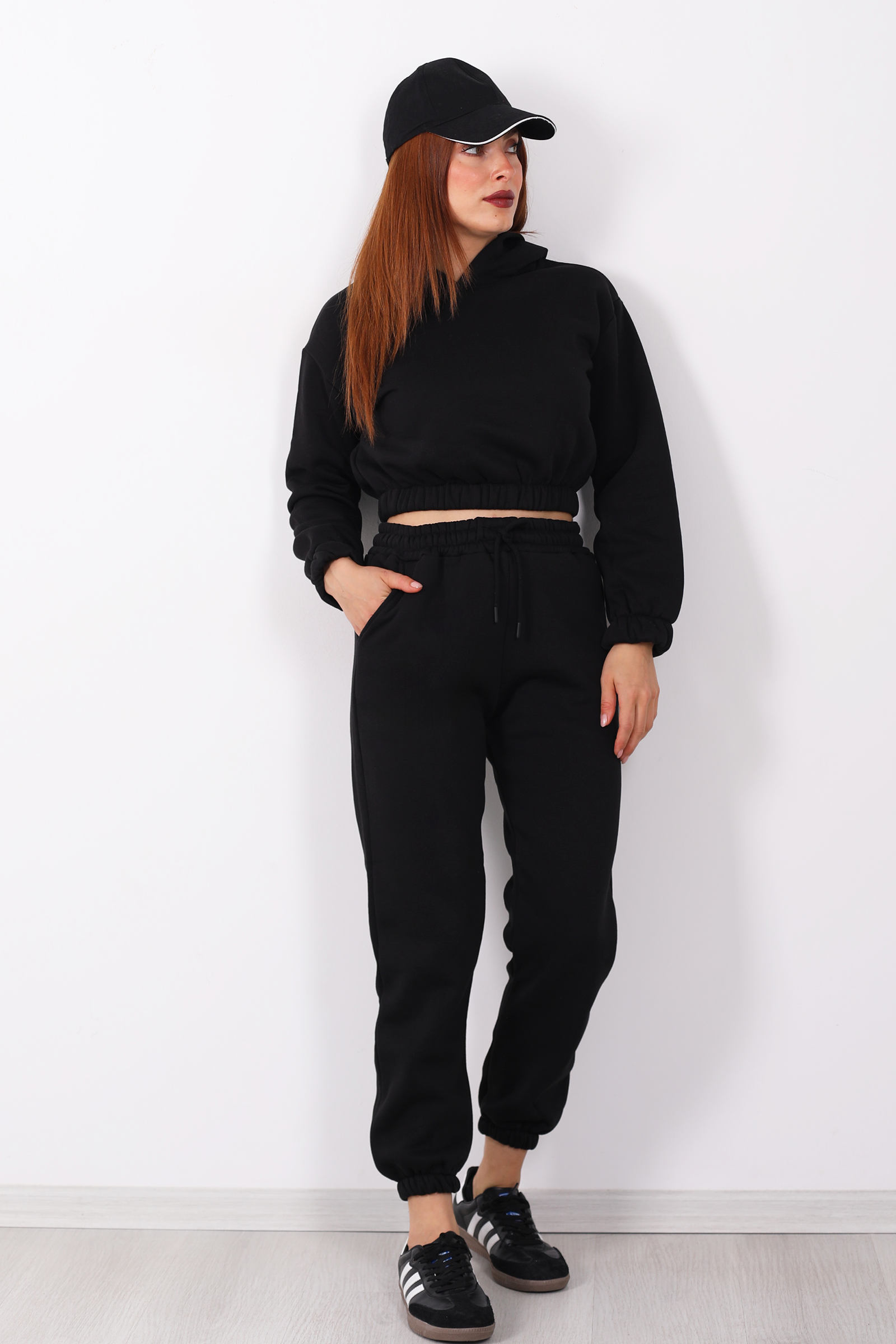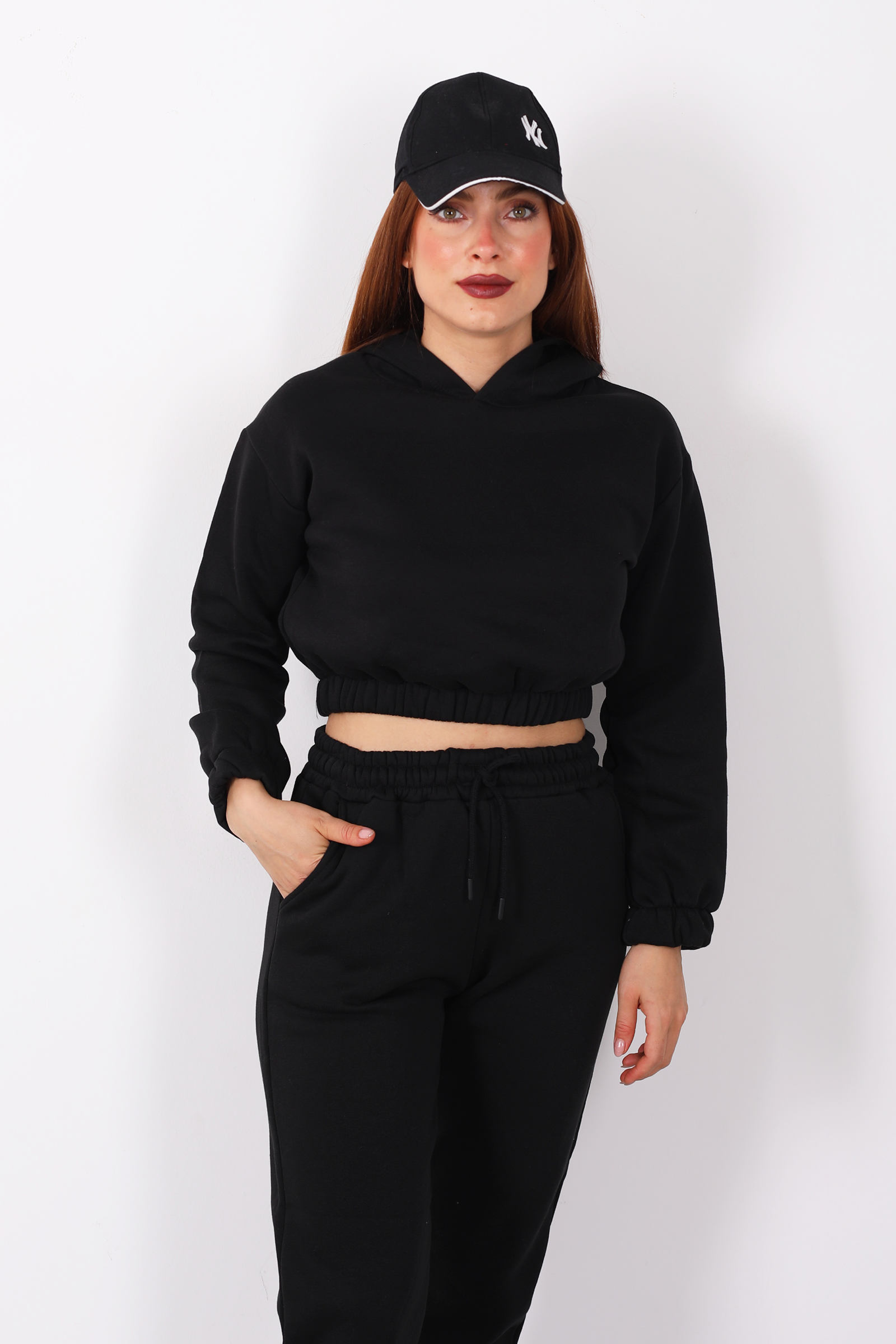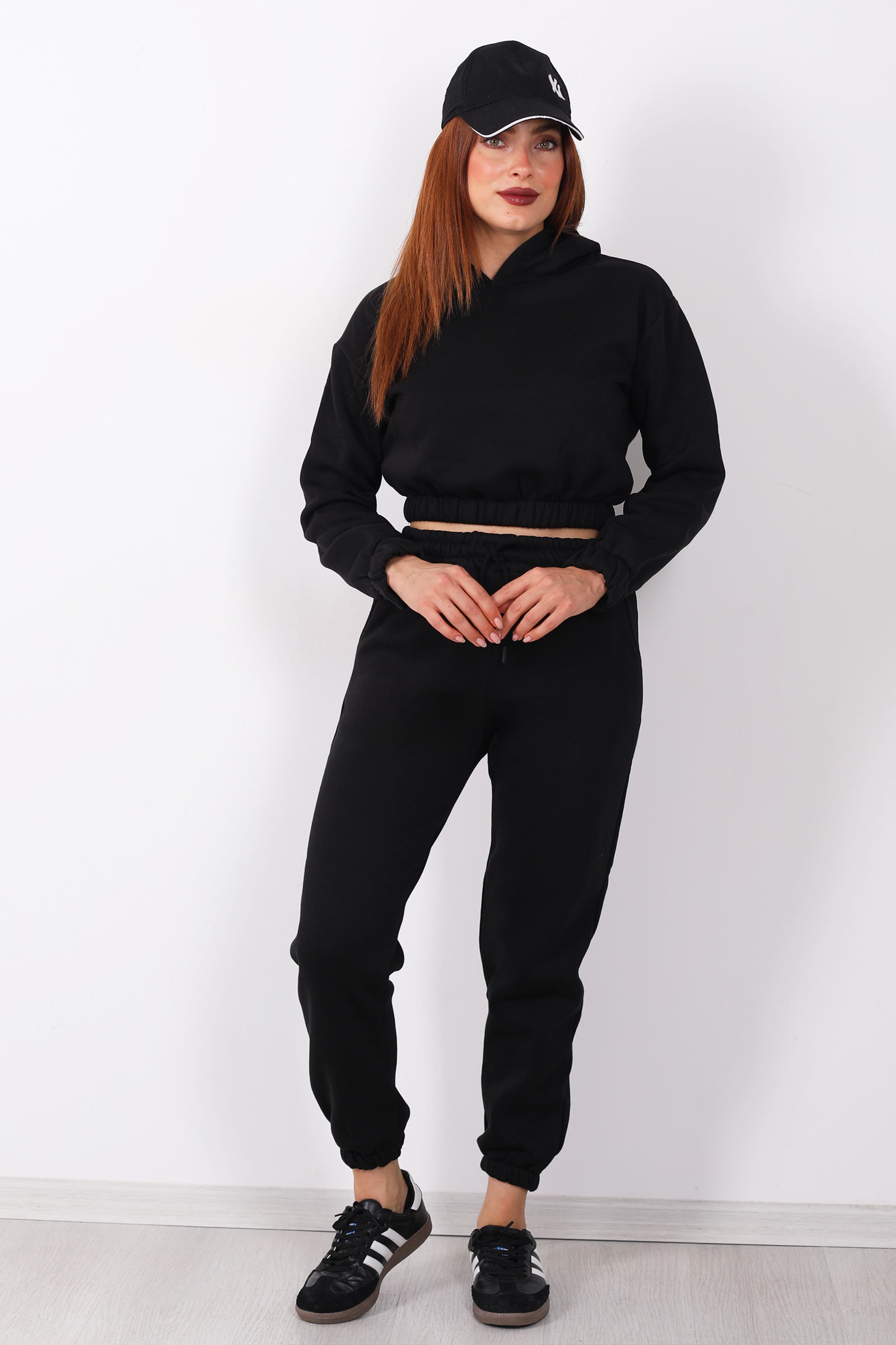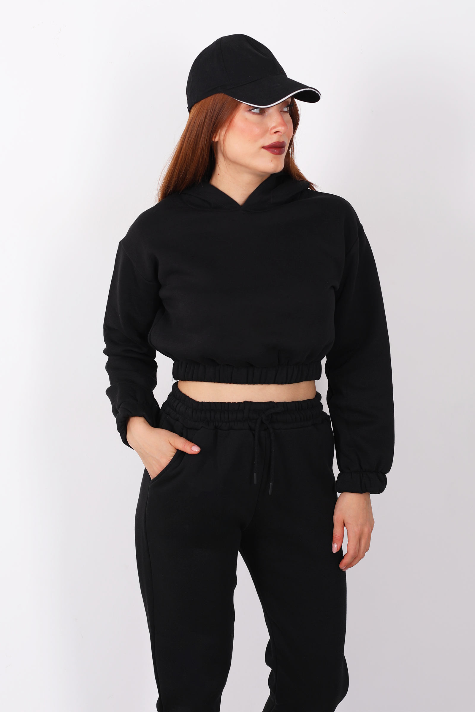 Siyah rengiyle zamansız bir şıklık sunan bu kapüşonlu sweat takım, üç iplik şardonlu kumaş yapısı sayesinde iç kısmı son derece yumuşak, sıcak tutan ve konforlu bir dokuya sahiptir. Günlük kullanım için ideal olan bu takım, hem evde dinlenirken hem de dışarıda spor, yürüyüş ya da günlük aktivitelerde rahat bir stil yakalamanıza yardımcı olur. Rahat kalıbı sayesinde hareket özgürlüğü sağlar; esnek yapısı gün boyu konfor sunarken kapüşon detayı takıma sportif bir hava katar.