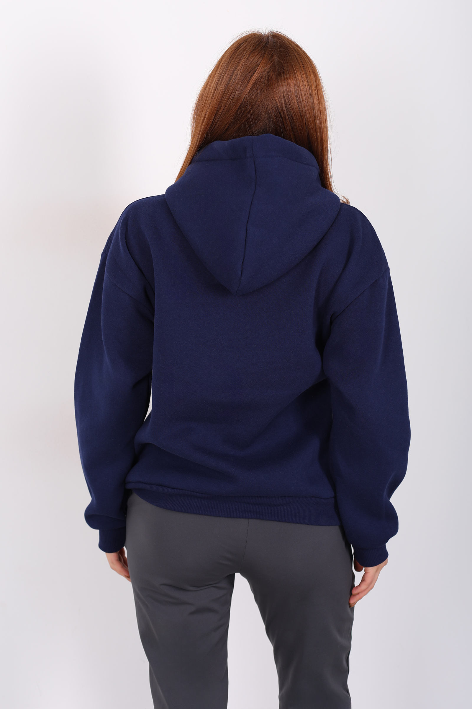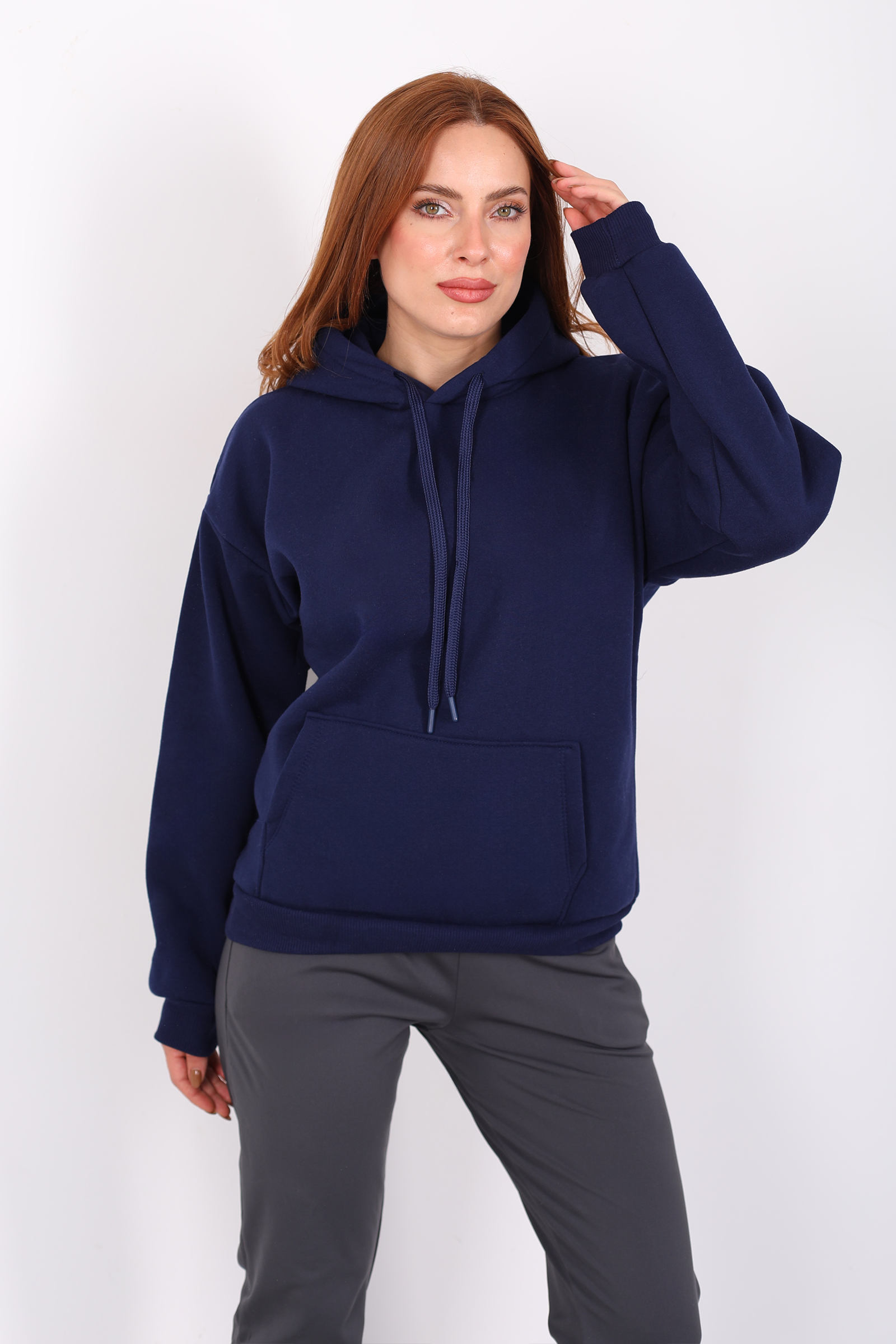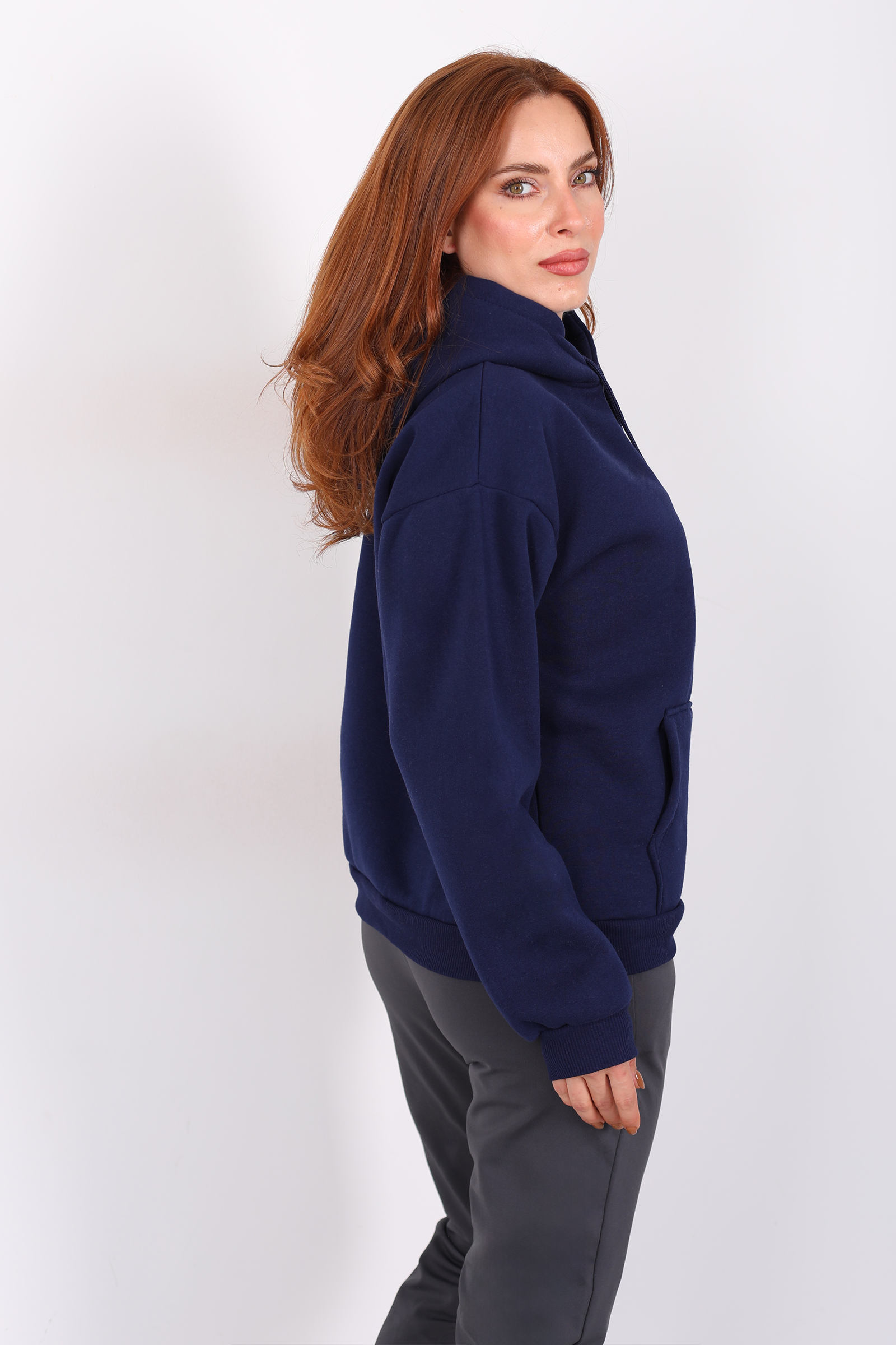 Kapüşonlu Kanguru Cepli Lacivert Kadın Sweat