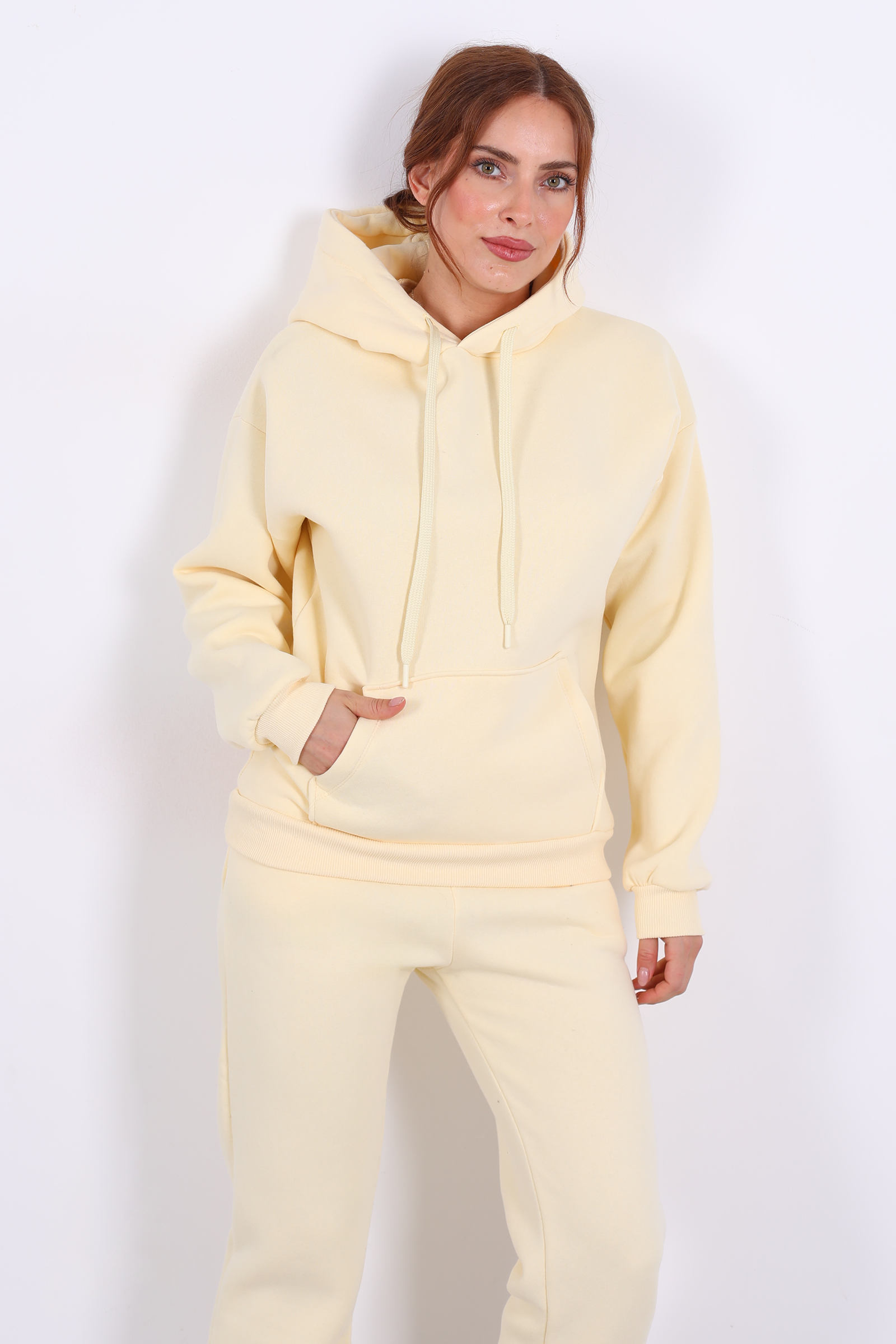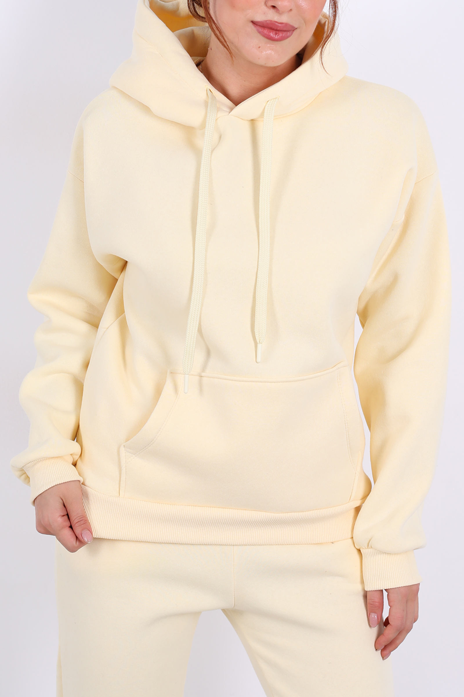 Kapüşonlu Kanguru Cepli Sarı Kadın Sweat
