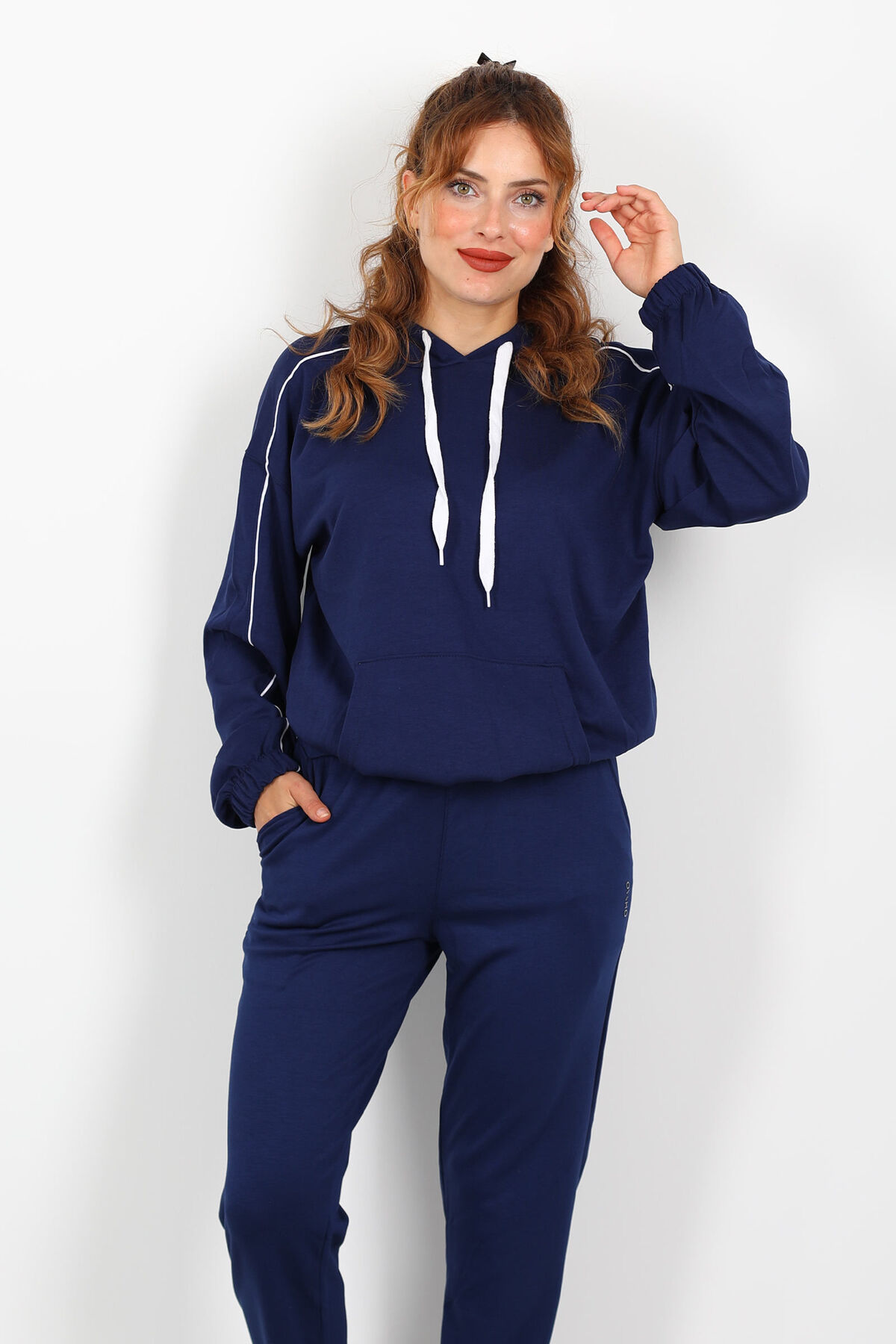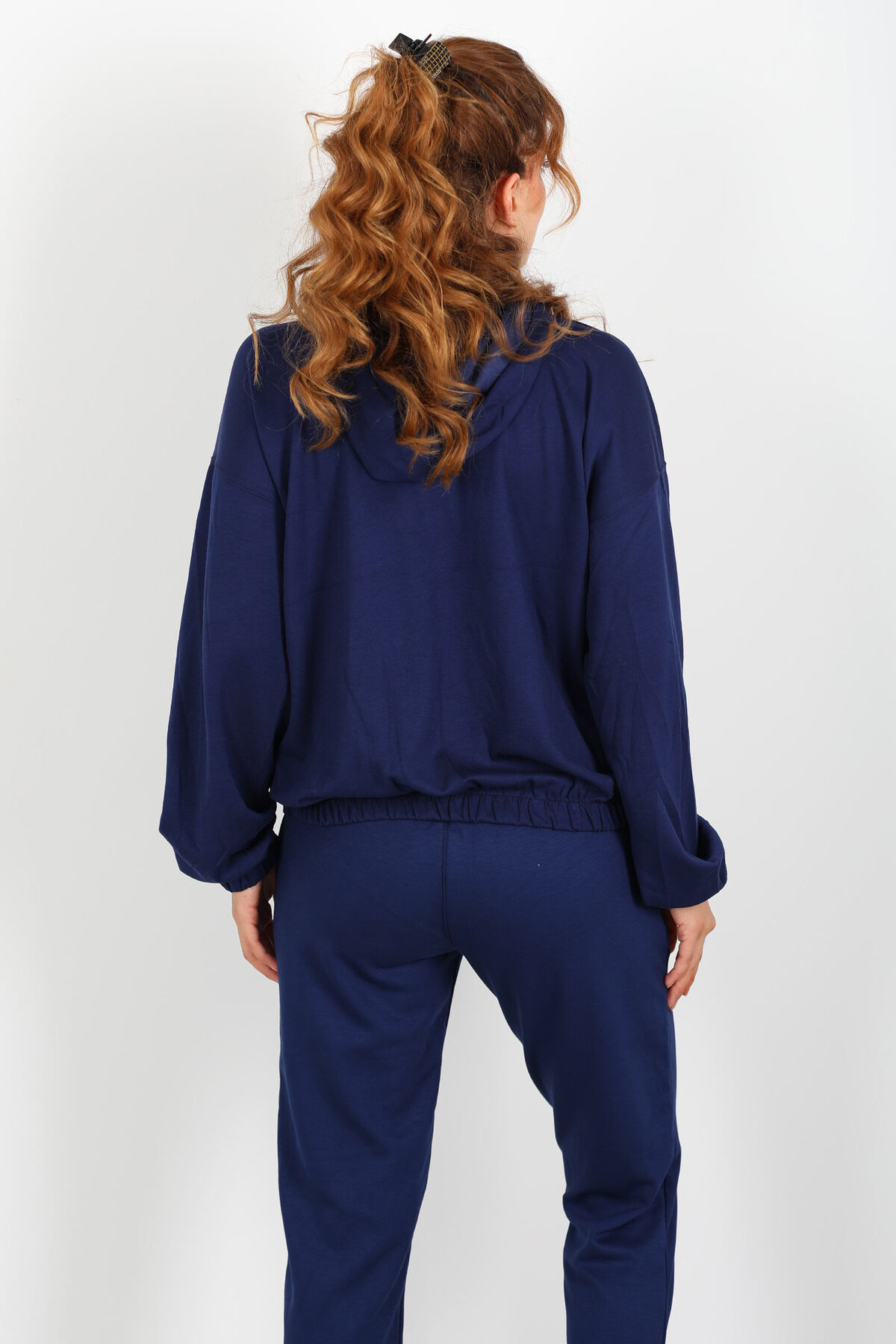 Derin lacivertin sofistike tonuyla gelen minimal zarafet: Kolları arabiye detaylı, kapüşonlu bu modal sweat sizi sokak stilinde bile öne çıkaracak. Modal karışımı kumaşı, yumuşaklığı ve hafif dokusuyla teninize adeta ikinci bir cilt gibi sarılırken; arabiye kol tasarımı, basitliği hareketle harmanlayarak sıradan sweatshirt’lerden uzak bir hava katıyor. Kapüşonlu yapı hem görsel denge sağlar hem de ani hava değişimlerine karşı koruyucu işlev görür.Normal kalıbı, vücuda baskı yapmadan duruşu koruyor; bedeni sarmadan özgürce kalmasını sağlayarak hem hareketi hem özgüveni destekliyor. Lacivertin koyu tonu, jean ya da deri pantolonlarla güçlü kontrast yaratırken, hafif aksesuarlarla görünümü tamamlamanıza olanak tanır.