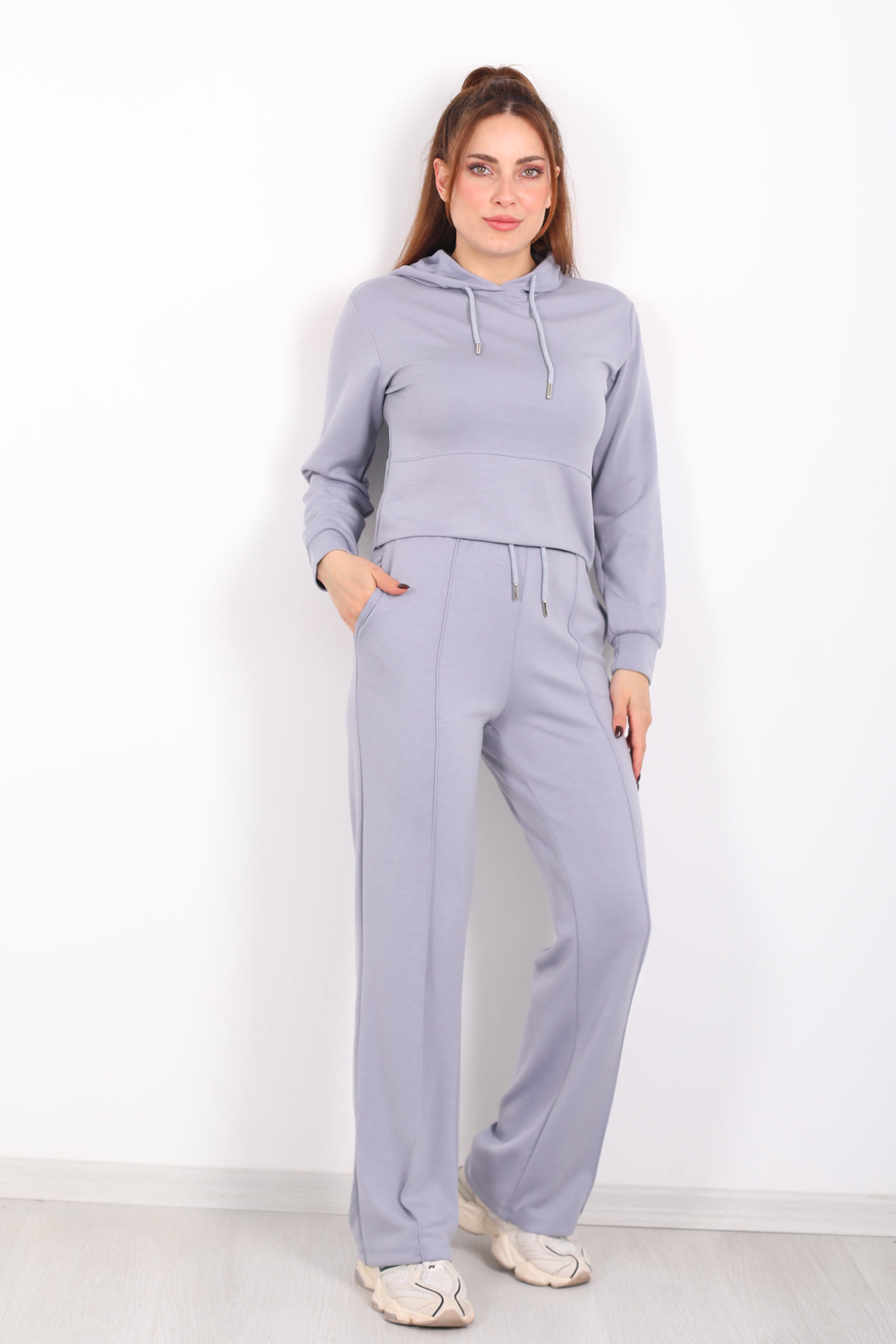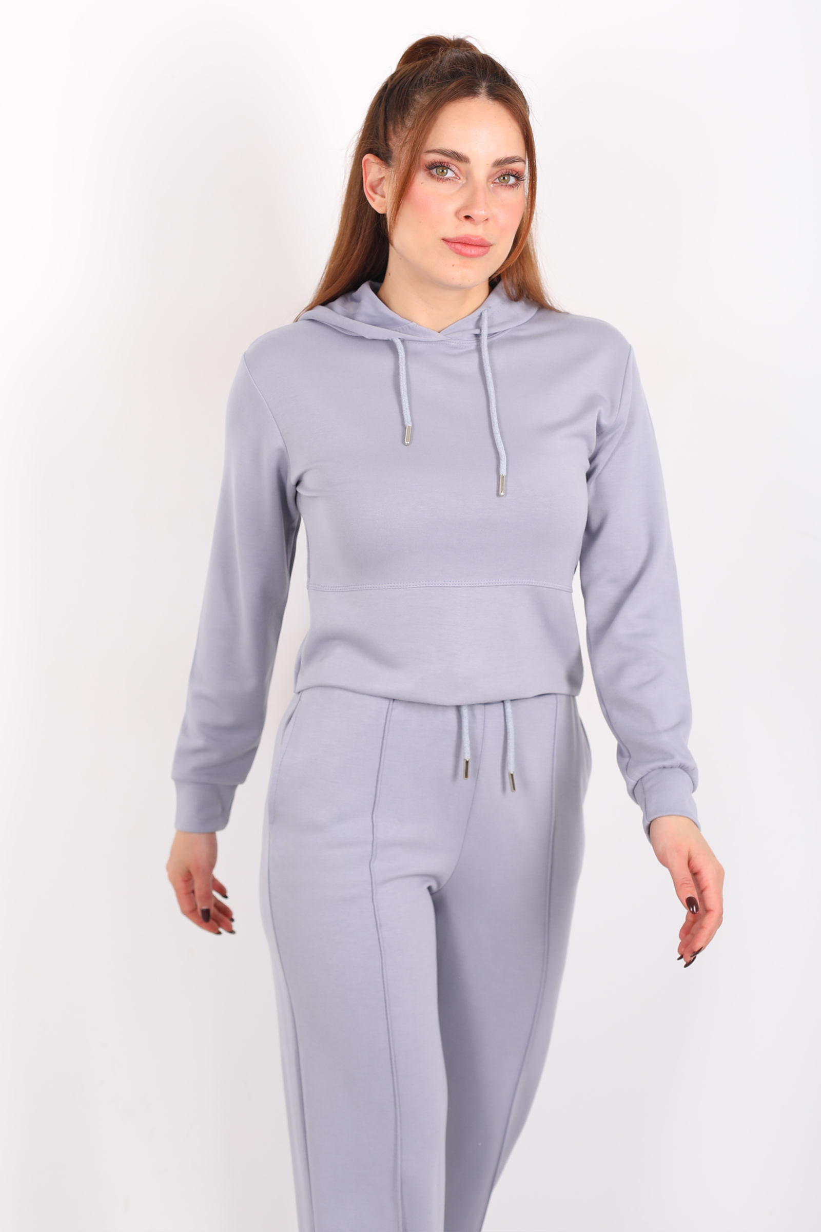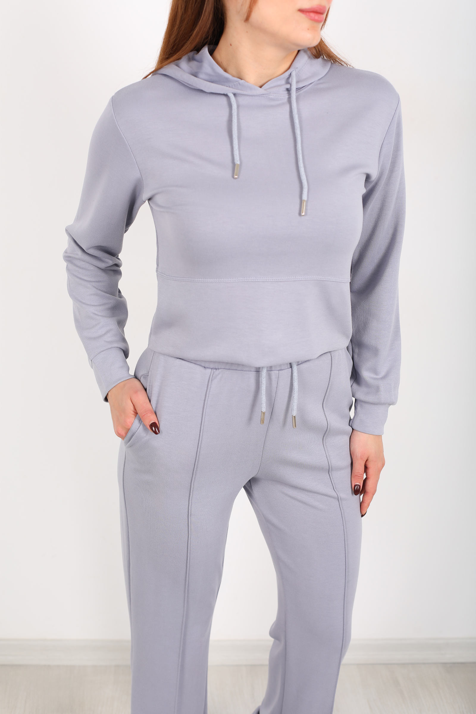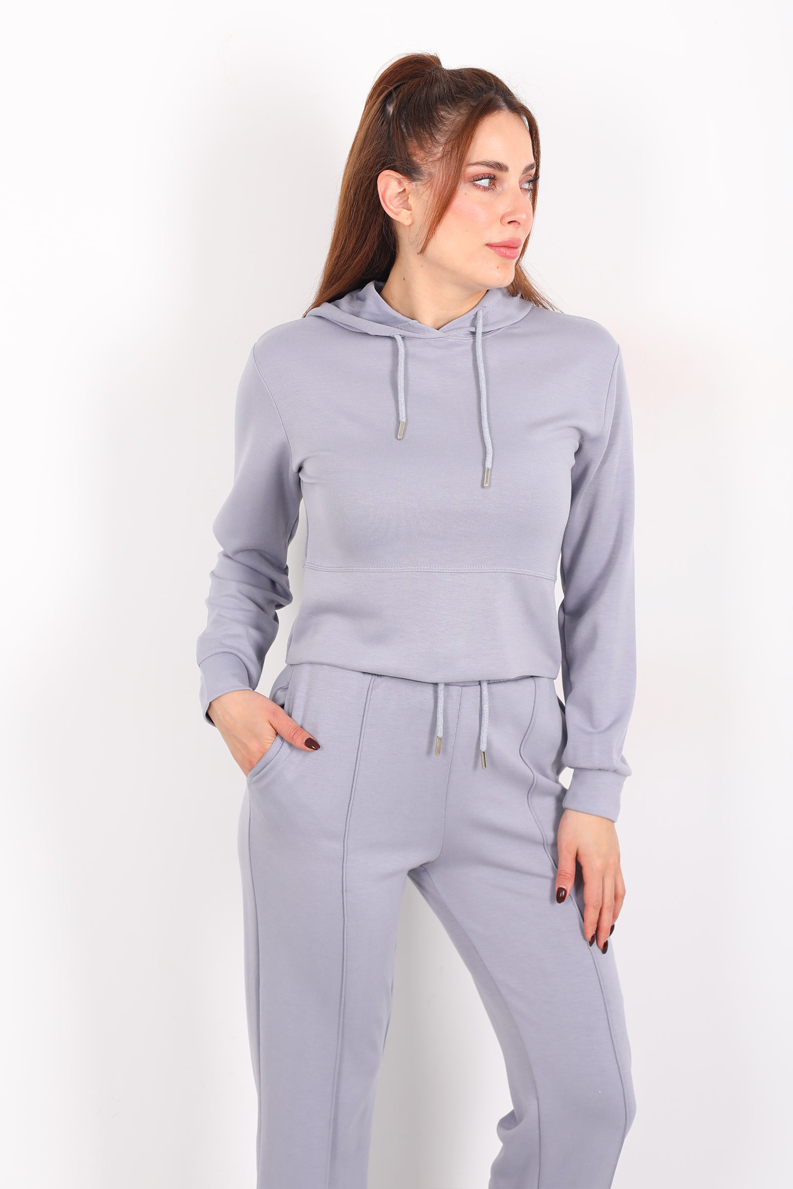 Kapüşonlu üst ve uyumlu alt parçadan oluşan bu gri modal takım, rahatlığı modern detaylarla harmanlıyor. Çimalı dokunun yüzeyindeki zengin doku hareket anında farklı bir ritim yaratırken, kapüşon tasarımı sportif bir hava kazandırır. Modal kumaşın yumuşak yapısı, cilde nazikçe uyum sağlayarak gün boyu konfor hissini yükseltir. Nötr gri tonu, sneaker’dan botlara kadar birçok ayakkabıyla dengeli uyum yakalar ve her parçanın stilini öne çıkarır. Minimal çizgilere sahip bu takım, yolculuklarda, şehir gezilerinde ya da ev konforunda şık ama rahat duruş isteyenlerin favorisi olmaya aday.