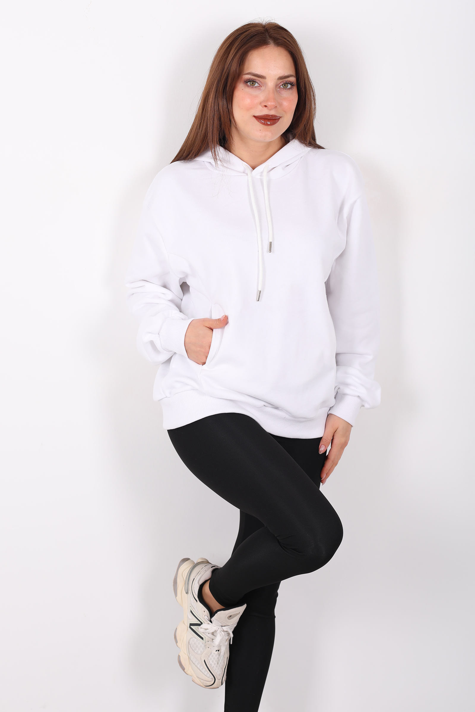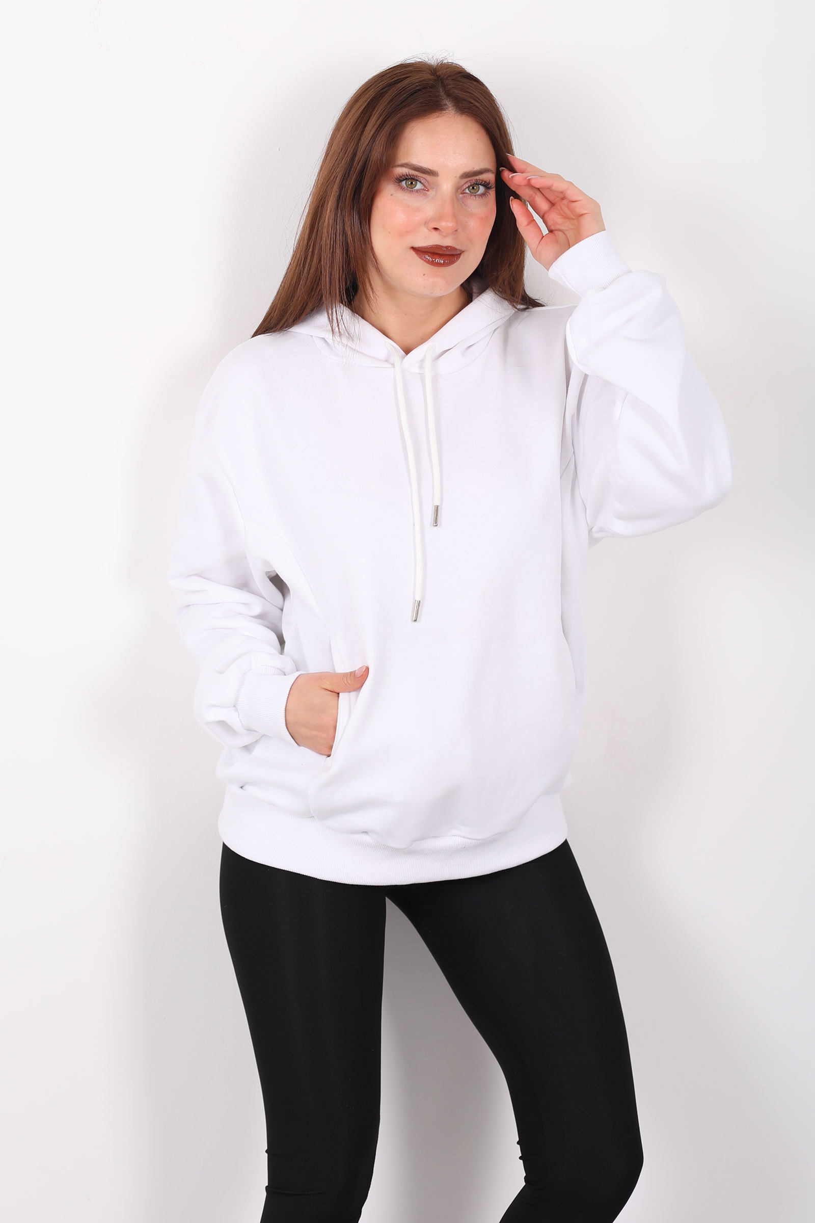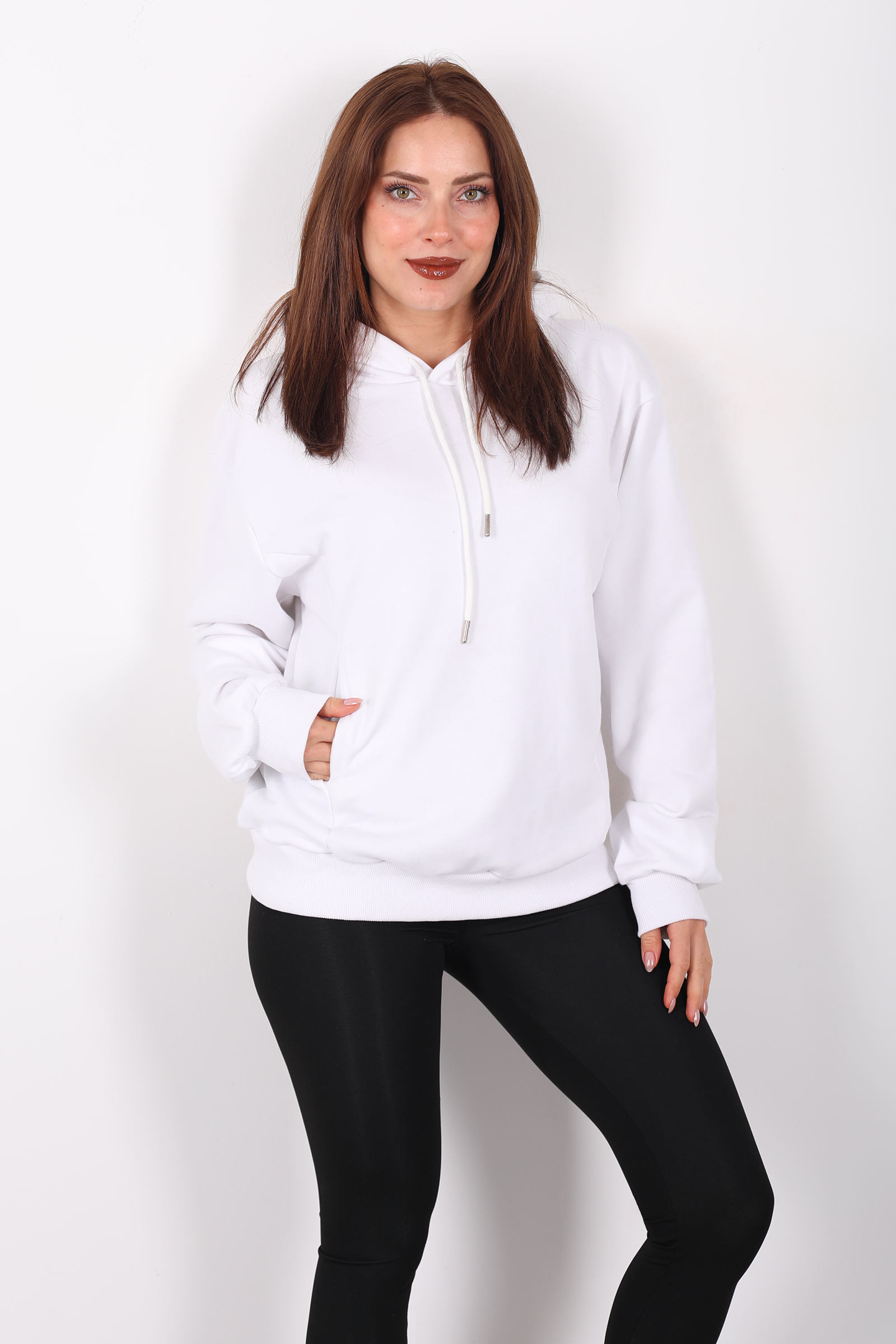 Bu kapüşonlu beyaz üç iplik sweat, rahat ve şık bir stil arayanlar için ideal. Sade tasarımı ve yumuşak kumaşıyla günlük kombinlerinize zarif bir dokunuş ekler. Kapüşon detayı, soğuk havalarda ekstra koruma sağlarken, sade beyaz rengi her türlü alt giysiyle mükemmel uyum gösterir. Üç iplik kumaş yapısı, sıcak tutma özelliği sunar ve ciltle dost yapısıyla konforlu bir kullanım sağlar. Spor şıklığına modern bir dokunuş getiren bu sweat, stilinizi tamamlayacak en rahat parçalardan biri.