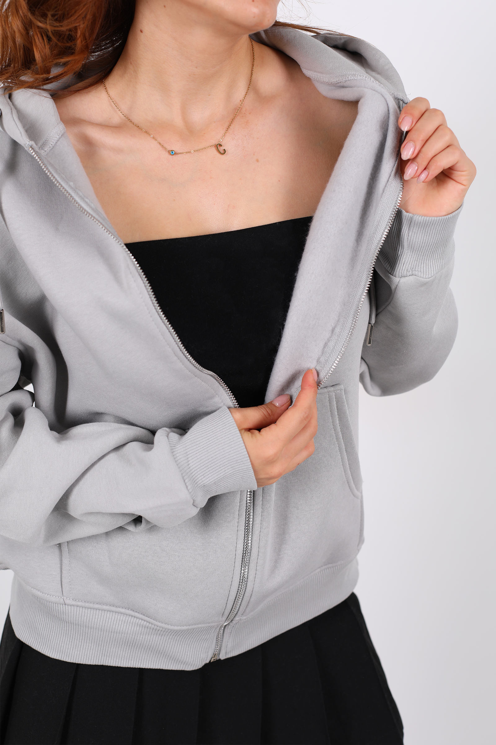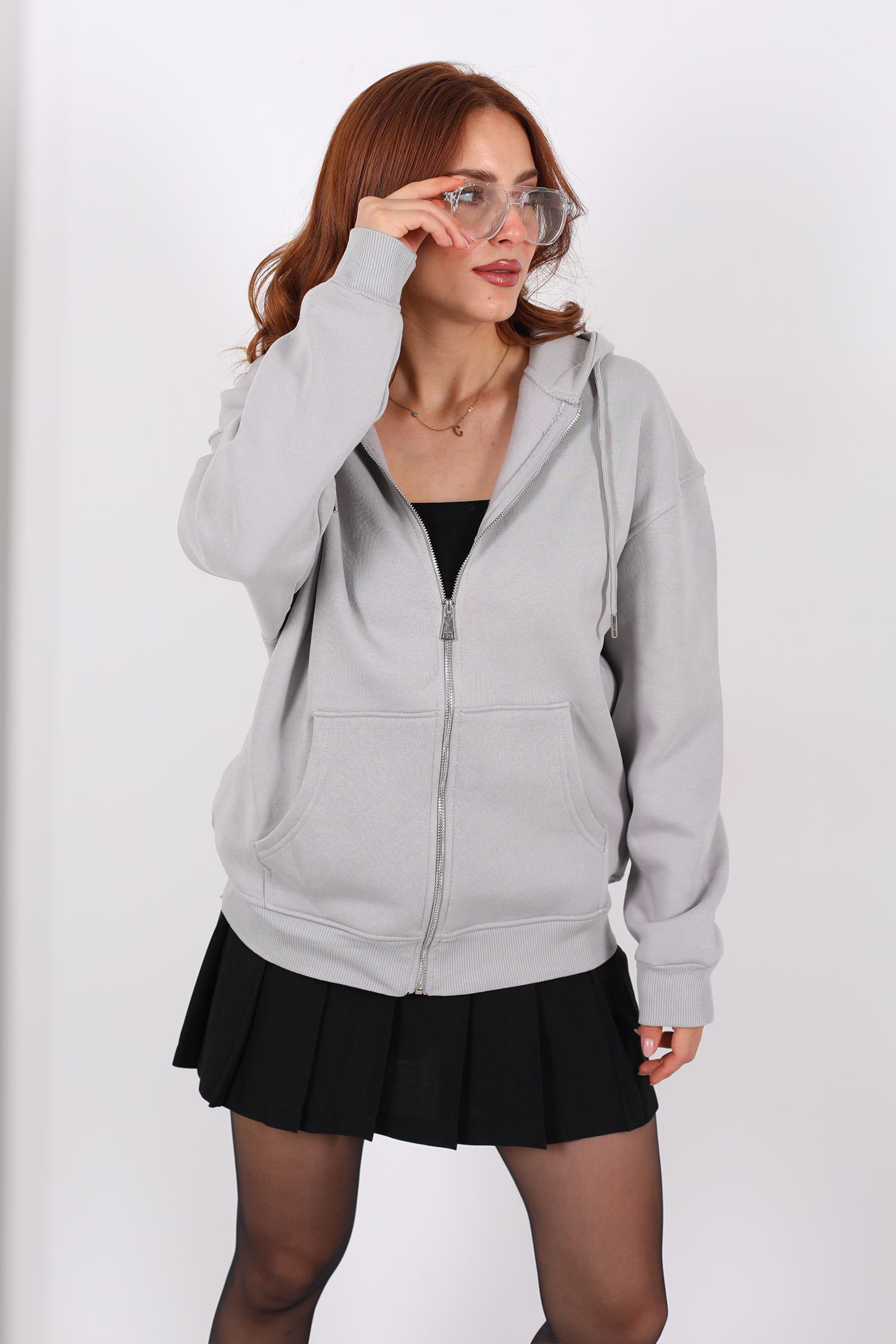 Şıklık ve konforun buluştuğu gri kapüşonlu sweat ceket, günlük kombinlerinize hem rahatlık hem de modern bir hava katıyor. Yumuşacık üç iplik kumaşı, nefes alabilir yapısıyla gün boyu ferahlık sağlarken, fermuar detayı pratik kullanım sunuyor. Geniş kesimi sayesinde hareket özgürlüğünüzü kısıtlamadan stilinizi ön plana çıkarır.
