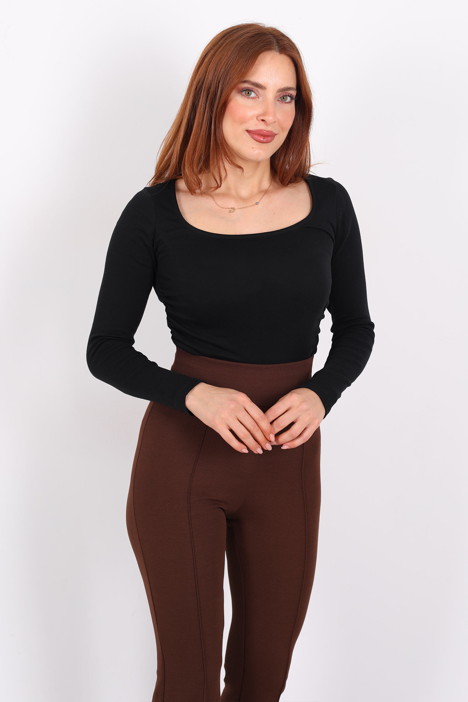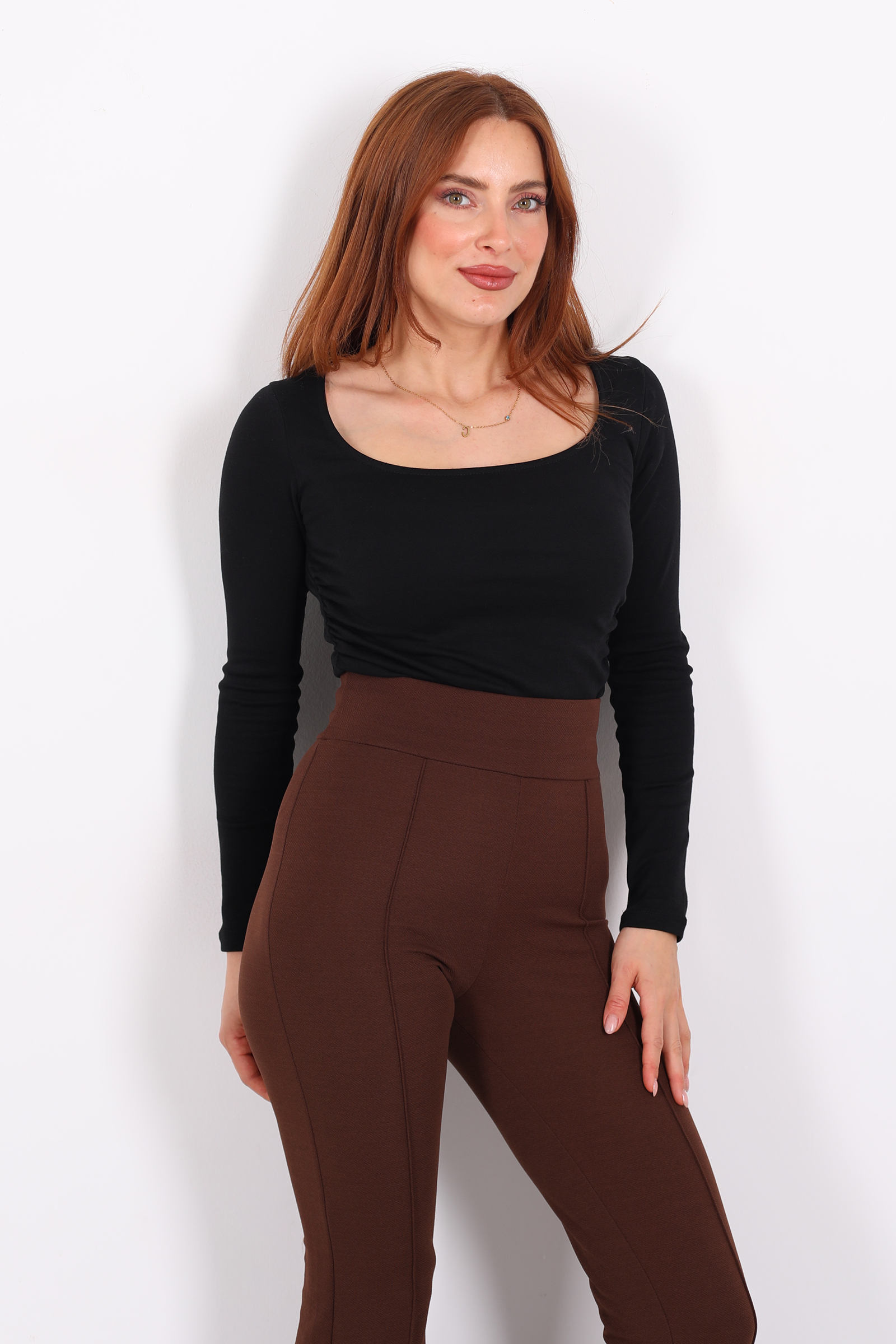 Derin siyahın sofistike havasıyla asimetrik büzgülerin hareketini buluşturan bu kare yaka kadın bluz, modern ve zarif bir stil ifadesi sunuyor. Kare yaka omuz hattını nazikçe ortaya çıkarırken, gövdeye eklenen büzgüler bluzun her hareketle dalgalanan bir siluet kazanmasını sağlıyor.Gündüz kombinleri için açık renk pantolon ve zarif babetlerle minimal ve şık bir görünüm oluşturabilir.