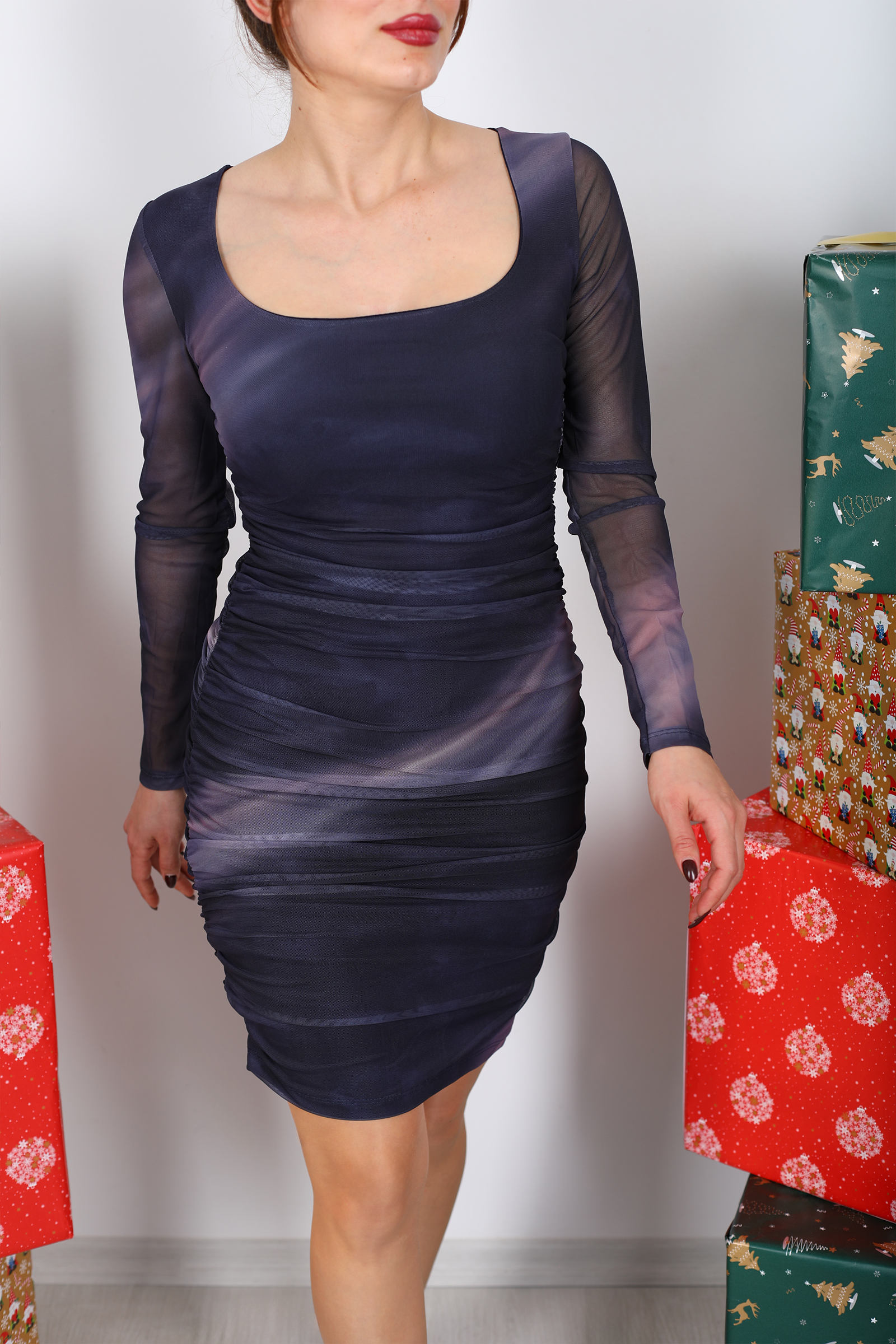 Tülün hafif ve yumuşak dokusu, elbiseye hem hacim hem de hareket kazandırır; aynı zamanda konforlu bir kullanım sağlar. Antrasit rengi, her ortamda dikkat çekici ama abartısız bir şıklık sunar. İş toplantısından akşam davetine, şehir gezmesinden özel kutlamalara kadar geniş bir stil yelpazesi için ideal bir seçimdir. Drapeli kıvrımlar, sade çizgilerle birleşerek modern ve dinamik bir estetik yaratır.