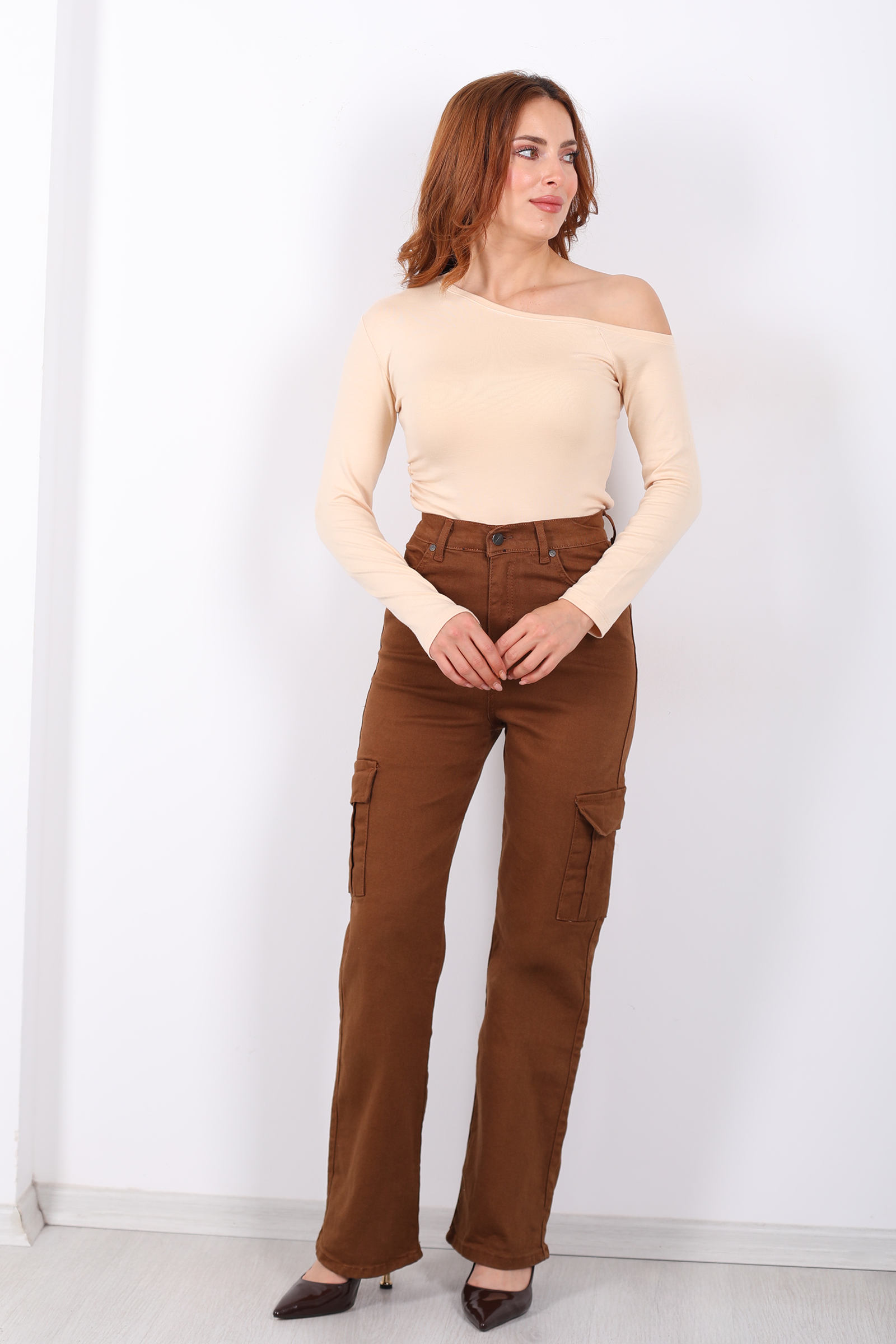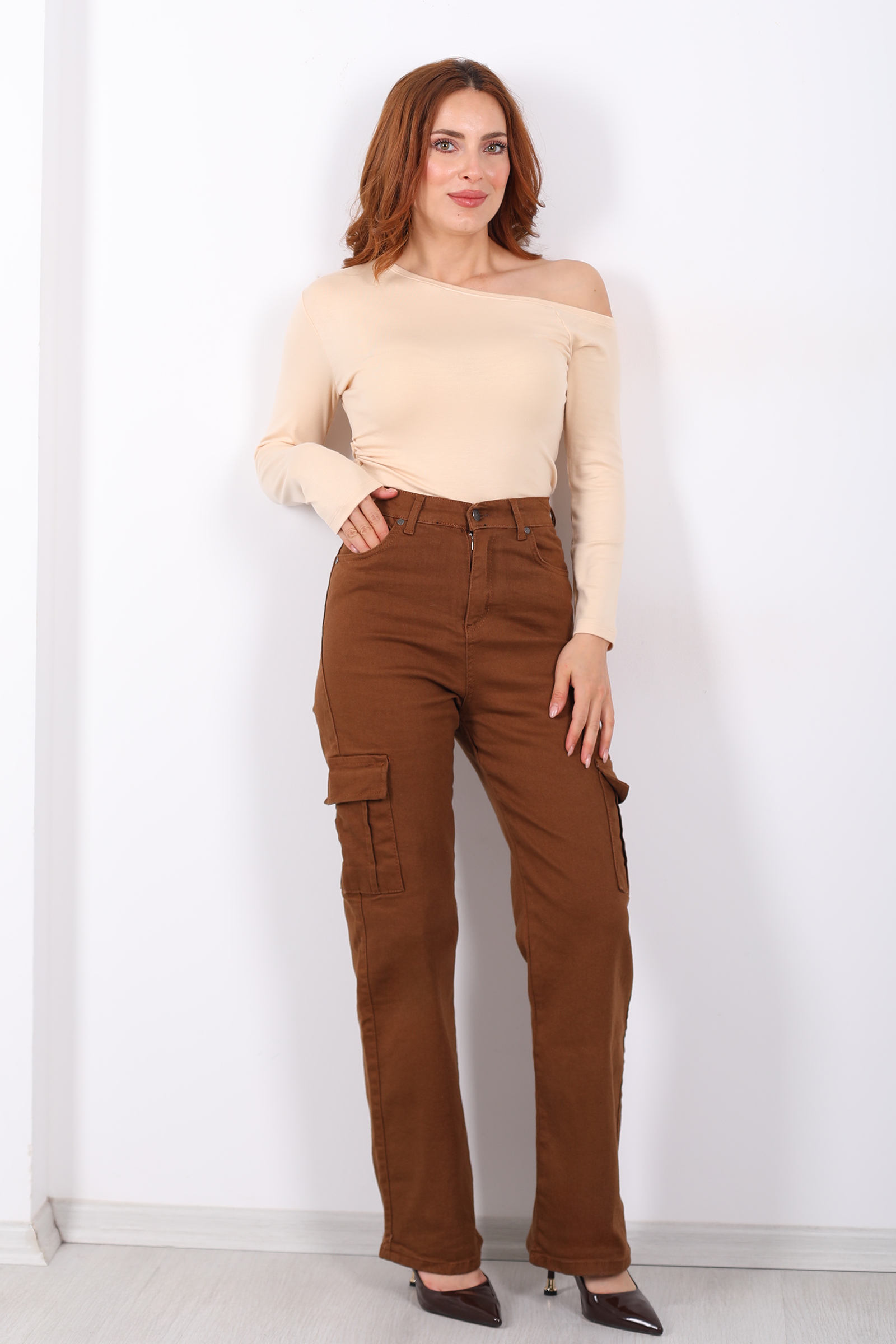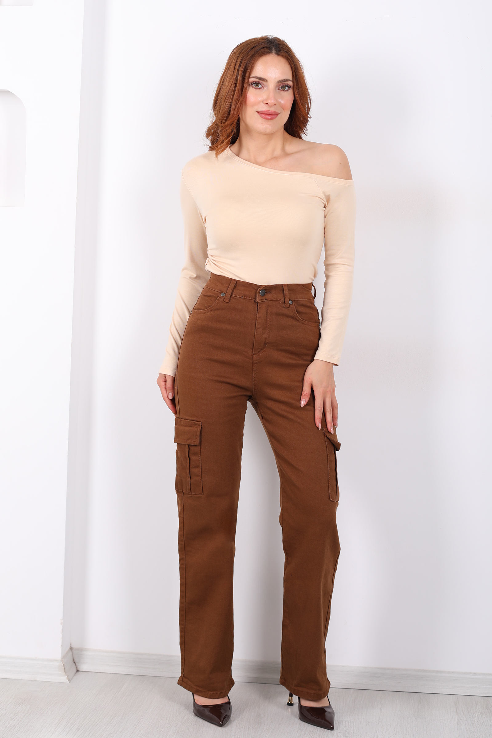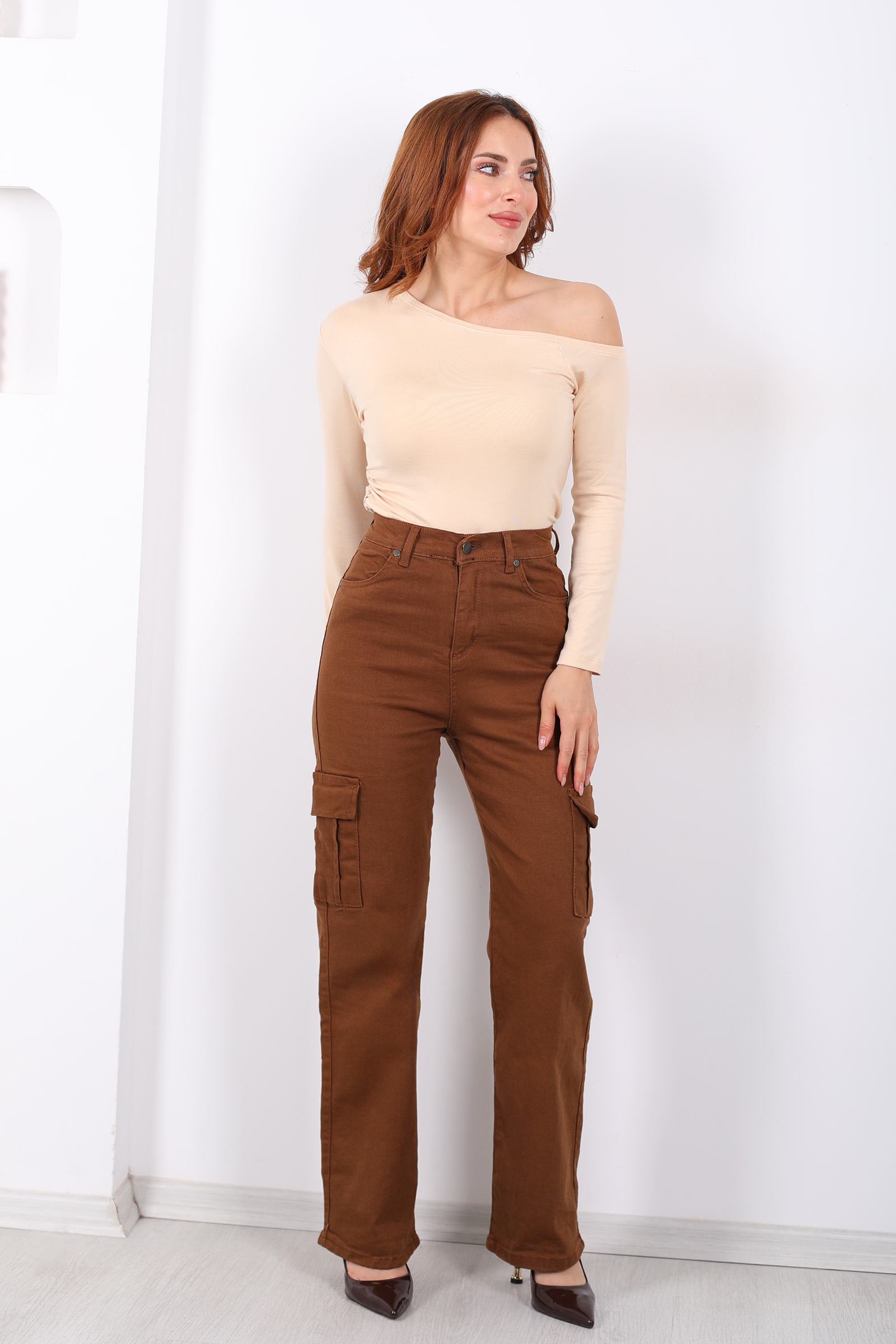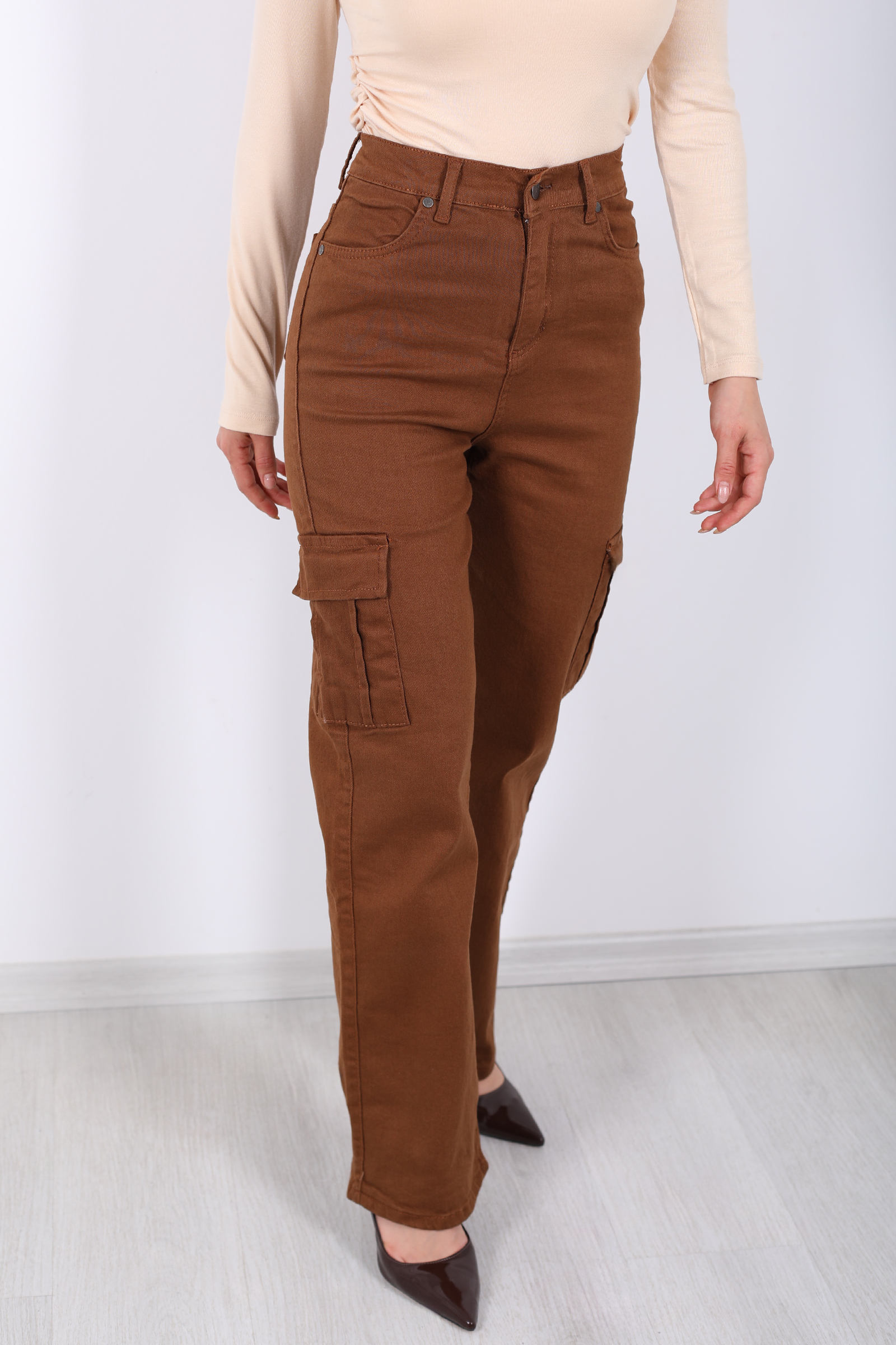 Kargo Cepli Kahverengi Kadın Palazzo Pantolon, kahverenginin doğal sıcak tonunu geniş paça rahatlığıyla buluşturarak hem şık hem fonksiyonel bir stil sunar. Yanlarda yer alan kargo cepler, sadece tarzı değil aynı zamanda günlük kullanımda pratikliği de ön planda tutar.