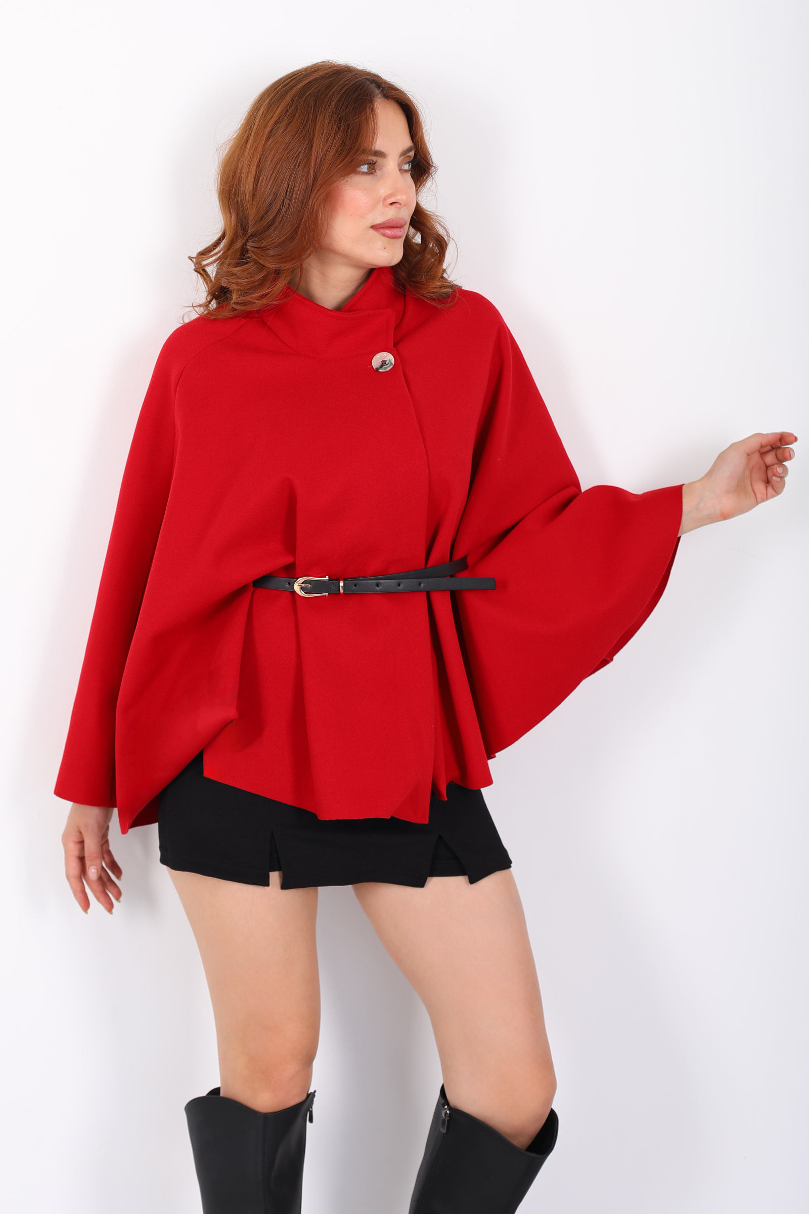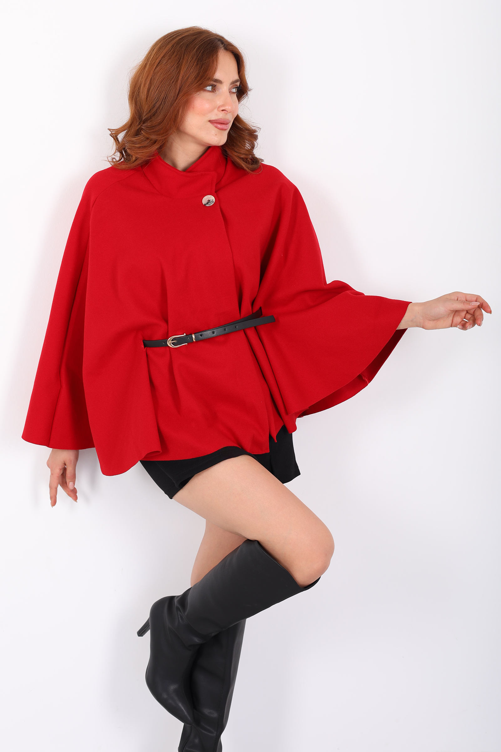 Kemerli Düğmeli Kiremit Kadın Soft Trenç