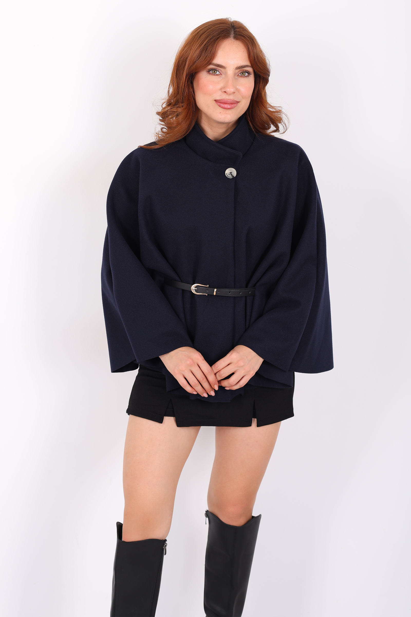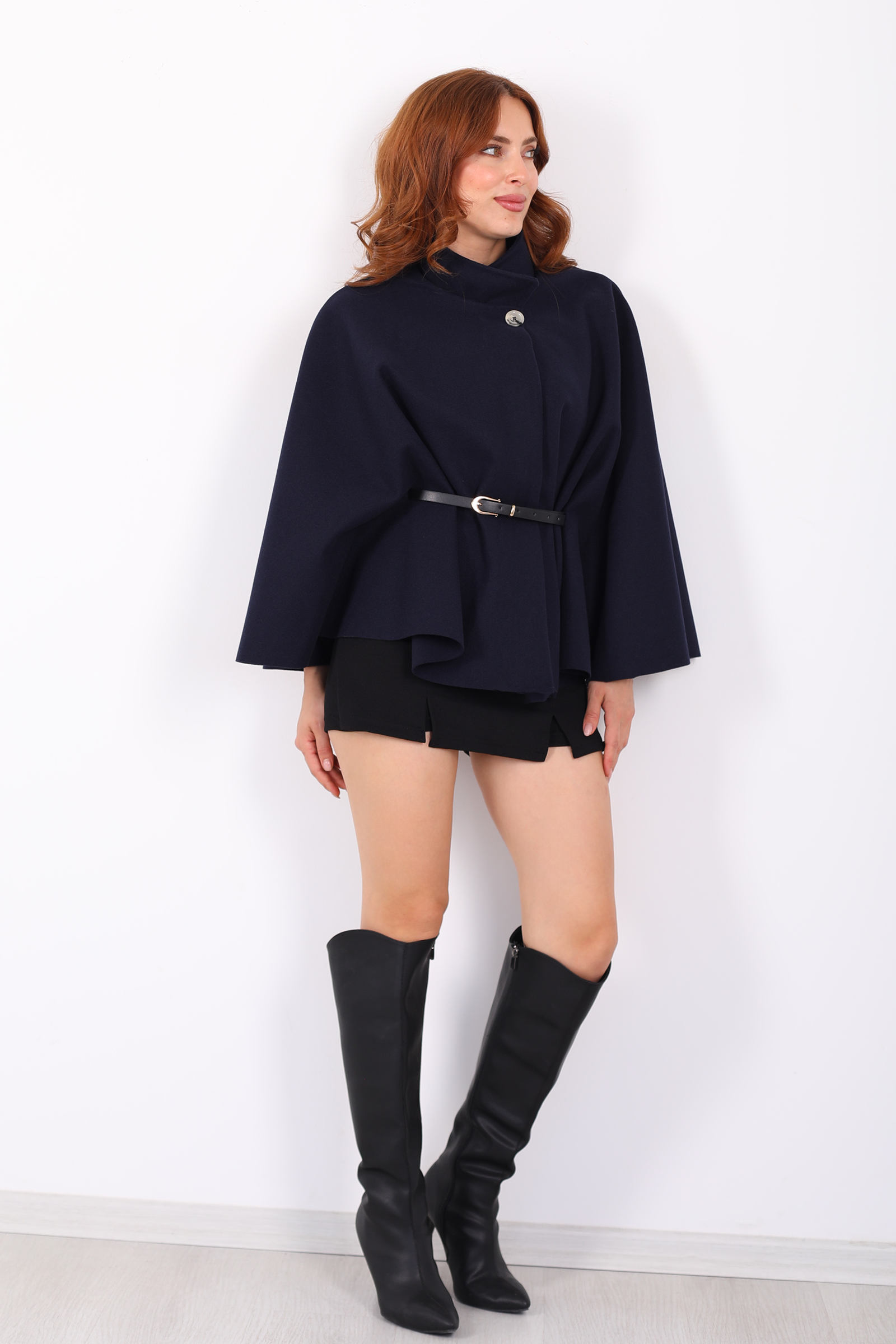 Hakim Yaka Cep Kapaklı İçi Astarlı Siyah Kadın Bomber Ceket