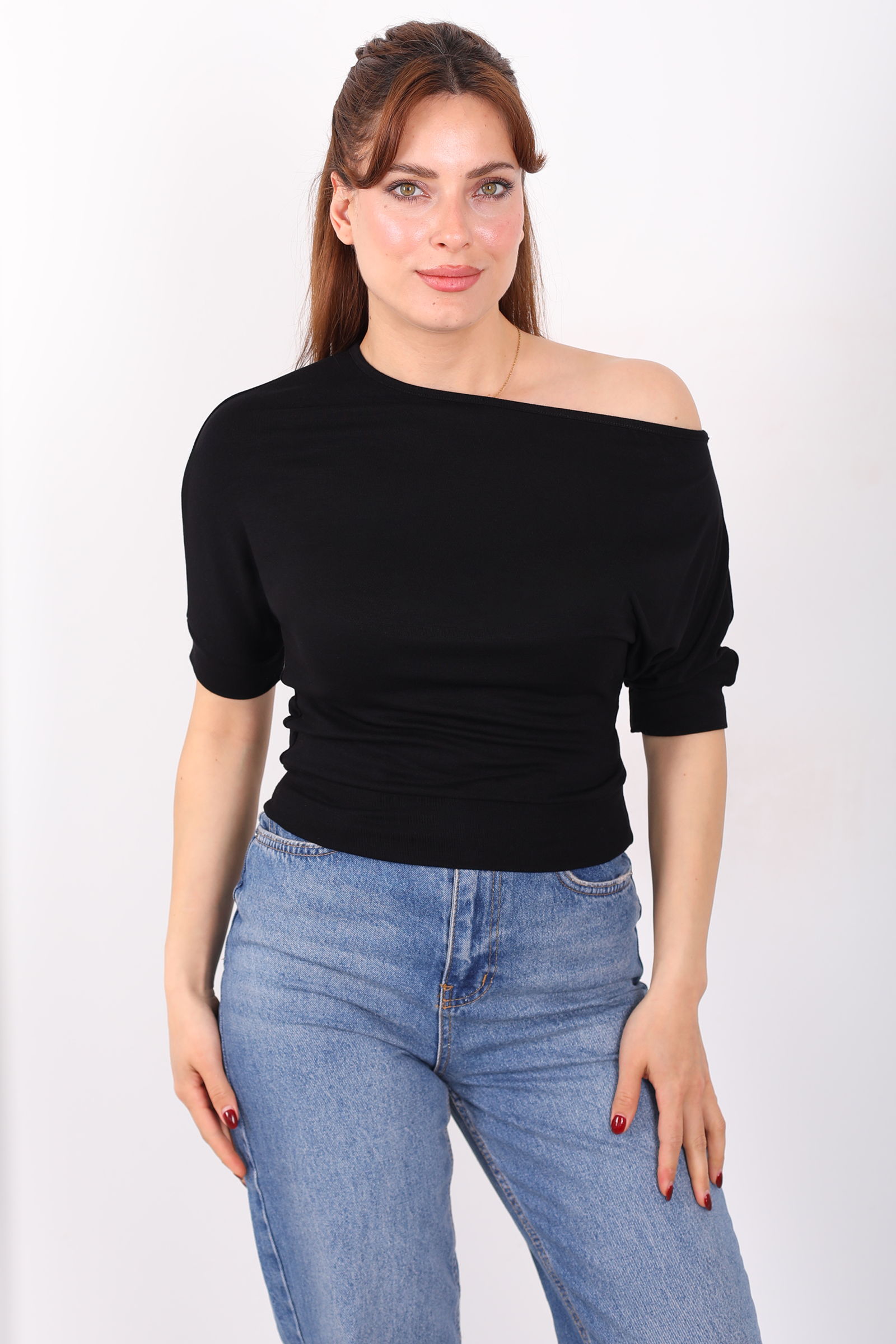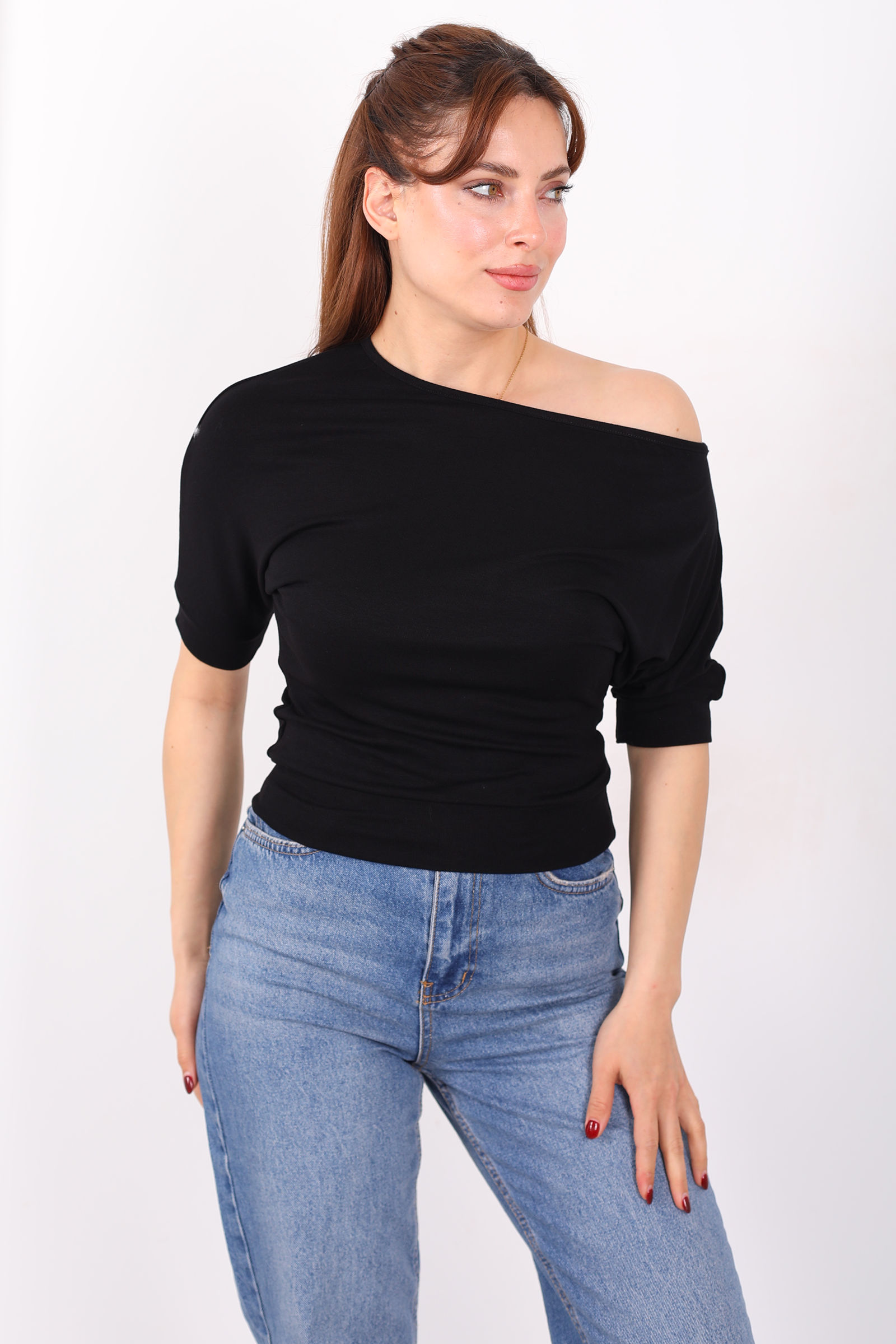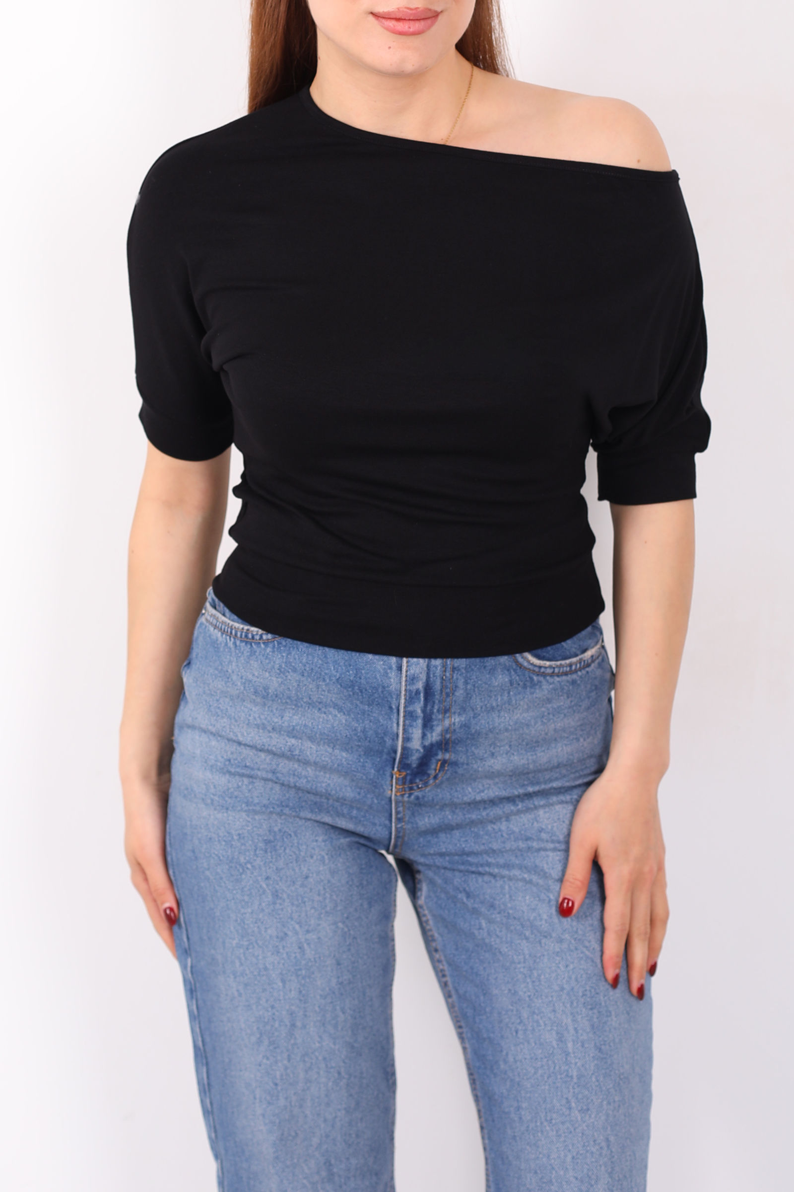 Tek Kol Toka Detaylı Siyah Kadın Bluz