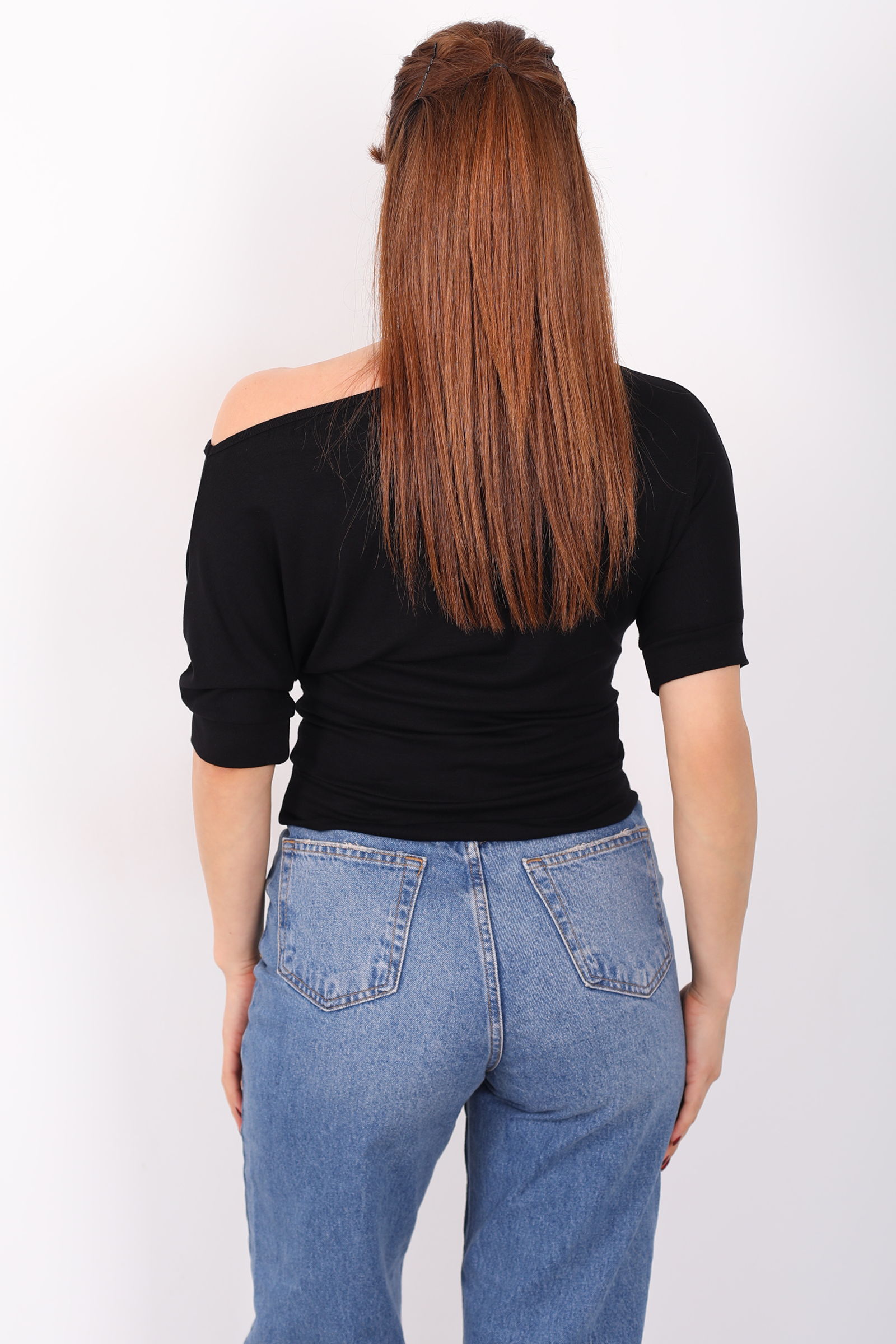 Kayık Yaka Drapeli Sandy Siyah Kadın Bluz