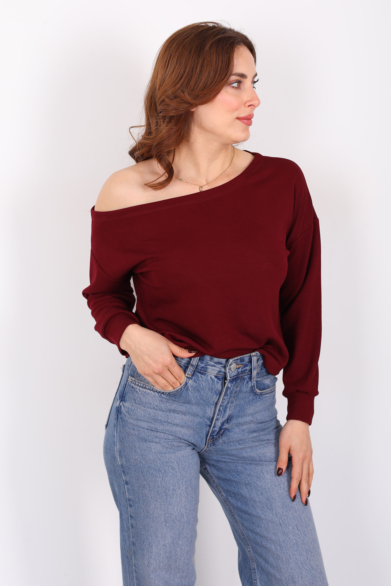 Kayık Yaka Fitilli Bordo Kadın Bluz, sade çizgiyle zarafeti buluşturan sıcak bir üst parçadır. Kayık yaka tasarımı omuz hattını nazikçe ortaya çıkararak feminen bir duruş sunarken, fitilli dokusu bluzun yüzeyine doku ve zenginlik katar. Bordo rengin derin tonu, günlük kombinlerde güçlü bir ifade yaratır; jean, pantolon veya eteklerle kolayca uyum sağlar.
