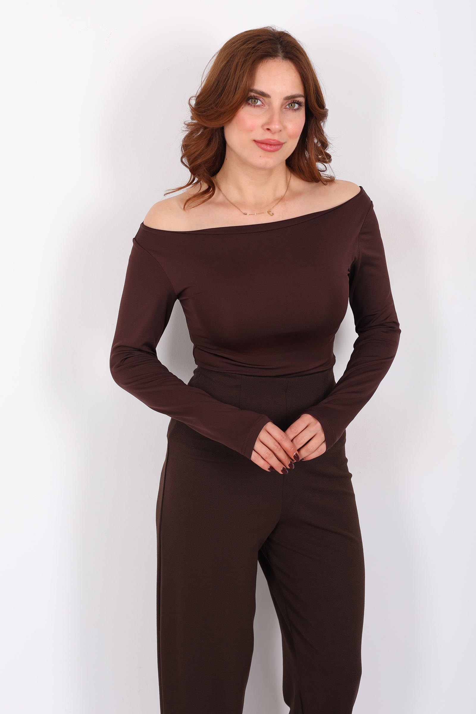 Lüks kahverengi tonuyla öne çıkan bu kayık yaka sandy bluz, zarif bir duruşa sahip. Kayık yaka tasarımı omuz hattını açığa çıkarırken yumuşak ve akıcı kumaş, günlük hareketlerinize uyum sağlar. Sandy dokusu hafif bir zarafet sunar; sade ama güçlü kahverengi tonu, farklı parçalarla kusursuz kombinler yaratmanıza yardımcı olur. Bu bluz, minimal çizgilerle sıcak bir atmosfer yakalayarak stilinizde doğal ama etkileyici bir imza bırakır.