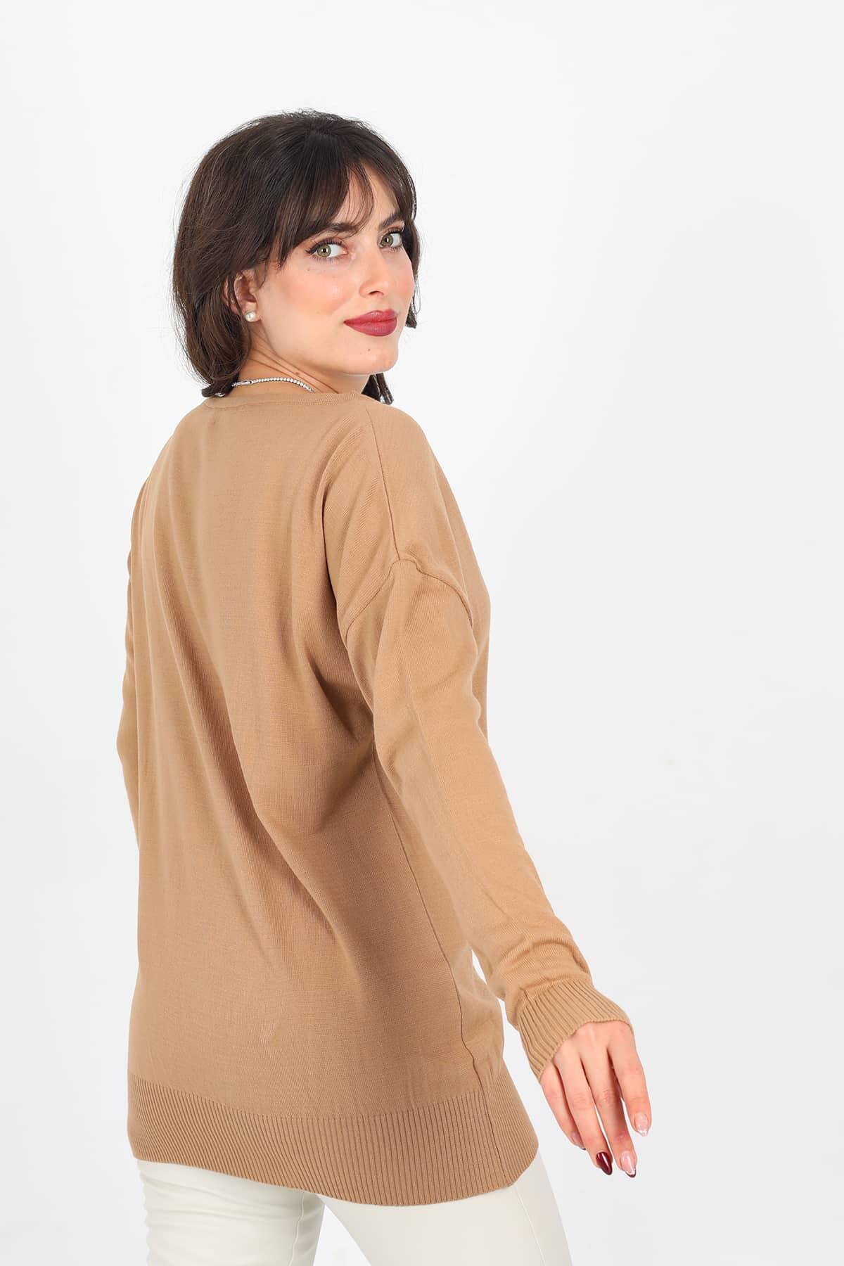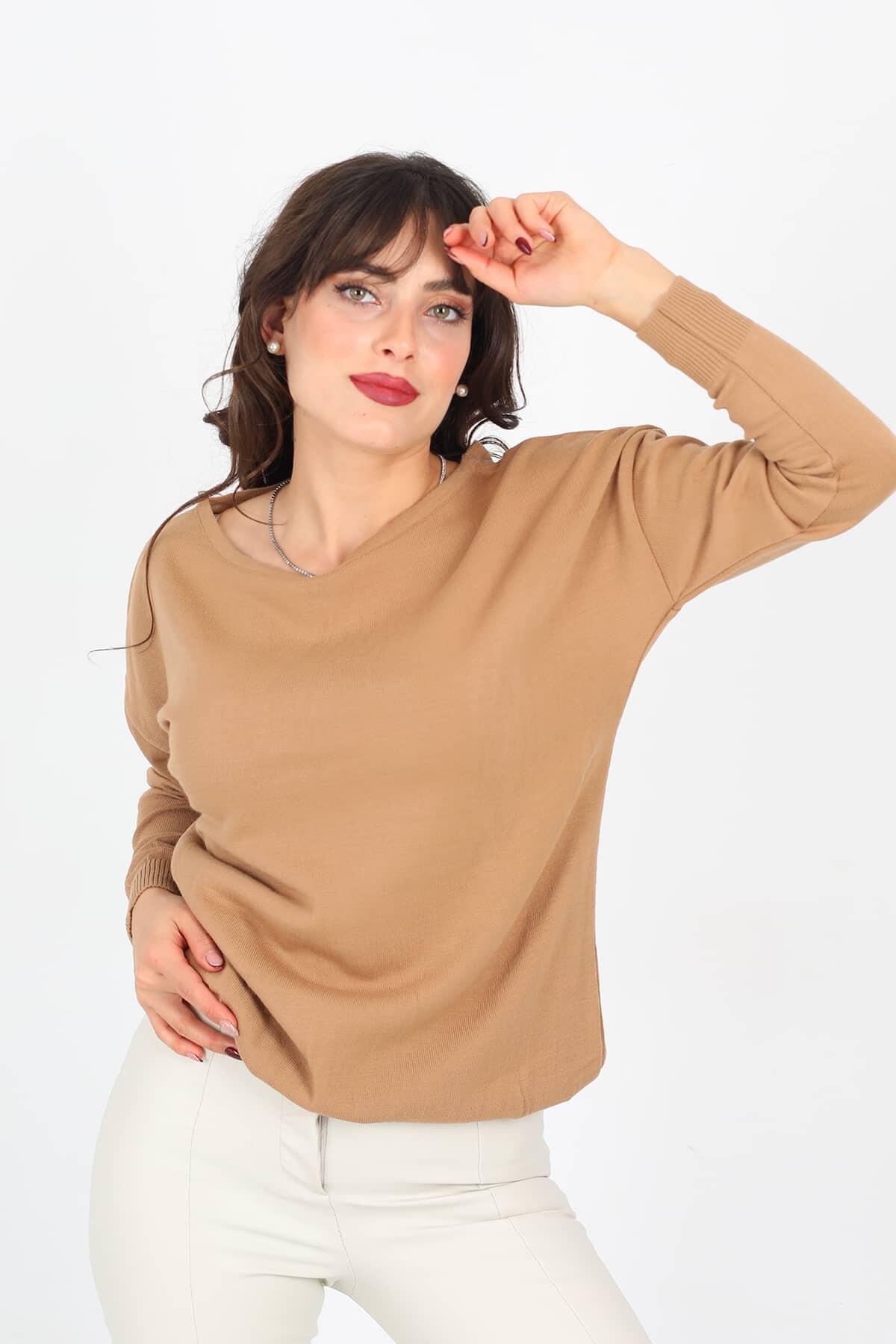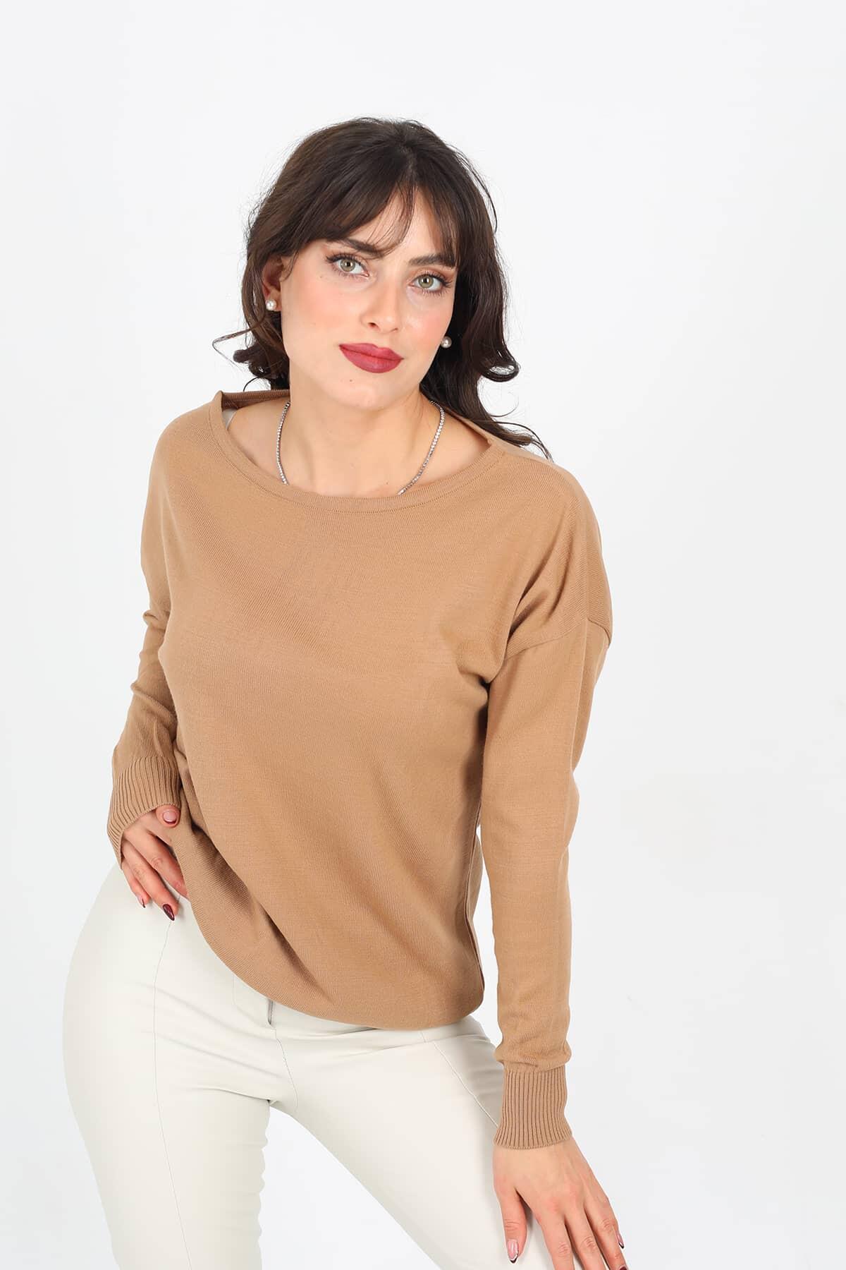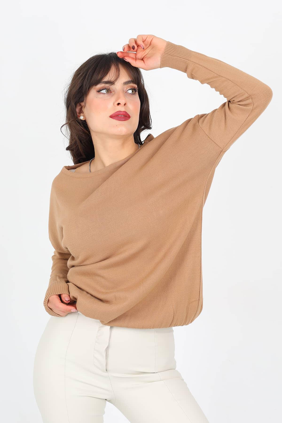 Kayık Yaka Kahverengi Kadın Triko Kazak