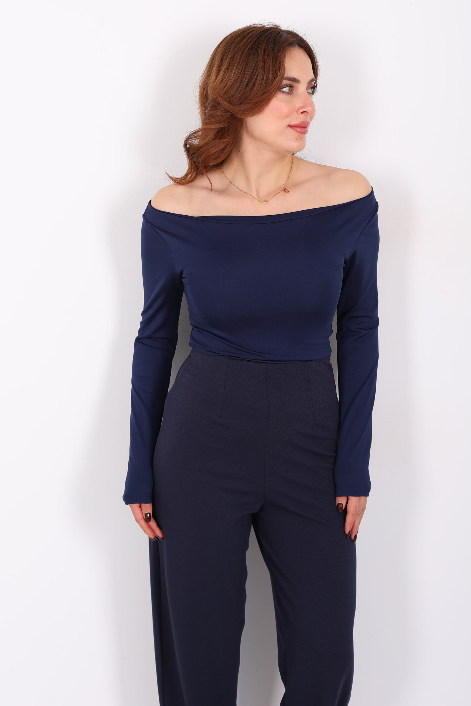 Lacivertin dingin tonunu modern bir çizgiyle yorumlayan bu kayık yaka sandy bluz, sade görünüme sofistike bir dokunuş katıyor. Omuzları nazikçe ortaya çıkaran kayık yaka, hem feminen hem ferah bir duruş yaratır. Akıcı kumaş yapısı hafif bir zarafet sağlarken lacivertin derinliği, kombinlerinize gizemli bir hava ekler. Sade detaylarla tasarlanan bu bluz, gündelik stilinizi yükseltmekle kalmaz; akşam davetlerinde de göz alıcı bir seçenek sunar. Farklı dokular ve renklerle kombinlendiğinde stilinize derinlik kazandırır.