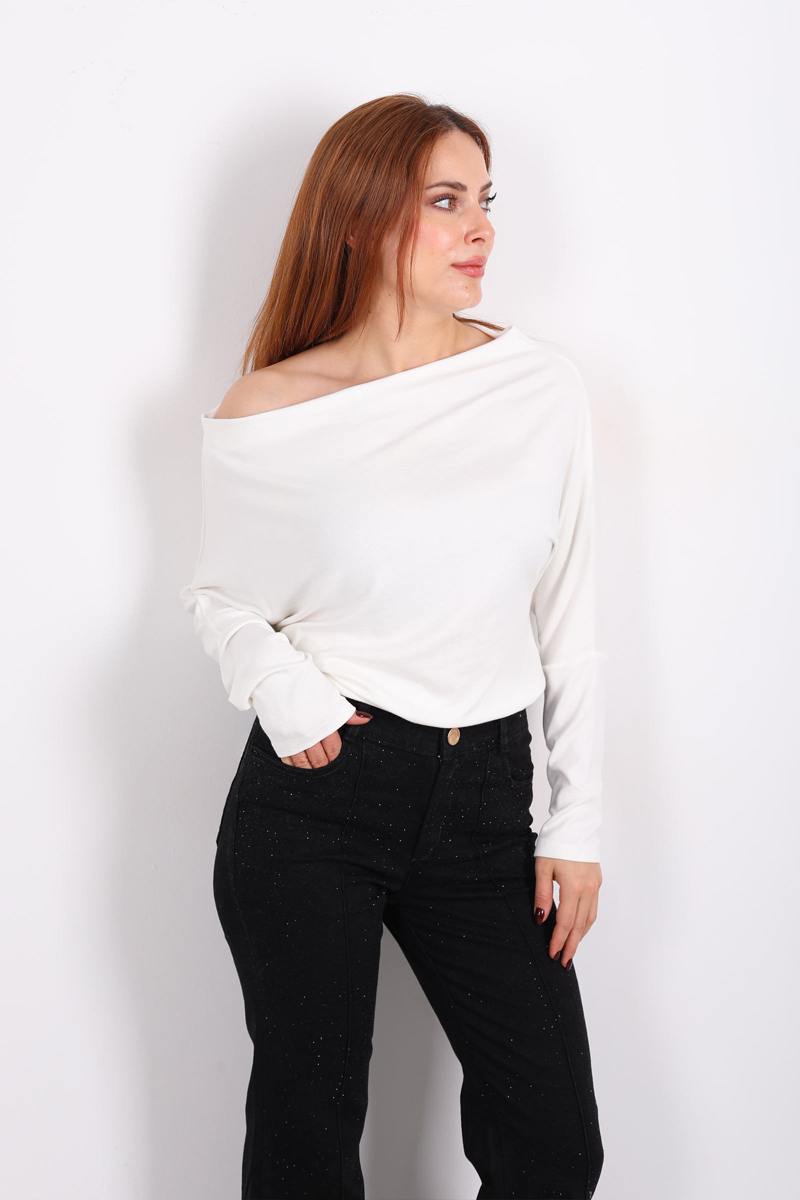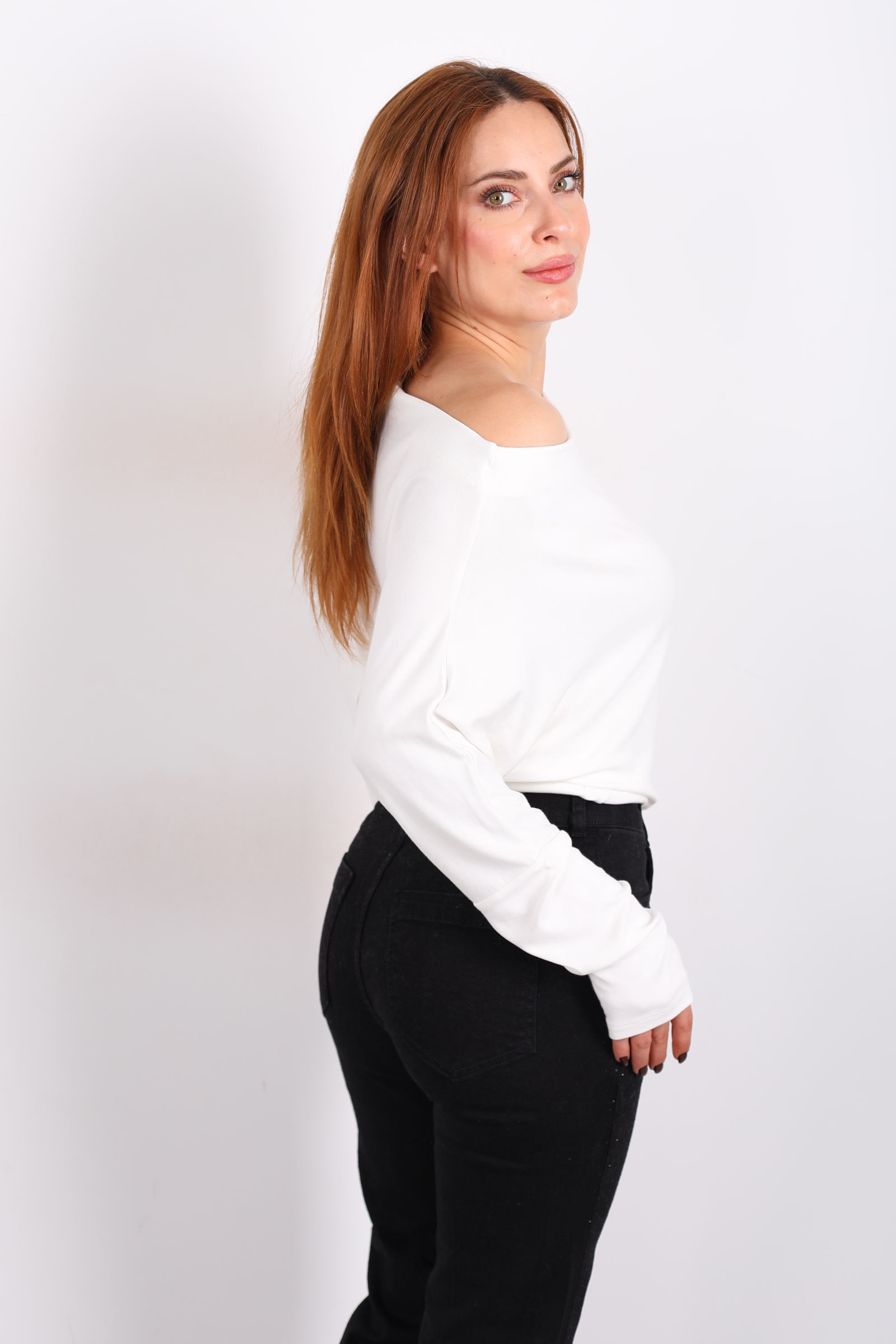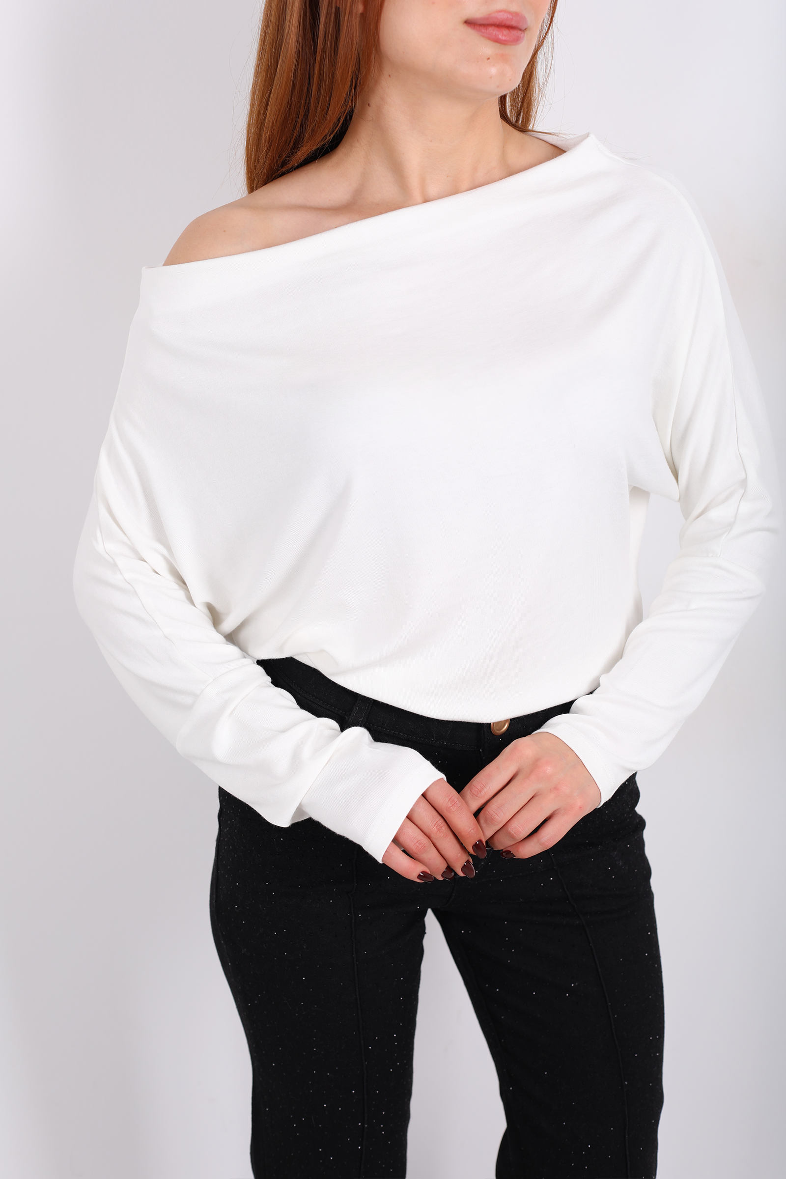 Kayık Yaka Basic Modal Ekru Kadın Bluz