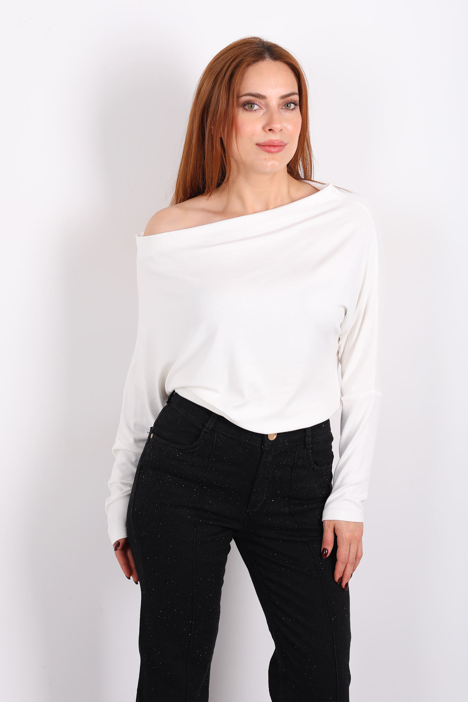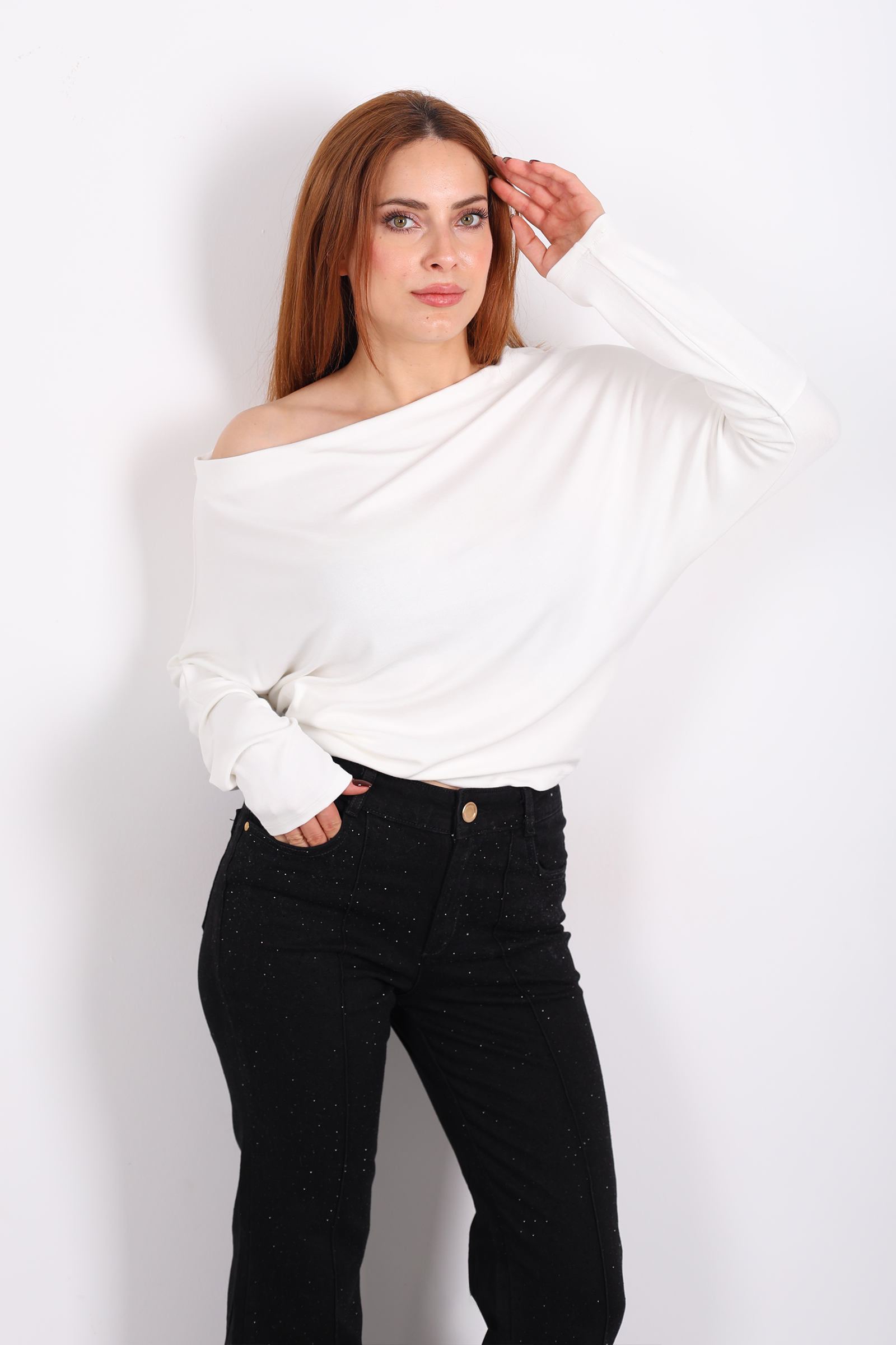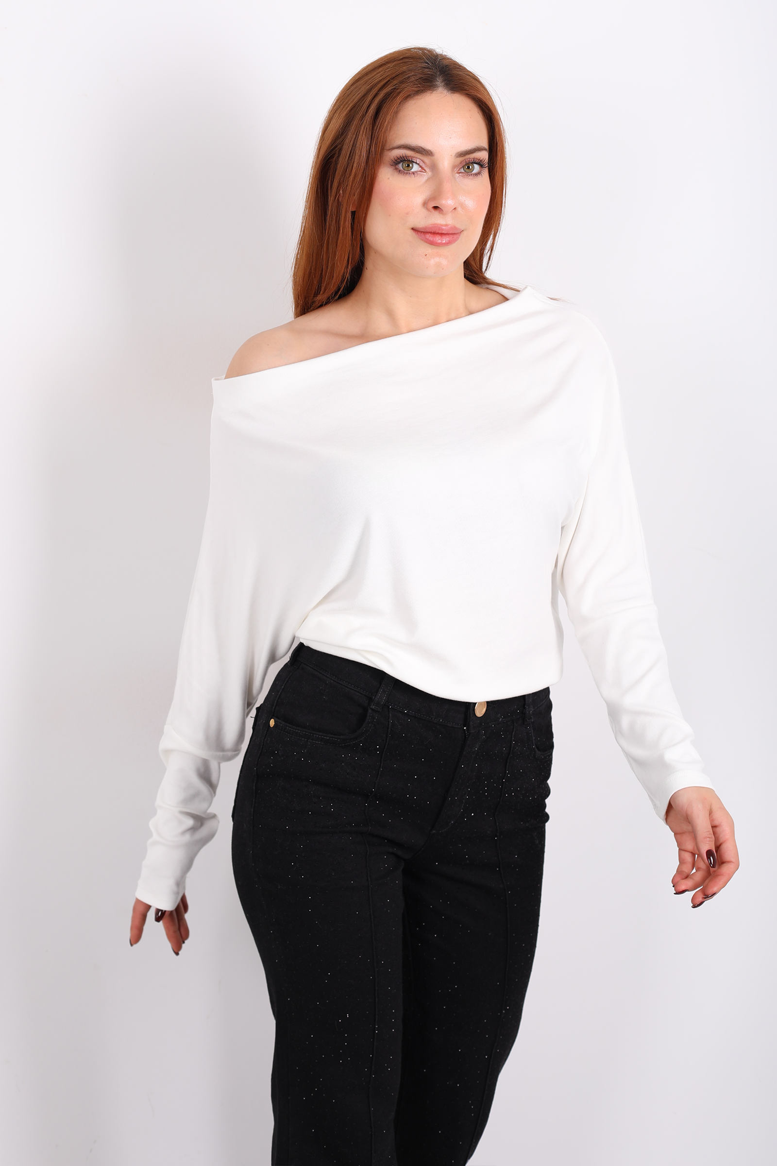 Kayık Yaka Basic Modal Ekru Kadın Bluz