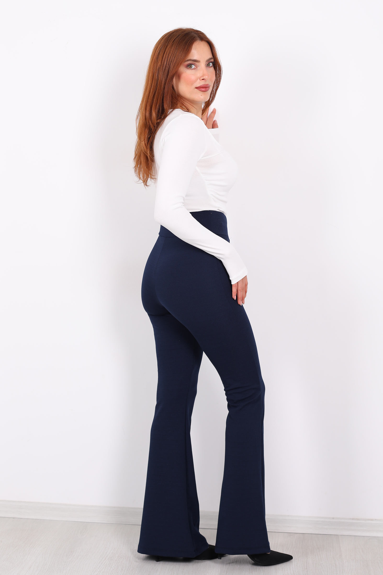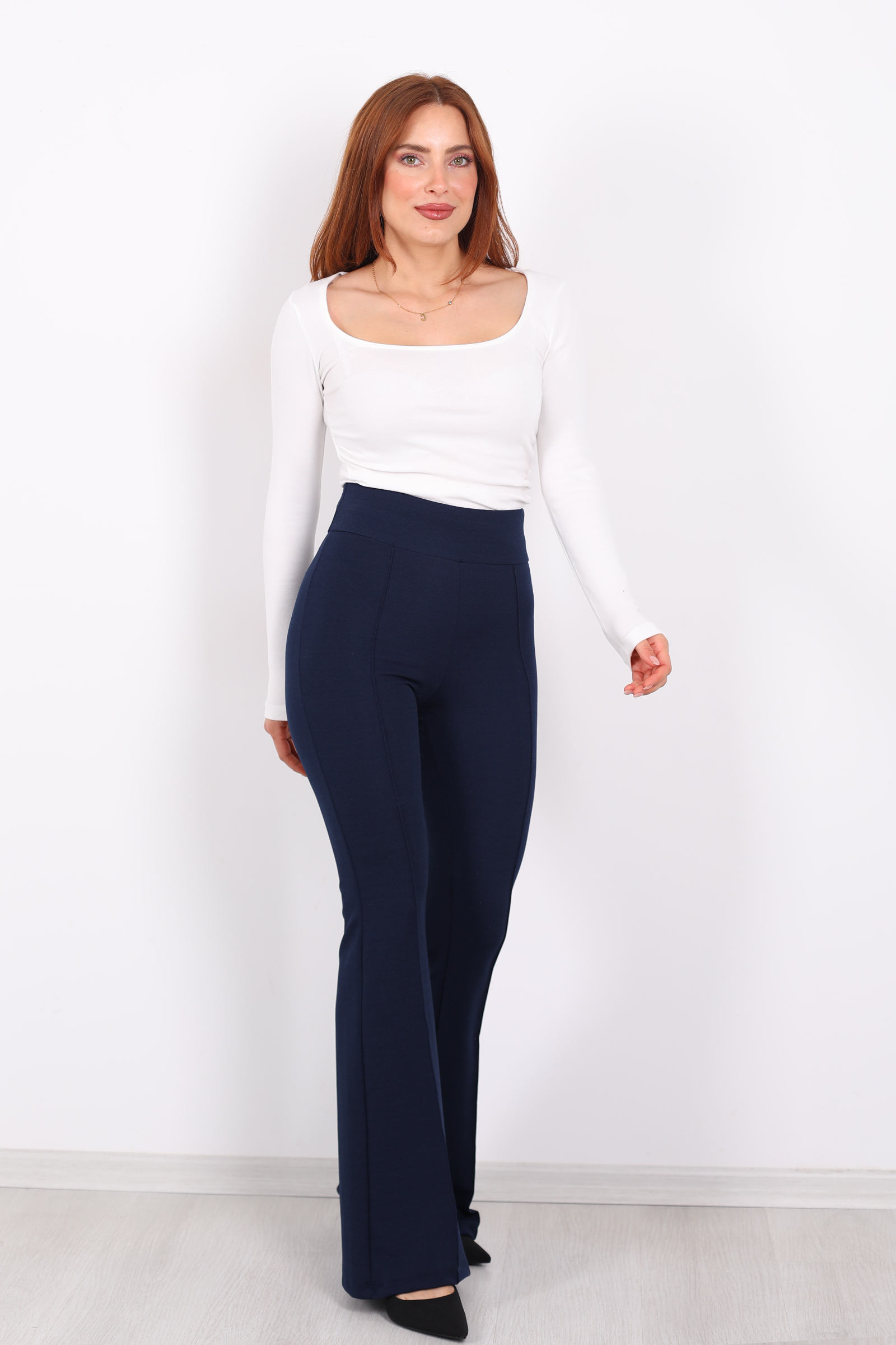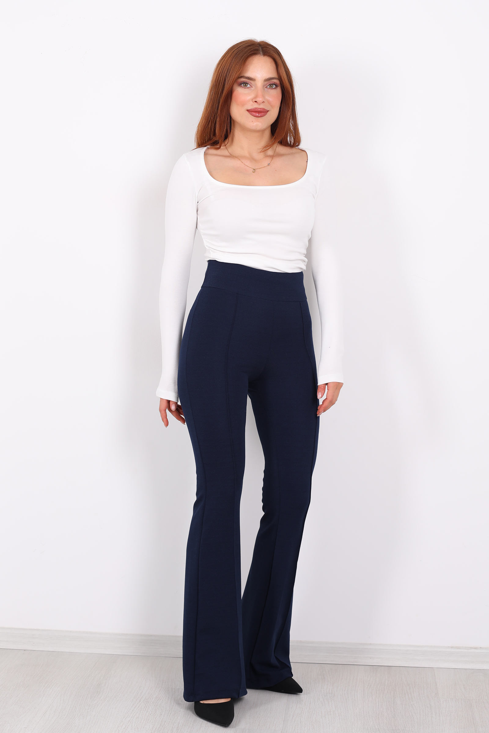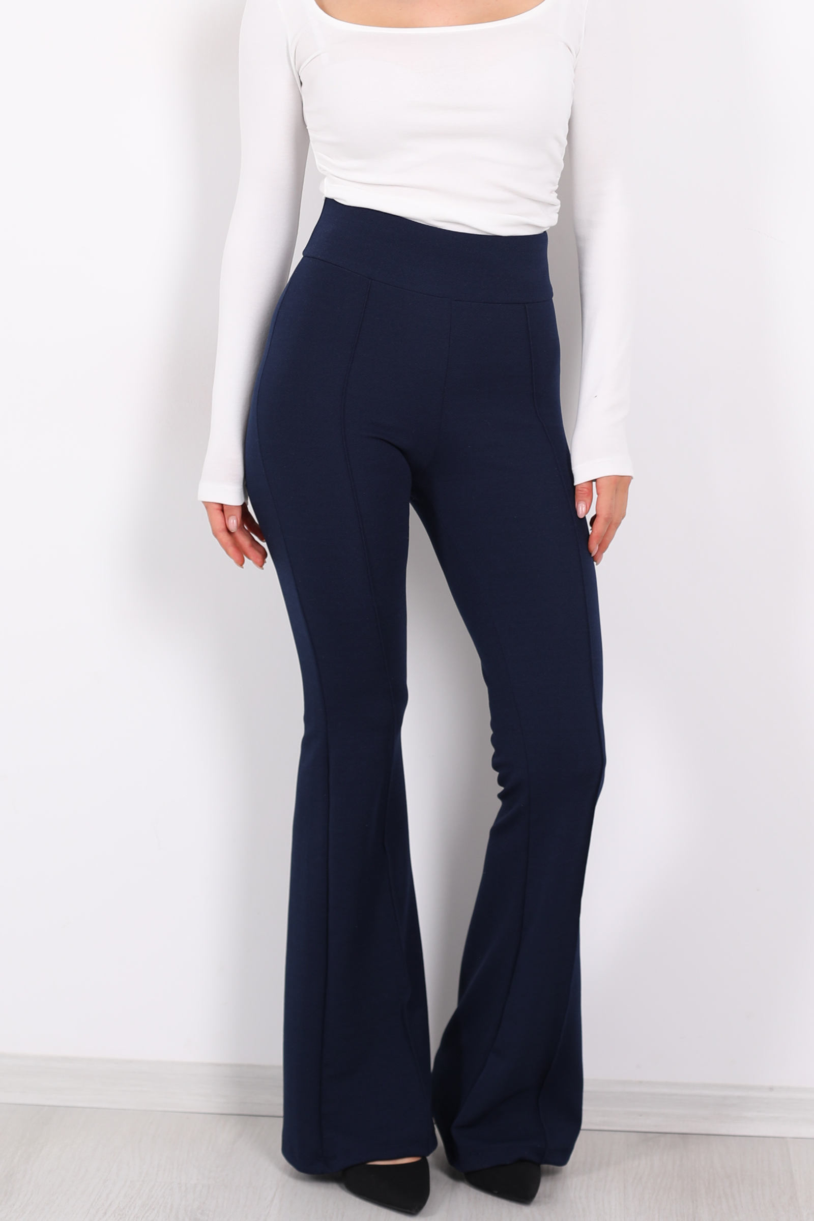 Bu pantolon, klasik İspanyol paçanın zarif siluetini lacivert krep kumaşla birleştiriyor. Kemer detayıyla bele zarif bir vurgu yaparken, geniş paçalar modern ve sofistike bir hava yaratıyor.Derin lacivert tonu, hem iş hem gündelik ve özel kombinlerde güçlü bir temel oluşturur; beyaz, bej ya da pastel üstlerle harika bir kontrast sağlar.Ofisten akşam davetlerine kadar birçok farklı kombinde kullanabileceği çok yönlü bir pantolon isteyenlere.