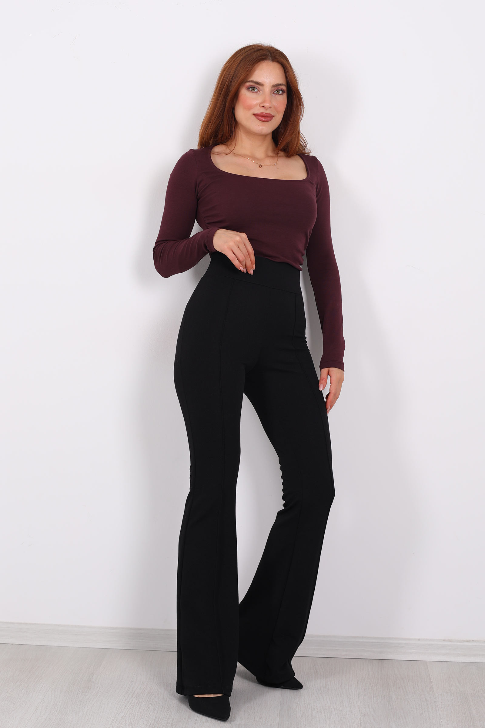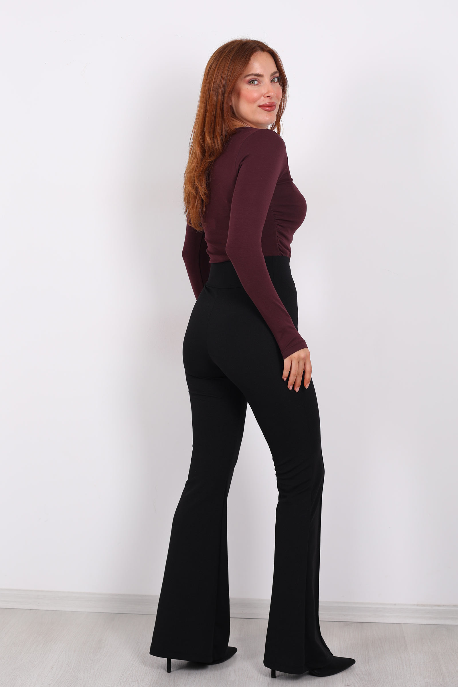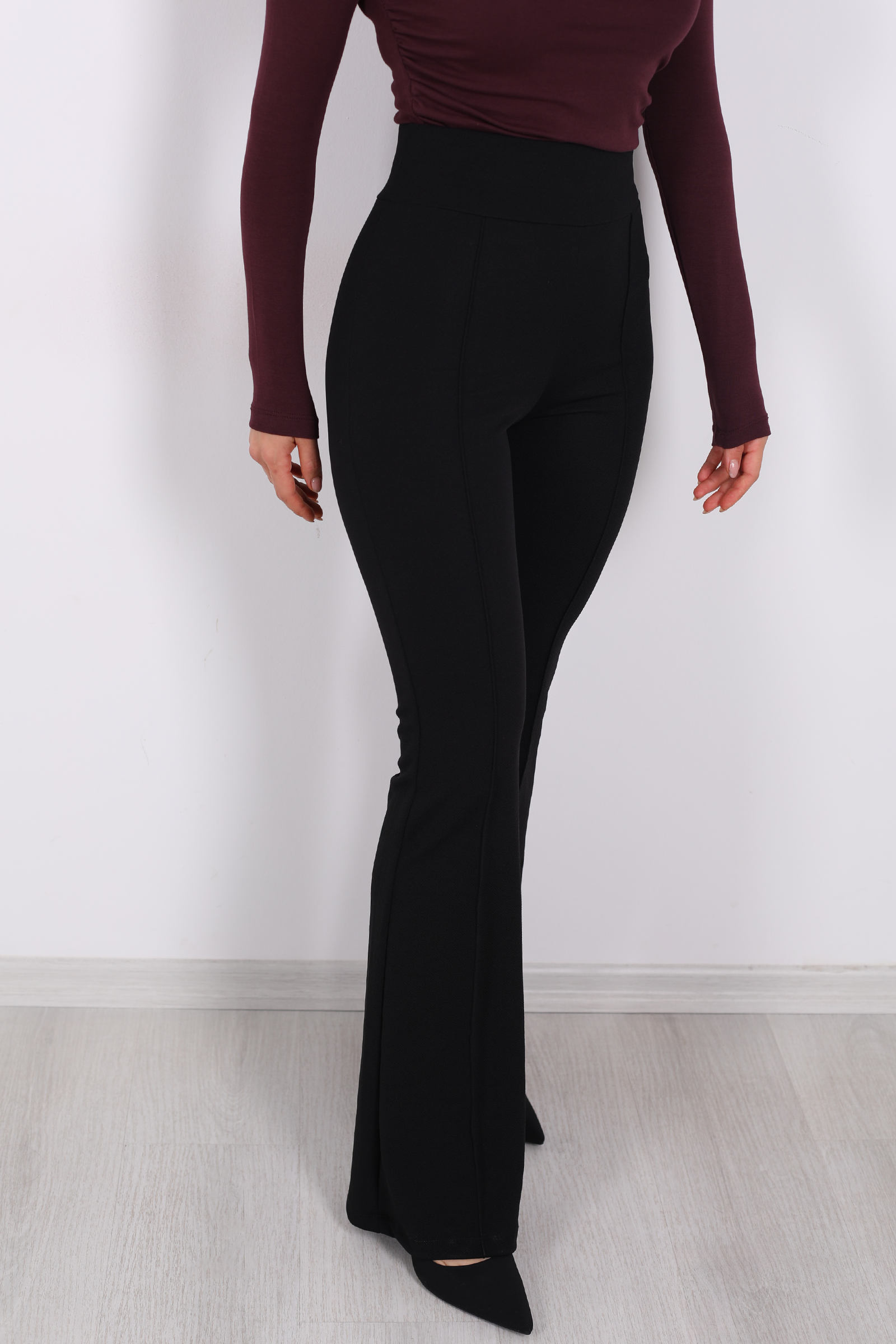 Bu siyah krep pantolon, İspanyol paçanın akıcı zarafetini kemer detayıyla birleştirerek şık ve modern bir ifade sunuyor. Minimalist bir duruş arayan, fakat tarzından da ödün vermek istemeyen kadınlar için ideal bir yatırım parçası.İspanyol paçalı tasarım, paçalar boyunca geniş bir akış sağlar ve hareket esnekliği kazandırır. Kemerli bel kısmı ise bele zarif bir vurgu yapar.İş, günlük ve özel kombinlerde çok yönlü bir alt parça isteyenlere;