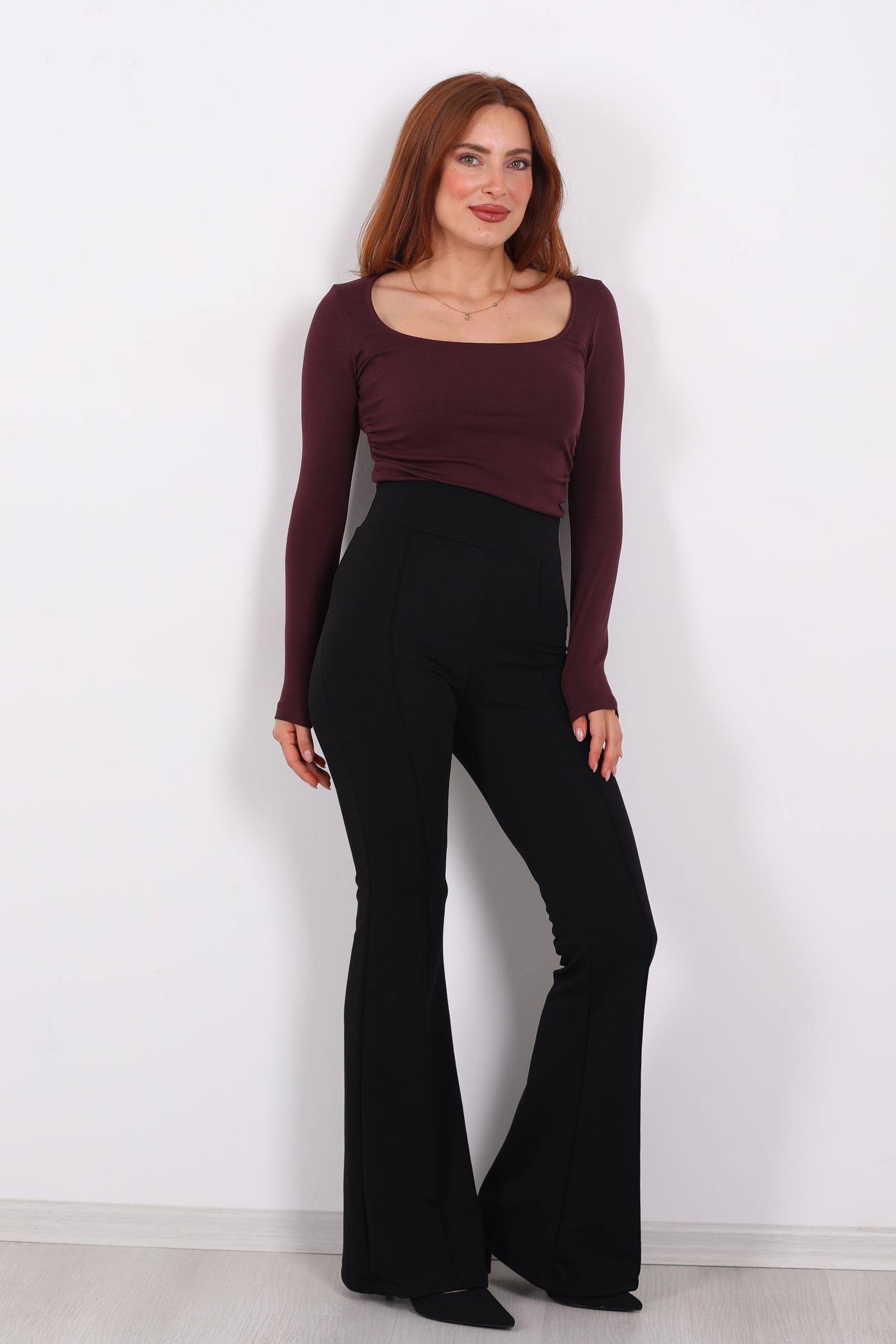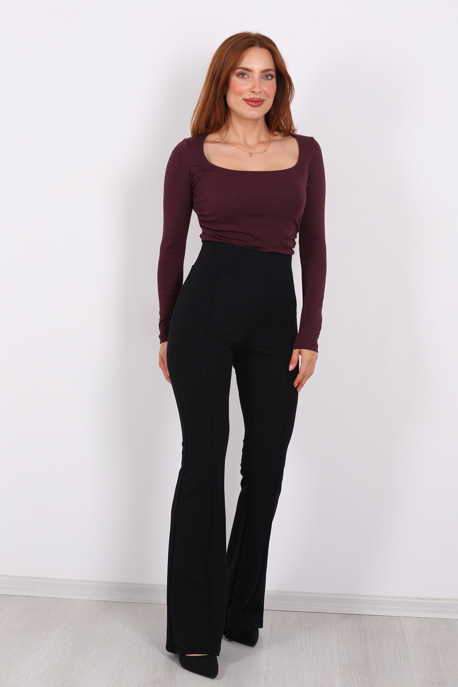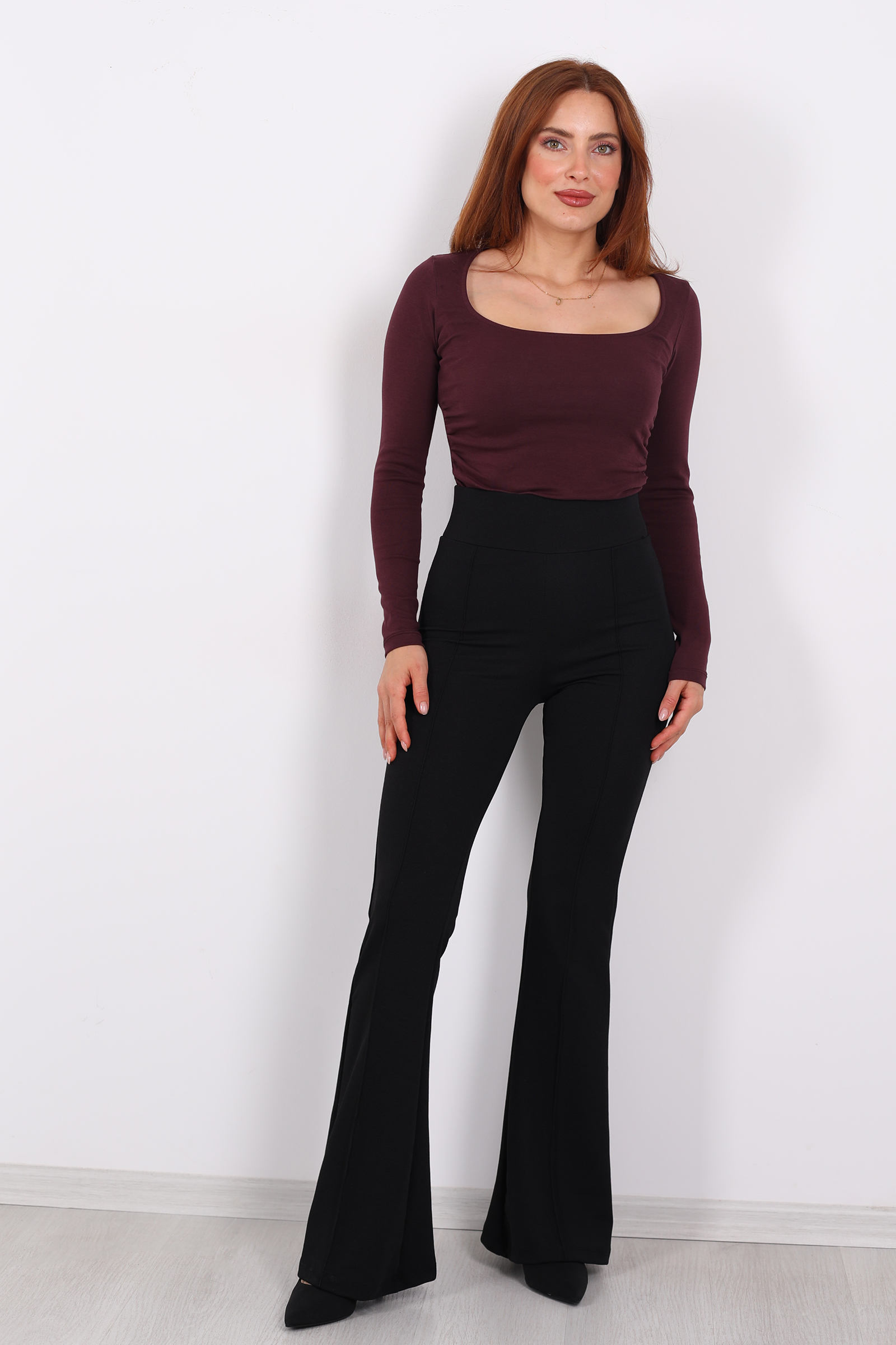 Bu siyah krep pantolon, İspanyol paçanın akıcı zarafetini kemer detayıyla birleştirerek şık ve modern bir ifade sunuyor. Minimalist bir duruş arayan, fakat tarzından da ödün vermek istemeyen kadınlar için ideal bir yatırım parçası.İspanyol paçalı tasarım, paçalar boyunca geniş bir akış sağlar ve hareket esnekliği kazandırır. Kemerli bel kısmı ise bele zarif bir vurgu yapar.İş, günlük ve özel kombinlerde çok yönlü bir alt parça isteyenlere;