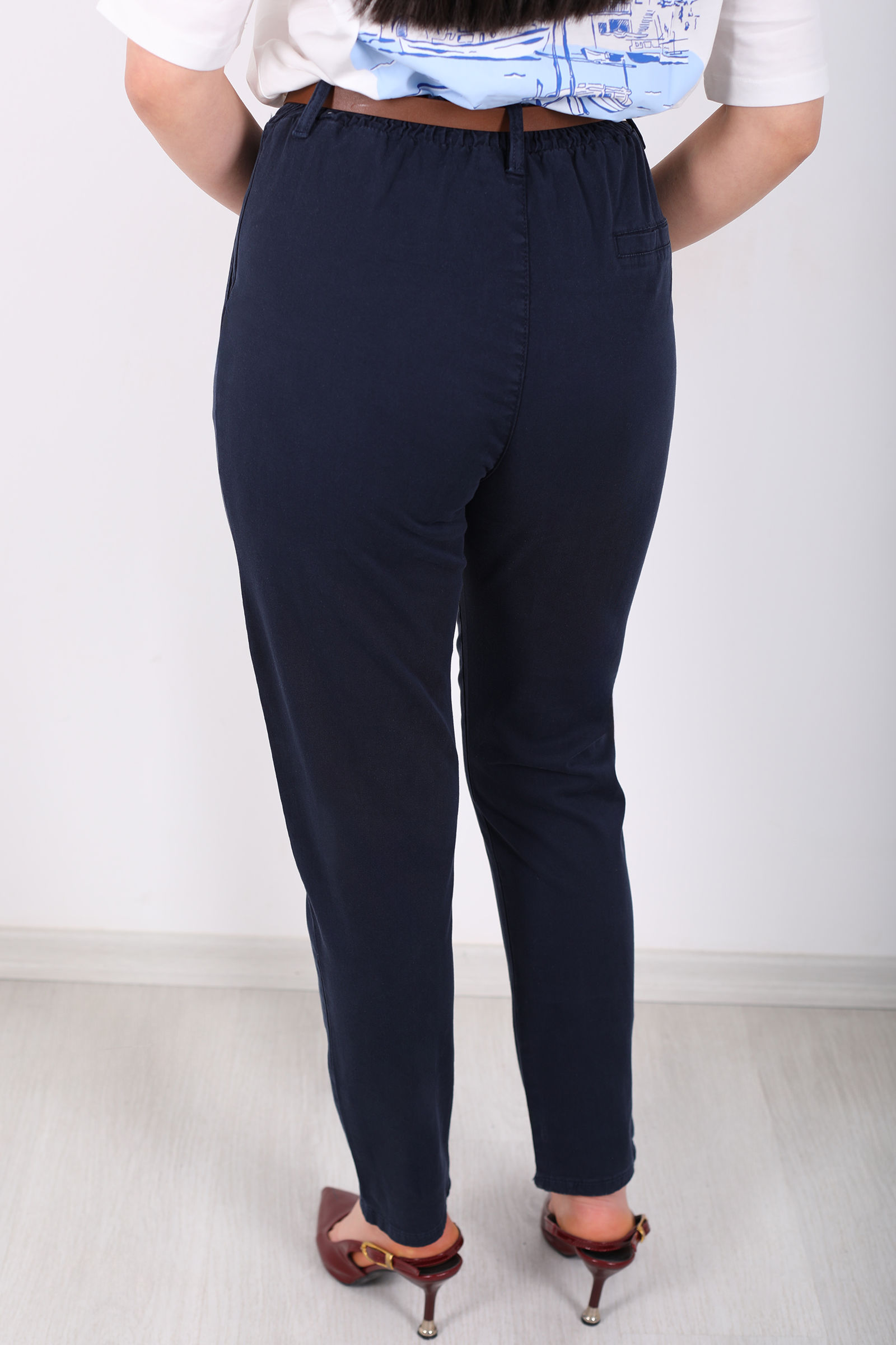 Beli Lastikli Yüksek Bel Lacivert Kadın Modal Pantolon