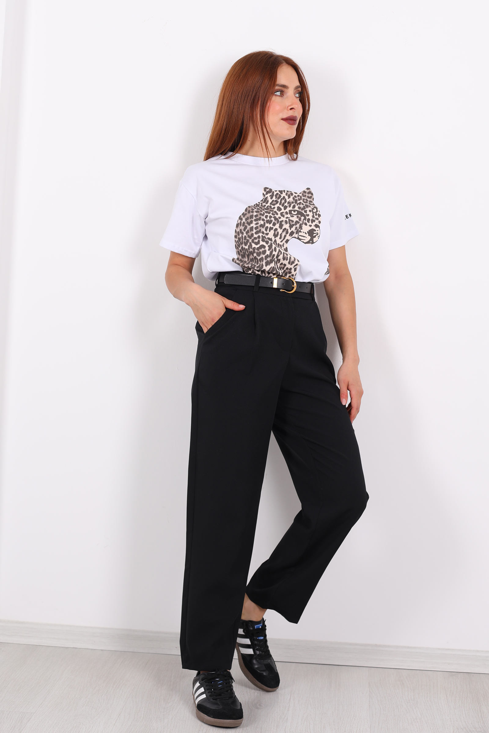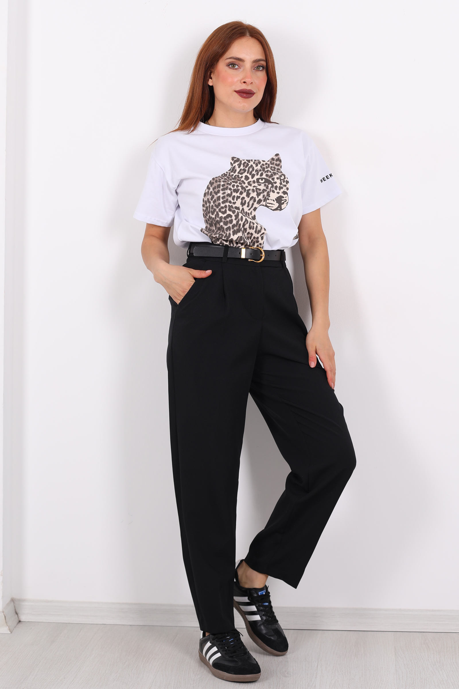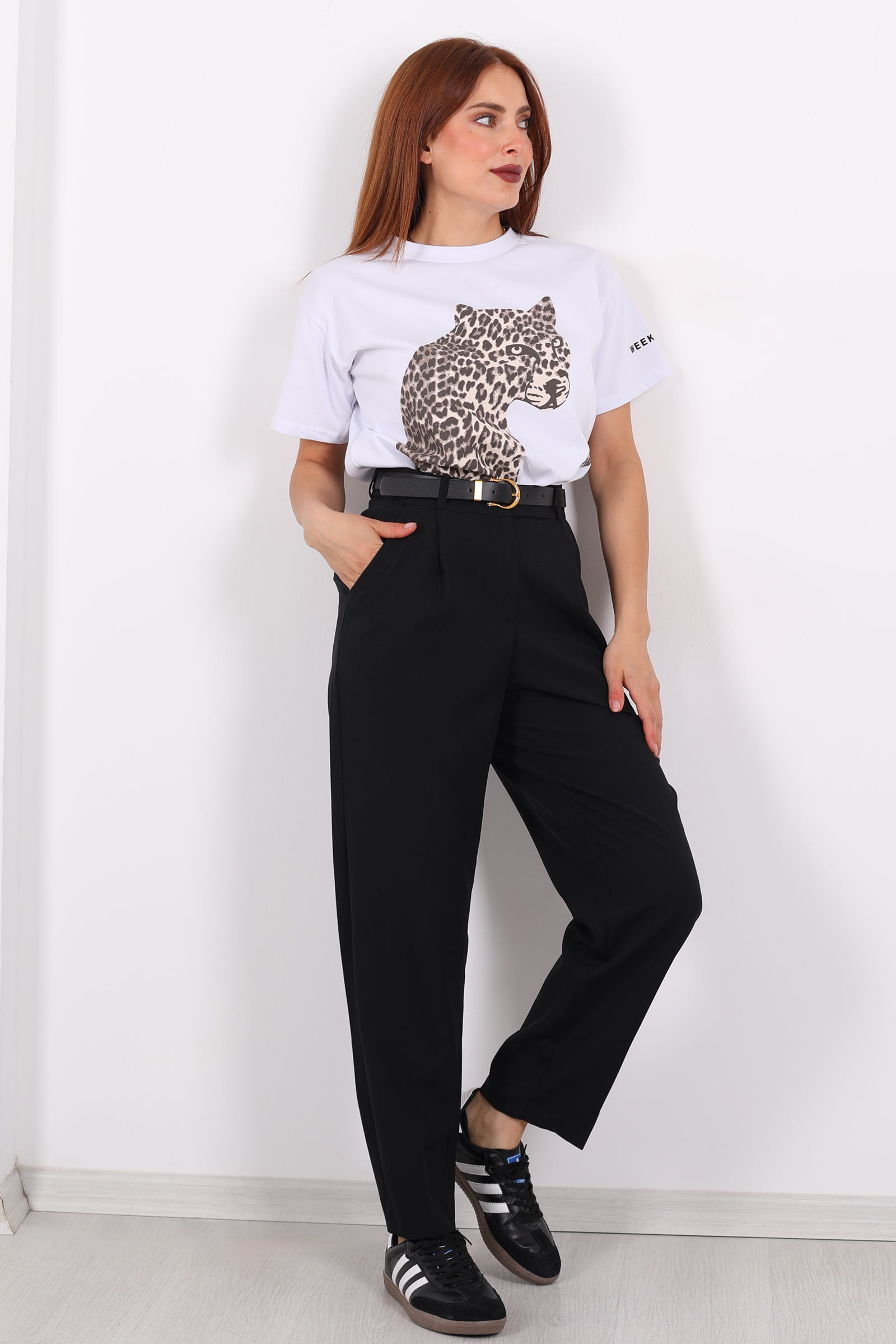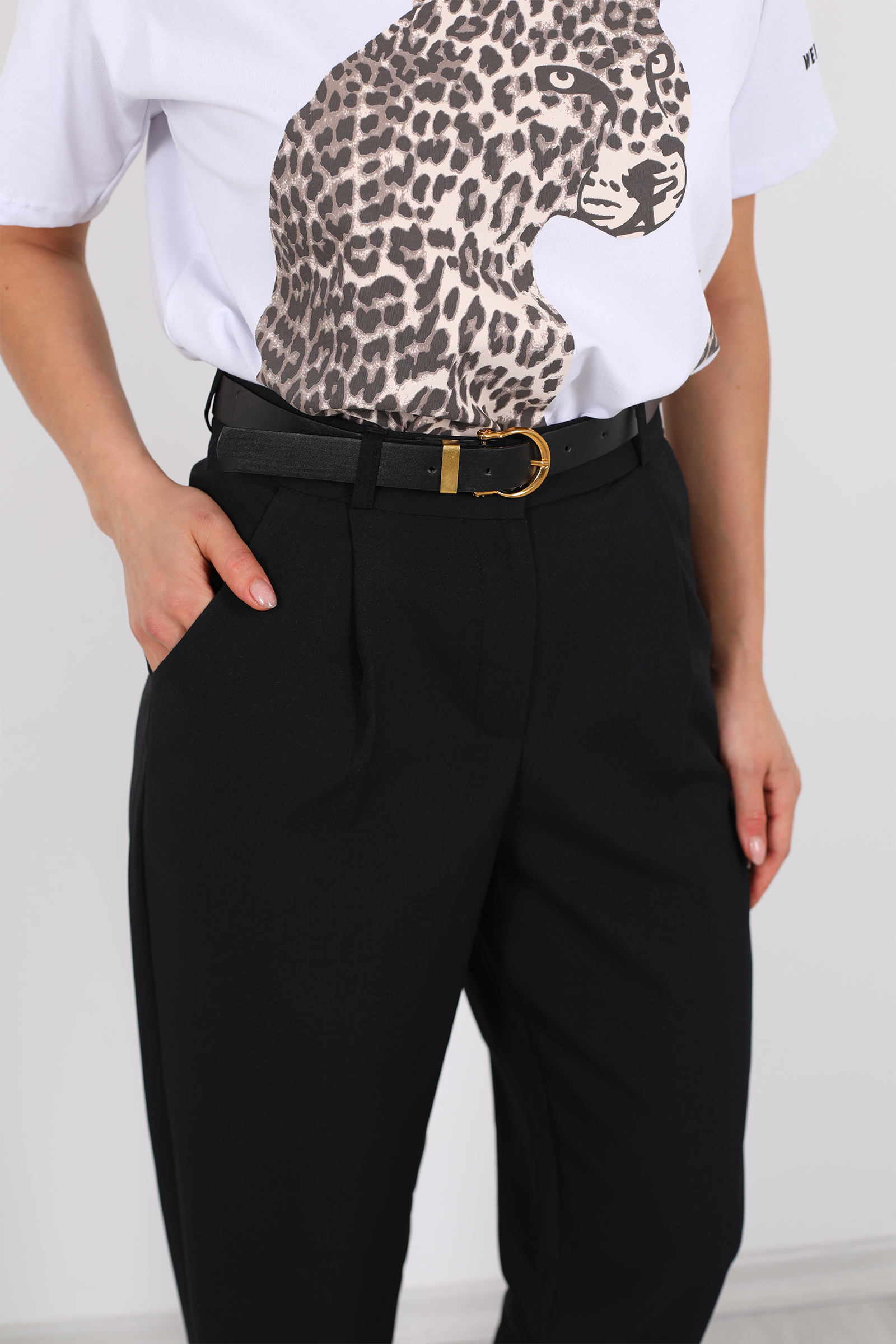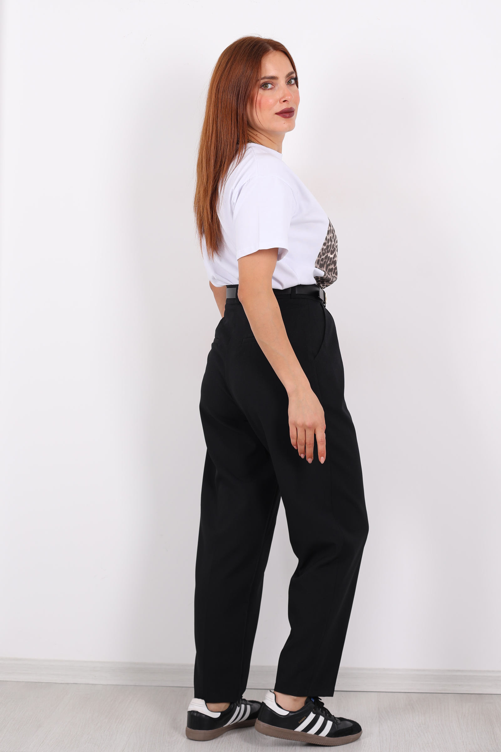 Stil ile konforu ustaca birleştiren bu siyah havuç pantolon, zamansız bir duruş ve dinamik bir siluet sunar. Belinde bulunan kemer detayı, pantolona hem şekil hem fonksiyon kazandırırken; önündeki pile işçiliği, klasik bir sofistikasyonla hacimli ama dengeli bir görünüm yaratır. Yumuşak kumaşı ve özenli kesimi ile rahat bir giyim deneyimi sağlar.