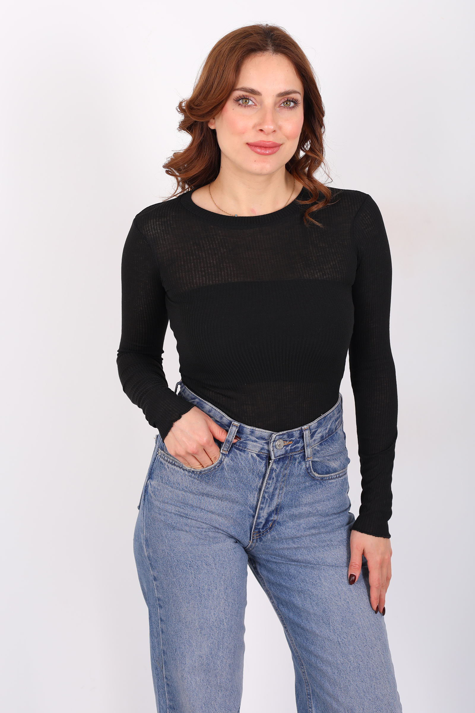 Klasik siyahı modern bir zarafetle yorumlayan bu kendinden fitilli transparan bluz, gardırobunuza sofistike bir dokunuş kazandırır. İnce fitilli örgü detayları, transparan kumaşla birleşerek bluzda farklı bir doku oyunu oluşturur hafif ve nefes alabilir yapısı ile hem gündelik hem de özel kombinlerde havadar, zarif bir his sunar.Bu siyah transparan model, feminen silueti öne çıkarırken katmanlı kombinler için ideal bir temel sağlar. Dilersen sade bir içlik ile günlük şıklık yaratabilir, dilersen şık bir bralette ile akşam stilini güçlendirebilirsin. Jean pantolonlardan kumaş eteklere kadar farklı alt parçalarla etkileyici kontrastlar oluşturmak çok kolay. Minimal detayların güçlü bir stil ifadesine dönüştüğü bir parça olarak öne çıkar.
