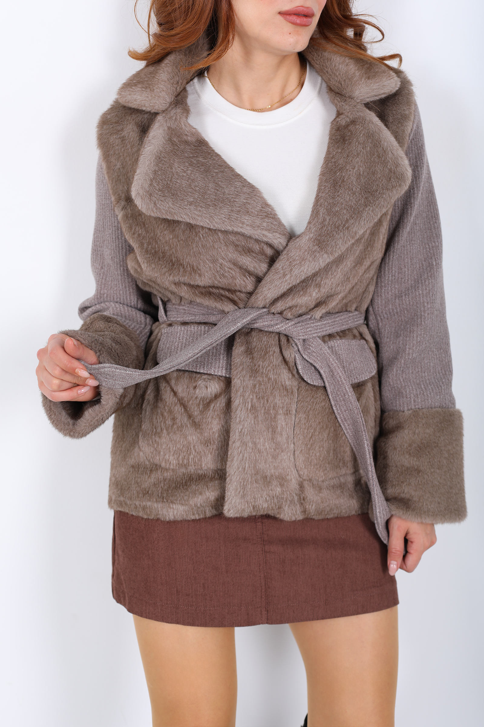 Kolları Örgülü Çift Cepli Kahverengi Kadın Lolita Ceket