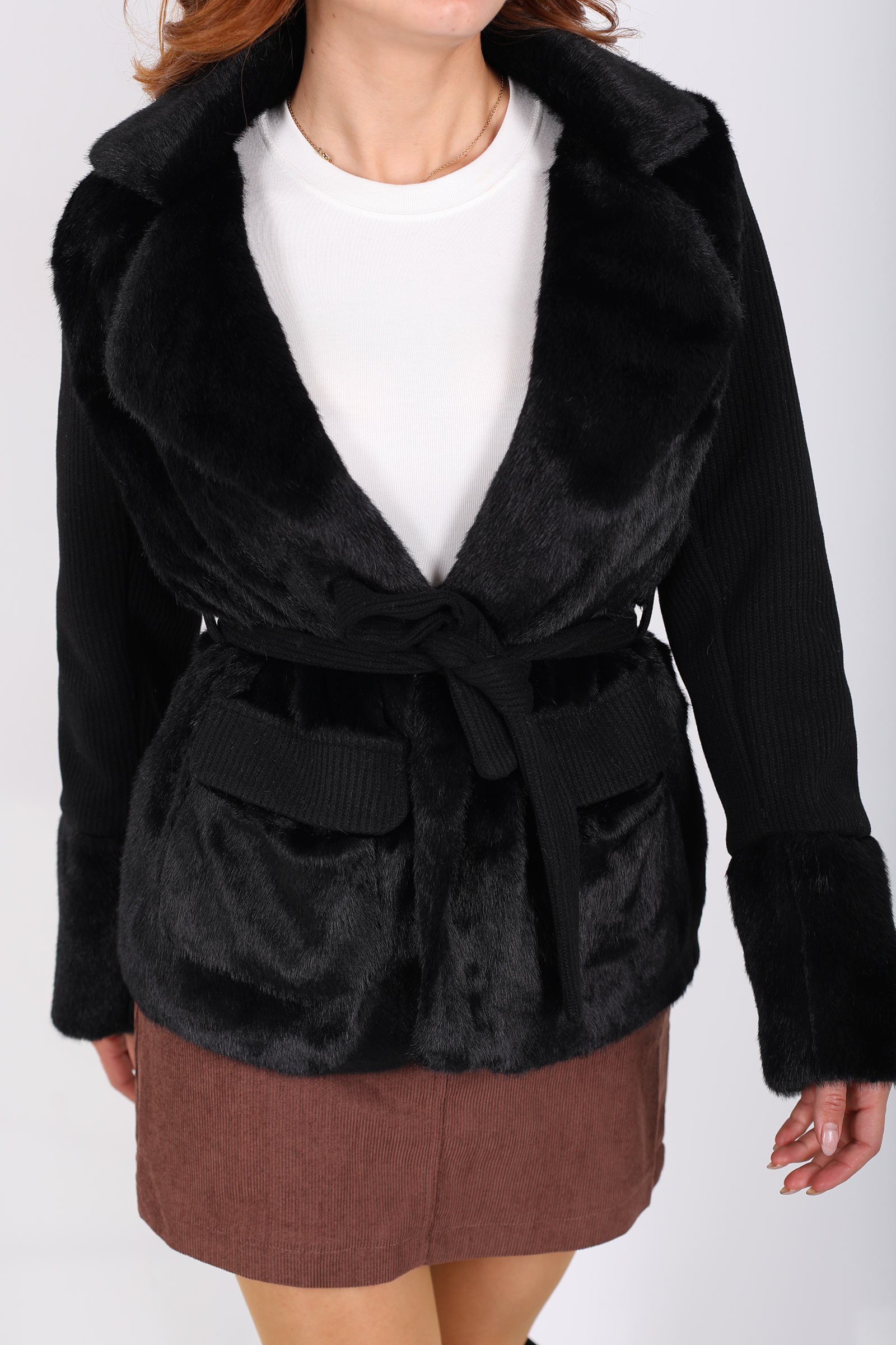 Kolları Örgülü Çift Cepli Siyah Kadın Lolita Ceket