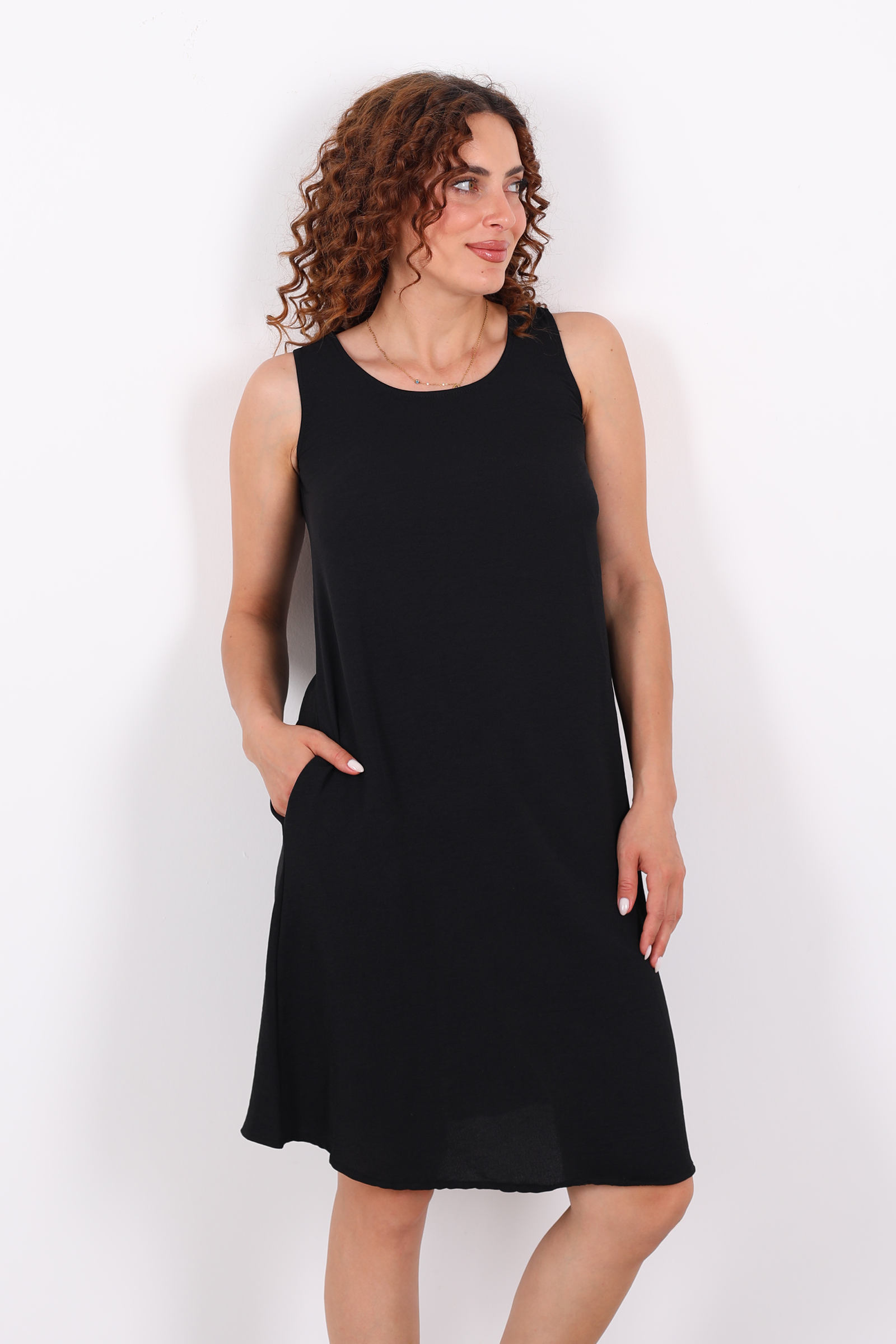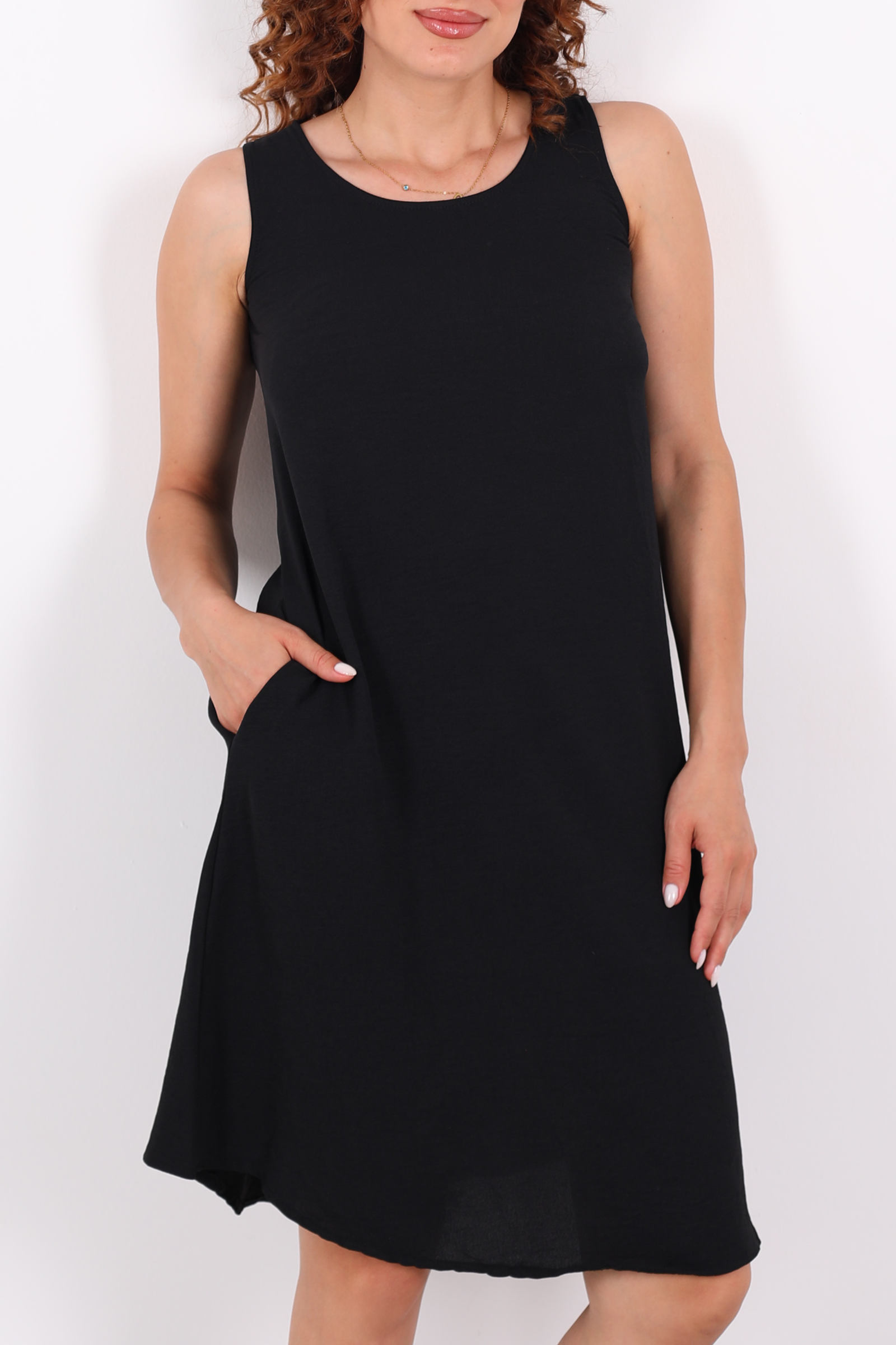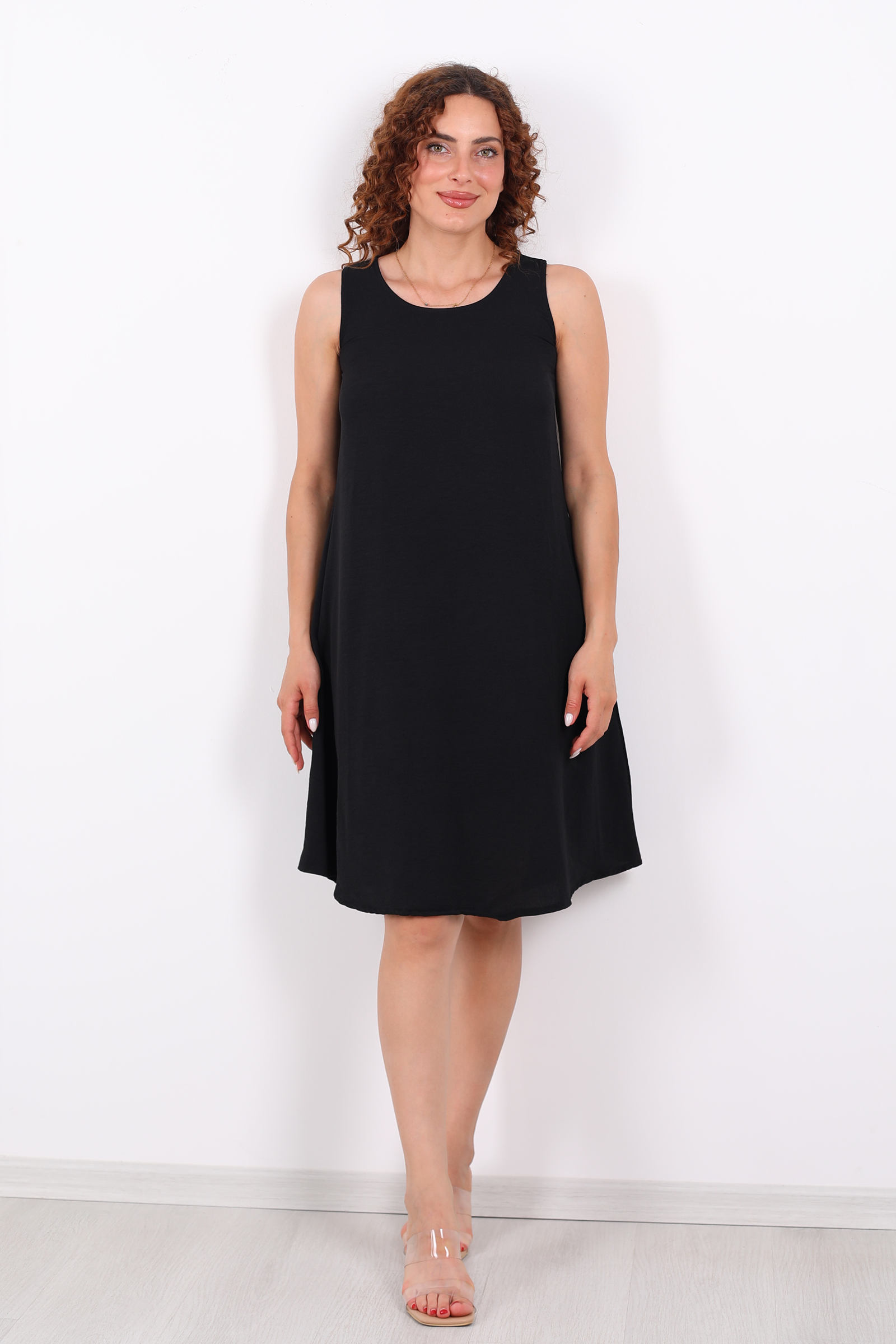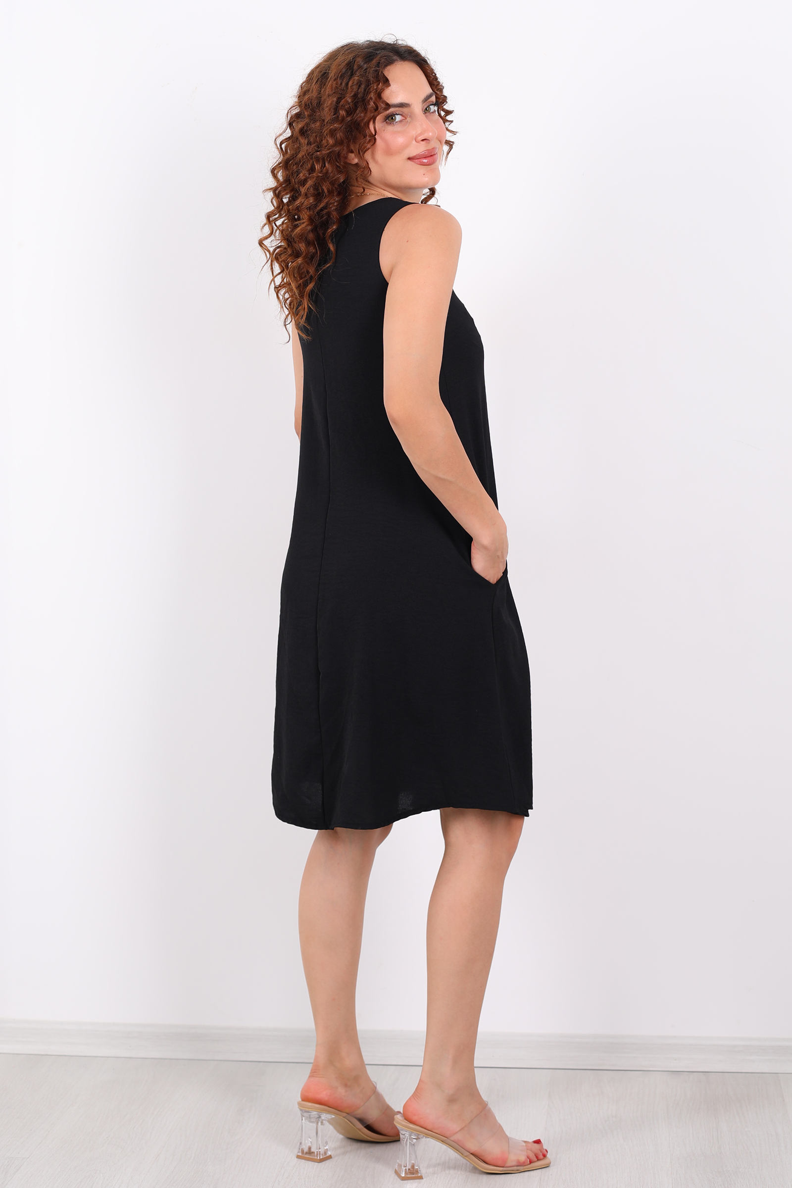 Modern hayata şıklıkla dokunan bir parça: bu siyah, kolsuz midi elbise, Ayrobin kumaşının ferahlatıcı ve zarif dokusuyla buluşuyor. Salaş kesimiyle vücudu sıkmadan kavrayan bu model, göz alıcı sadeliğiyle minimalist stilin yıllara meydan okuyan temsilcisi. Ayrobin kumaş ne pürüzsüz ne de şeffaf taşıyana hem rahatlık hem de güven veriyor