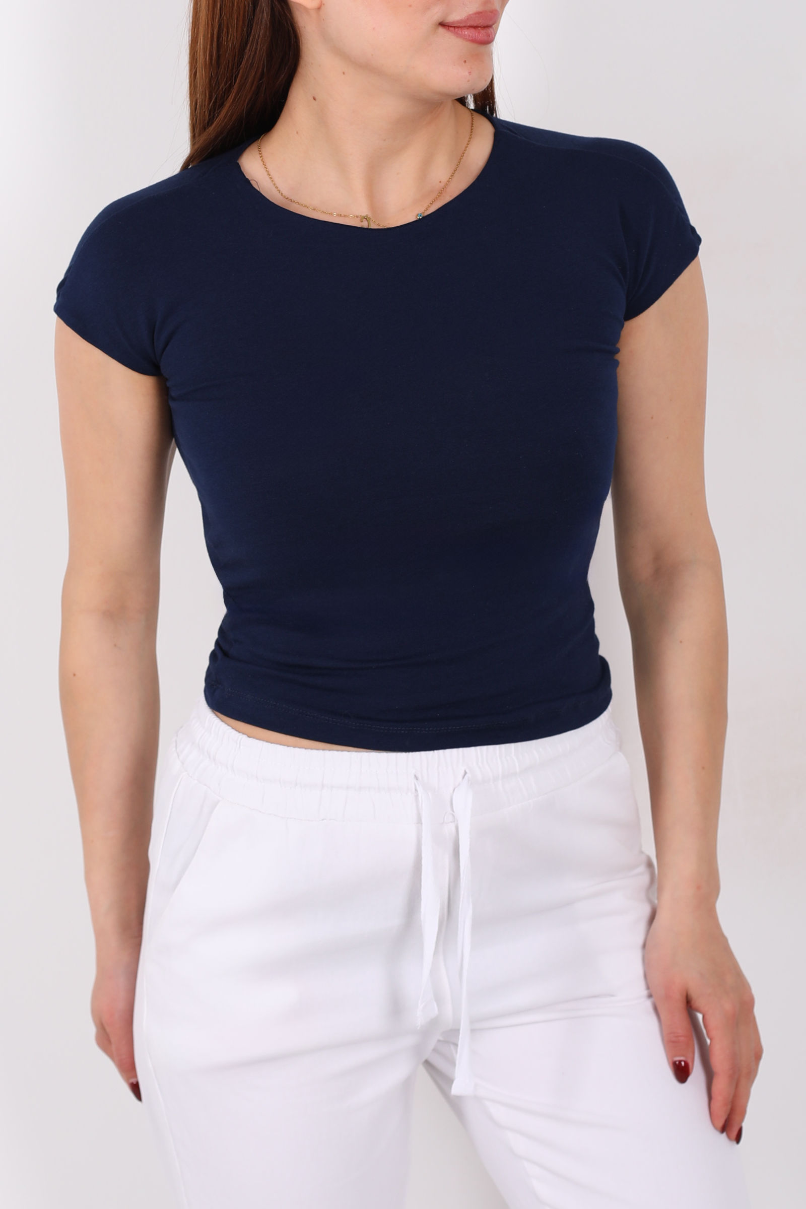 Kolsuz Bisiklet Yaka Kadın Lacivert Basic Body