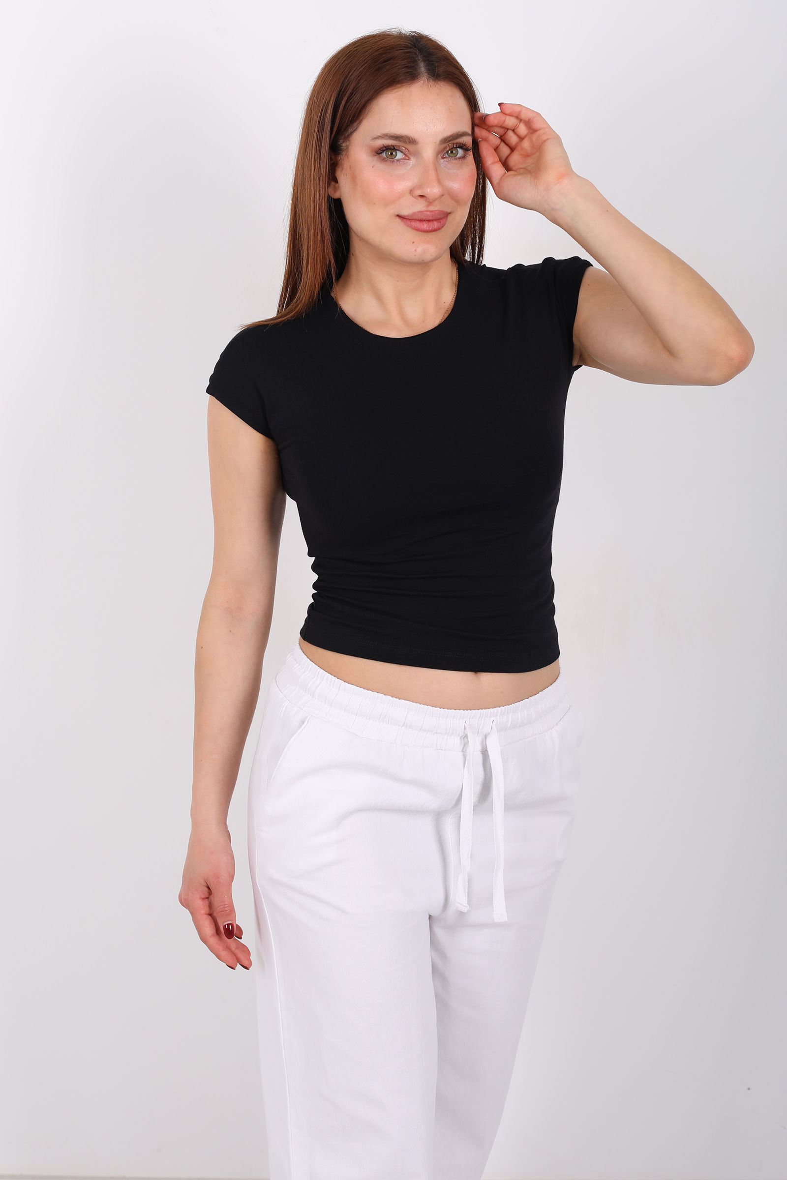 Kolsuz Bisiklet Yaka Kadın Siyah Basic Body