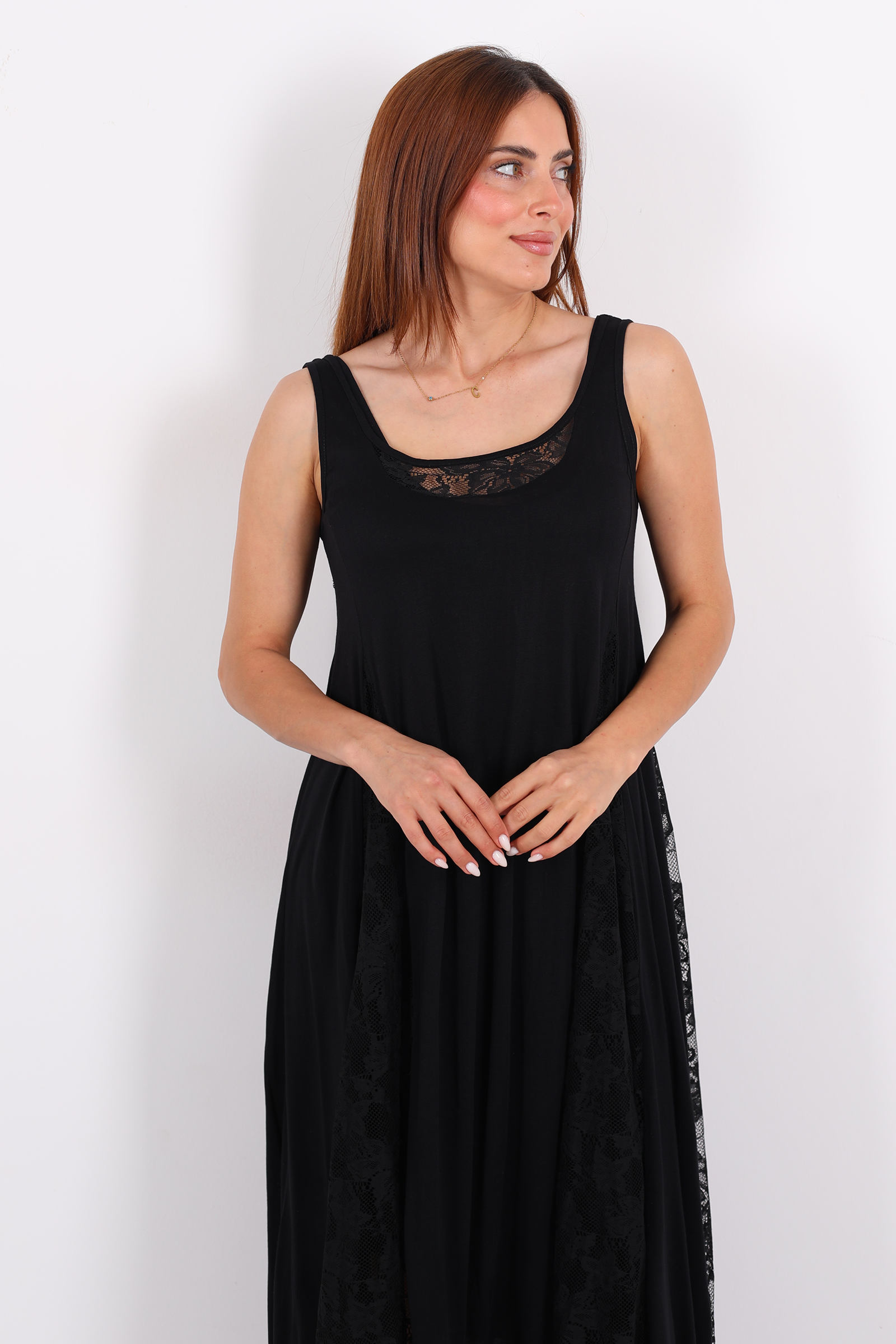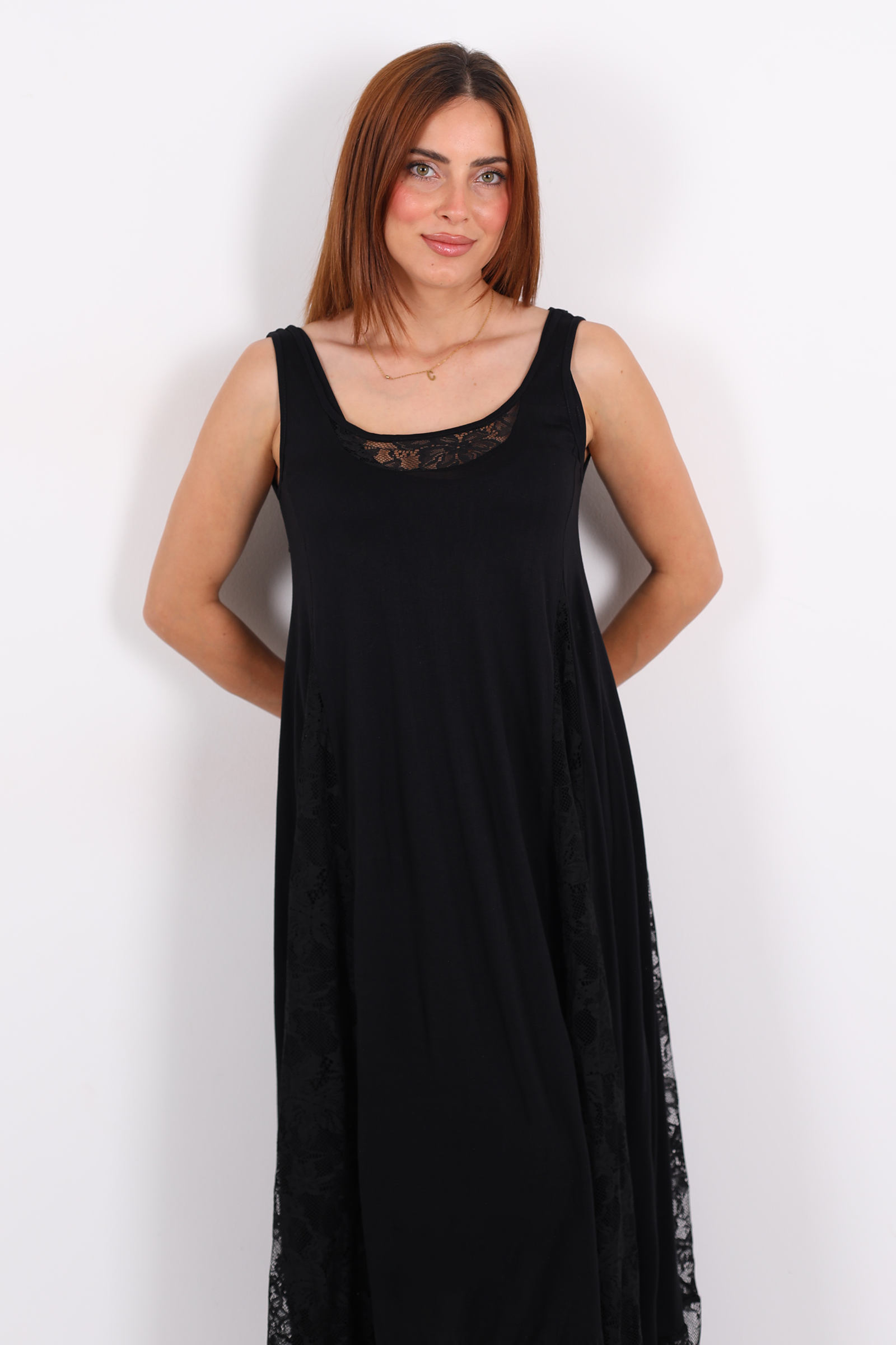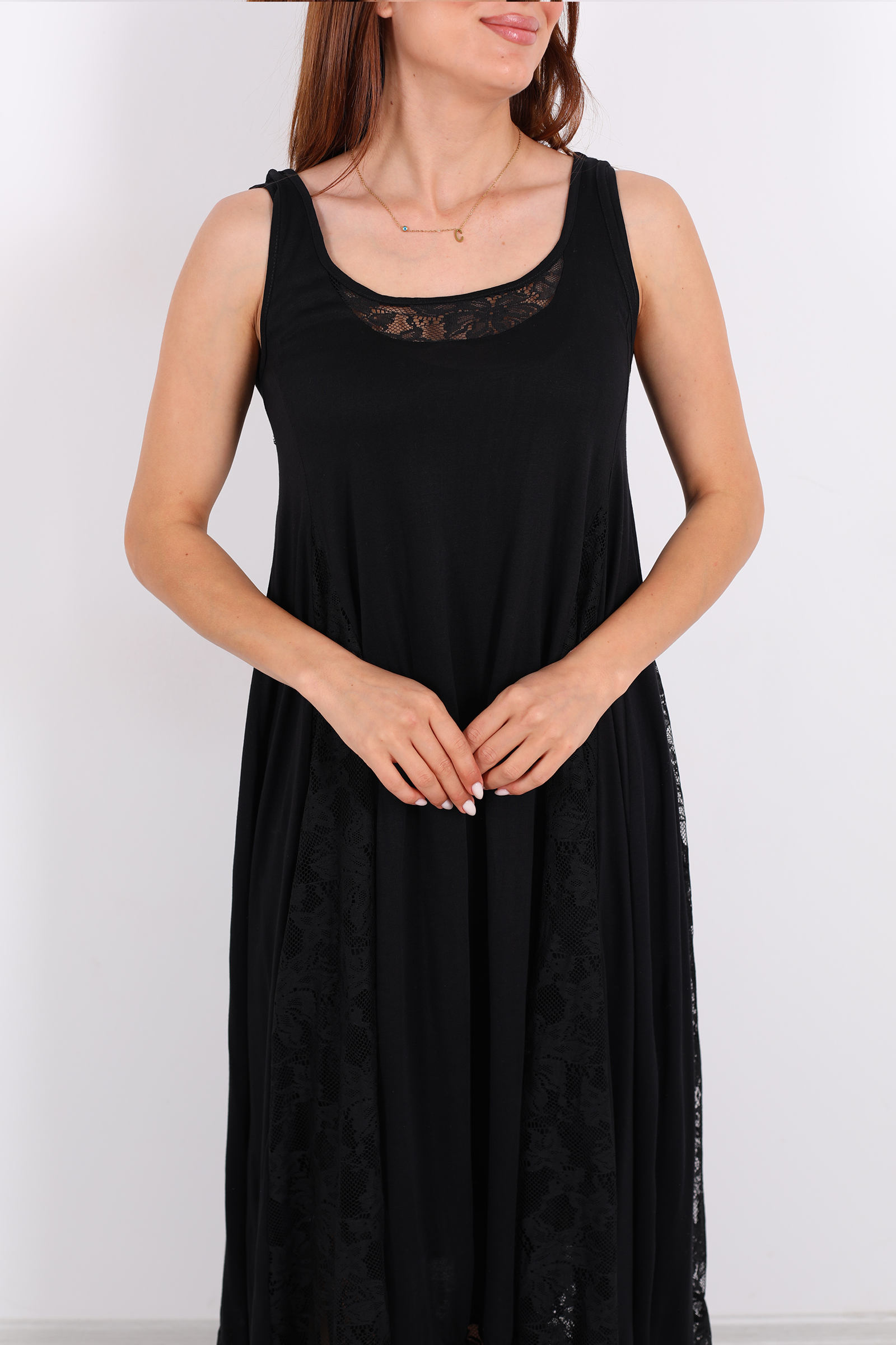 Zarafetin simgesi siyah rengin büyüsü, kolsuz ve ince dantel detaylarla buluşuyor. Astarlı yapısı sayesinde konforlu bir kullanım sunan bu elbise, hem özel davetlerin hem de şık akşamların vazgeçilmezi olacak. İnce işçilikle tasarlanan dantel süslemeleri, feminen dokunuşları öne çıkarırken, kolsuz kesim özgür ve ferah bir hareket alanı sağlıyor. Kendinizi özel hissetmek istediğiniz her an, bu elbise ile ışıldayın.
