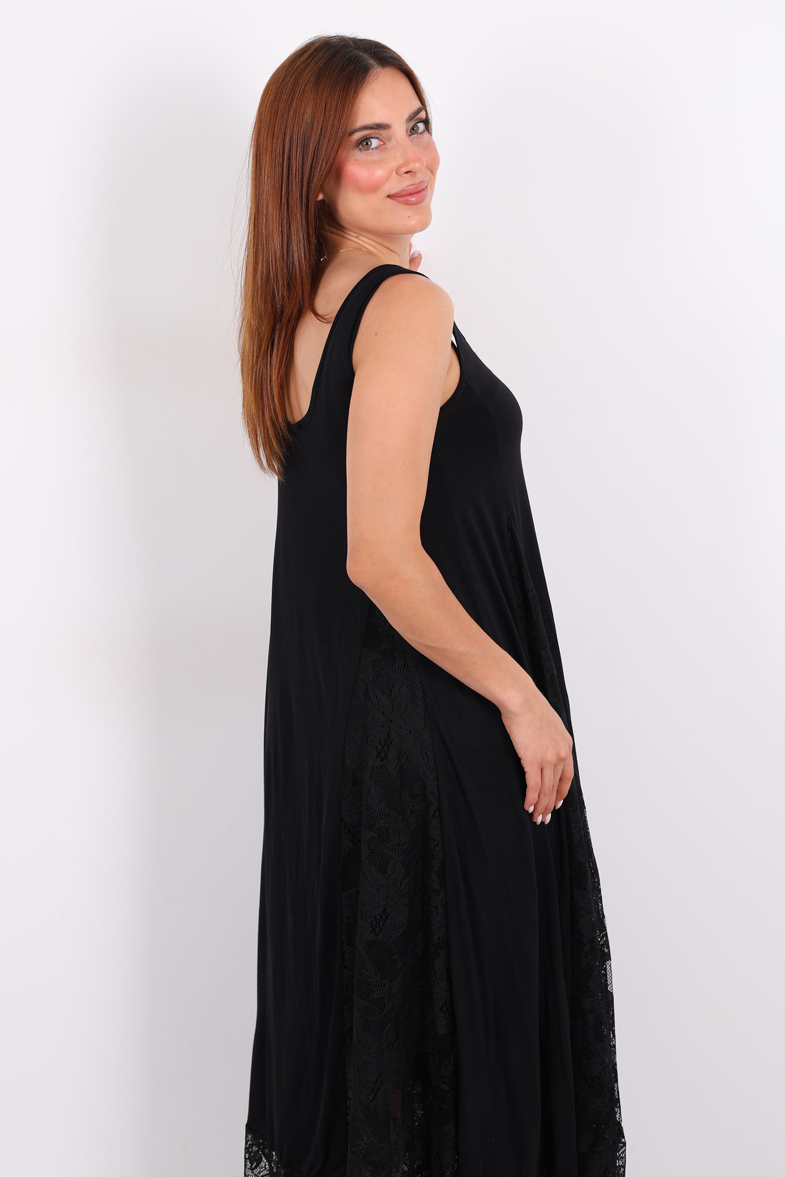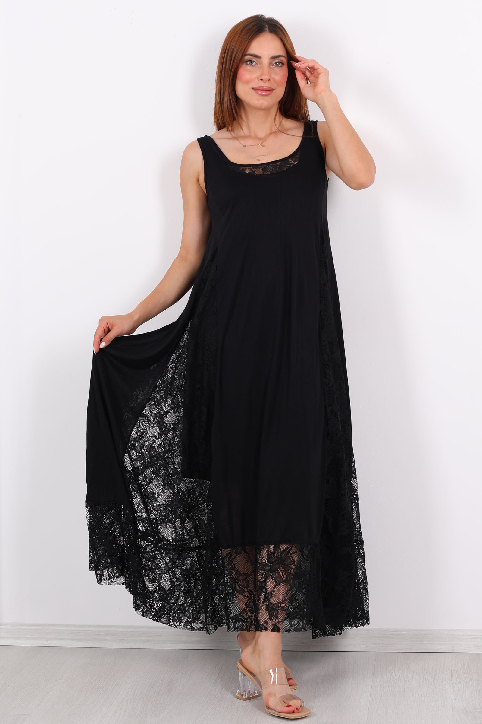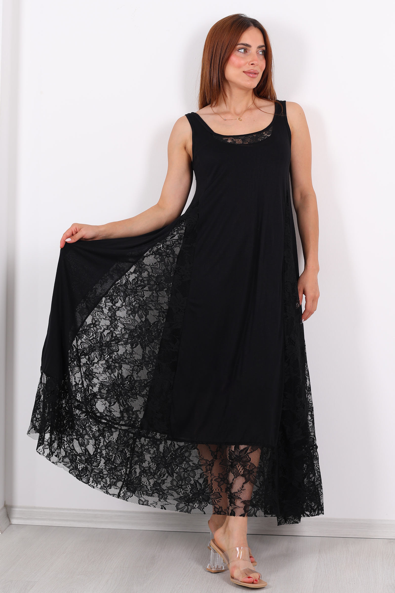 Zarafetin simgesi siyah rengin büyüsü, kolsuz ve ince dantel detaylarla buluşuyor. Astarlı yapısı sayesinde konforlu bir kullanım sunan bu elbise, hem özel davetlerin hem de şık akşamların vazgeçilmezi olacak. İnce işçilikle tasarlanan dantel süslemeleri, feminen dokunuşları öne çıkarırken, kolsuz kesim özgür ve ferah bir hareket alanı sağlıyor. Kendinizi özel hissetmek istediğiniz her an, bu elbise ile ışıldayın.
