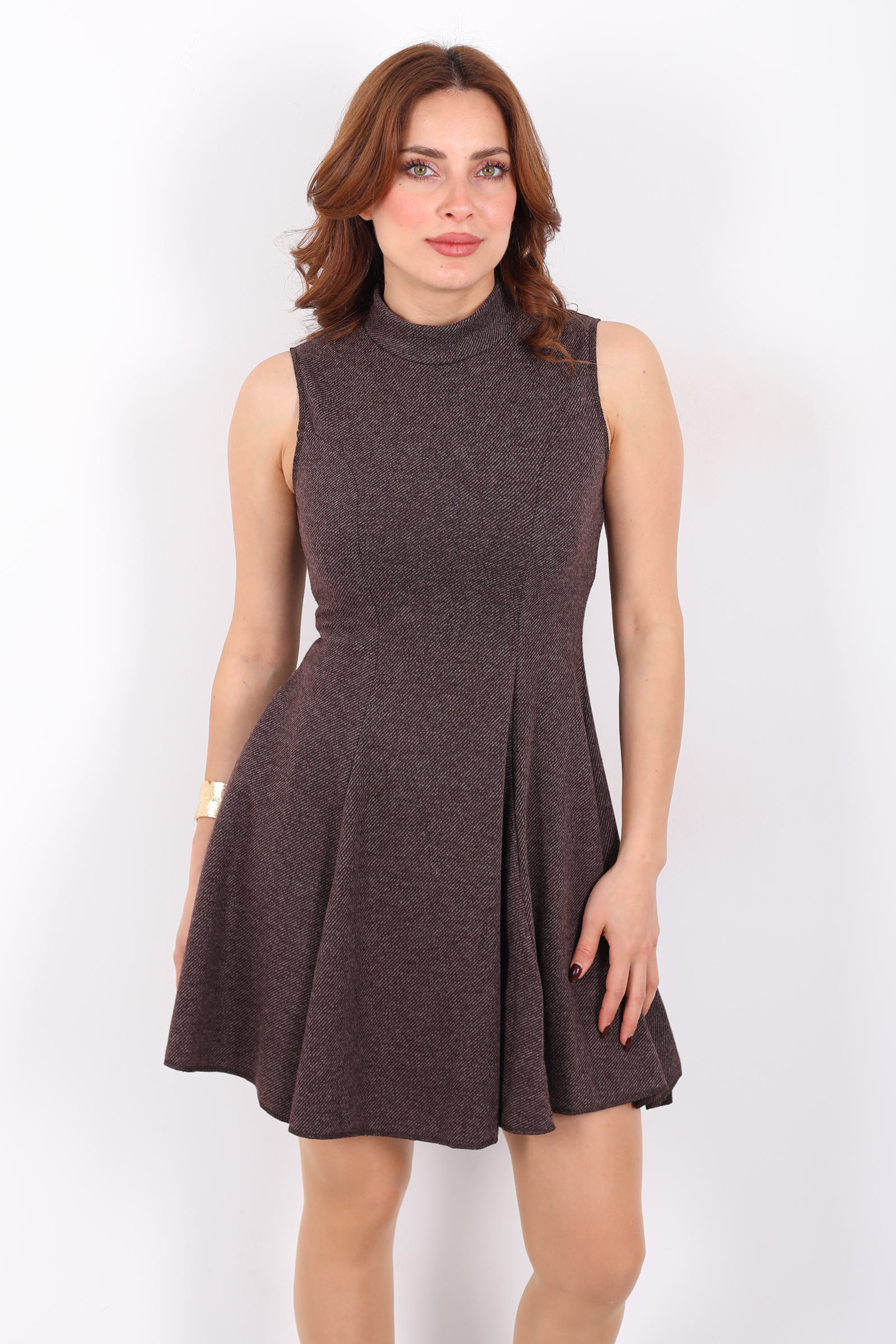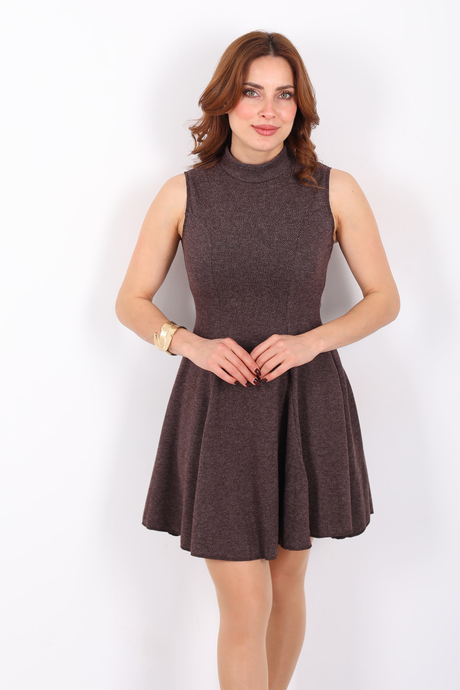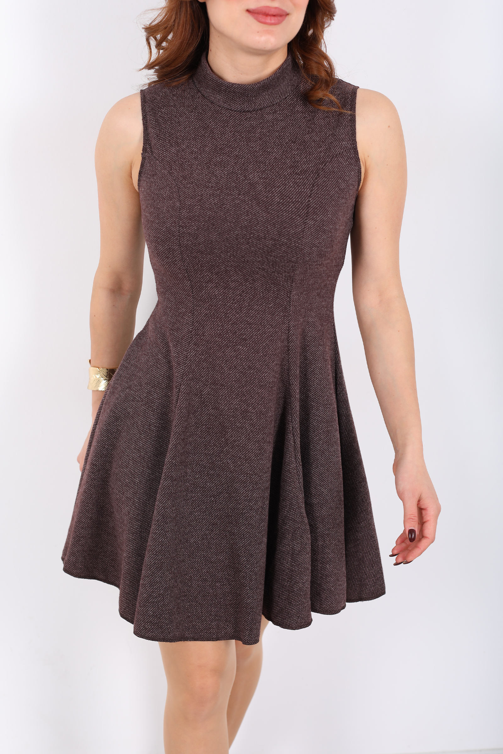 Sıcak tonlarla dolu bir stille fark yaratmak isteyenler için tasarlanmış bu acı kahve kolsuz elbise, zarif fırfır detaylarıyla feminen bir ifade sunar. Kolsuz kesimi sayesinde hareket özgürlüğünüzü kısıtlamadan günlük rahatlığınızı korur; aynı zamanda dik yaka duruşu net bir siluet sağlar. Fırfırlı etek ucunun akıcı yapısı, her adımda elbiseye hafif bir ritim katarak sade parçayı dinamik bir hale dönüştürür.