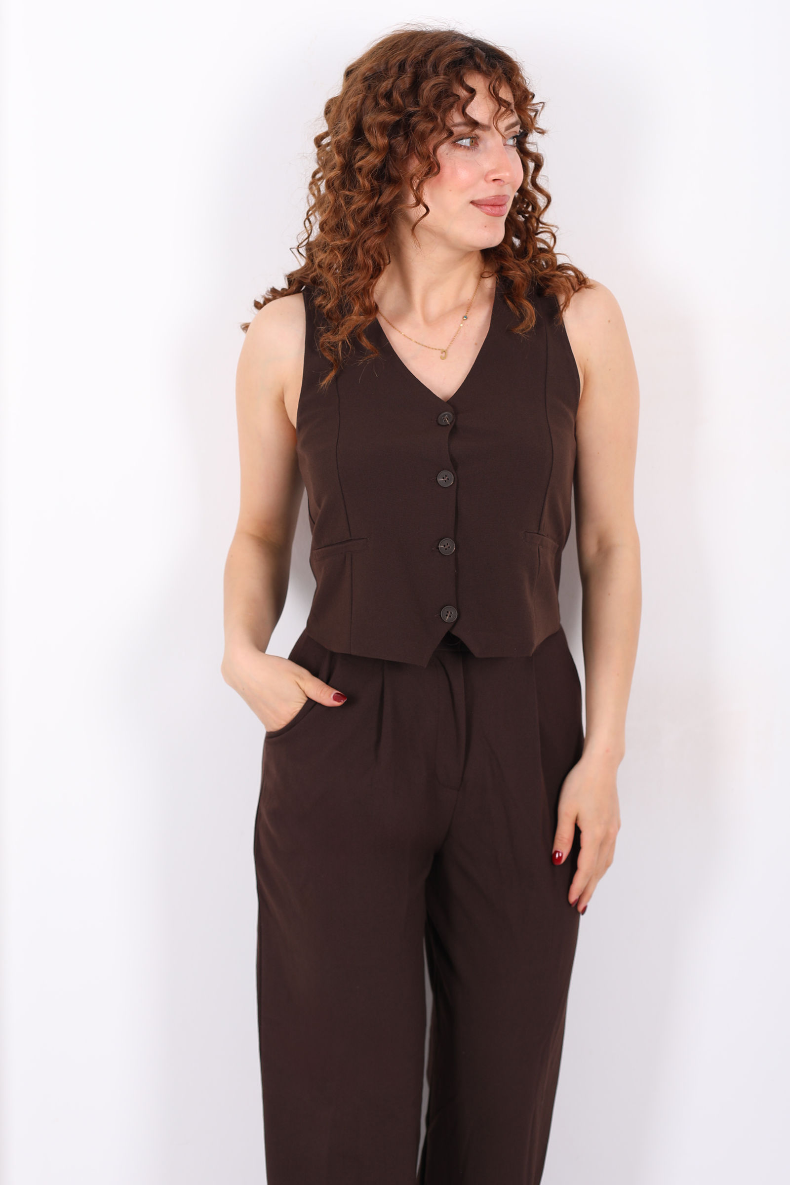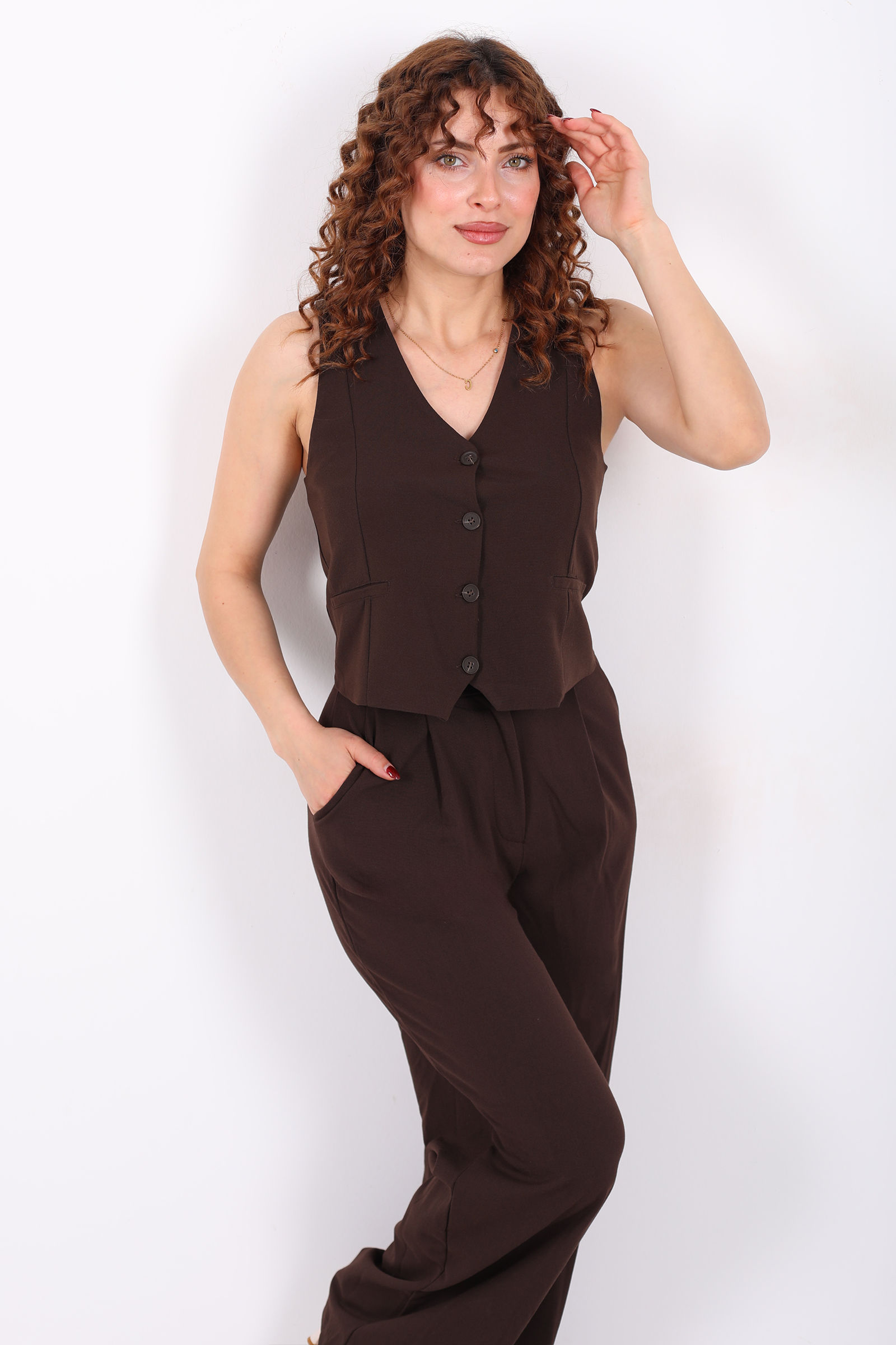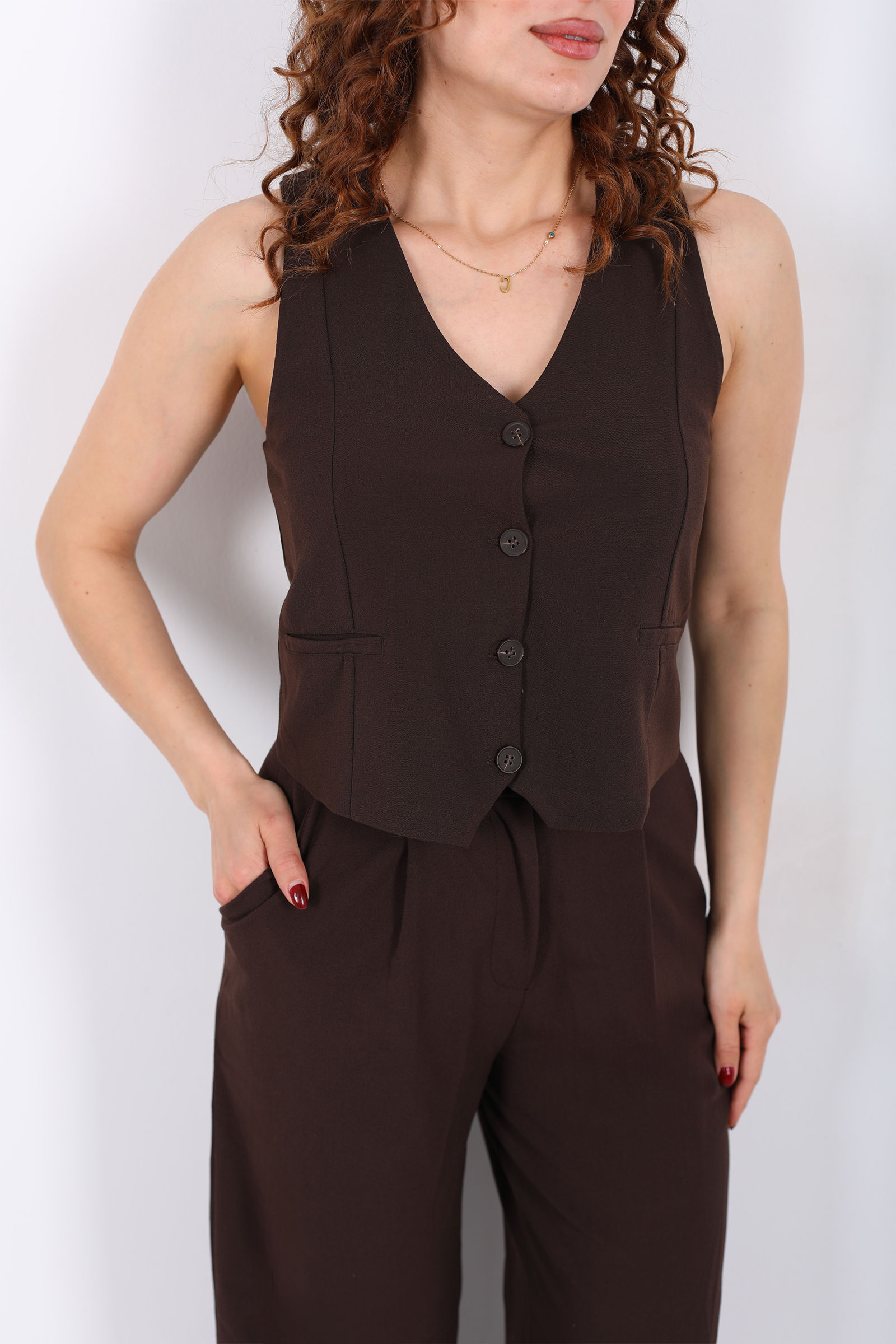 Kolsuz Fleto Cepli Kahverengi Kadın Yelek