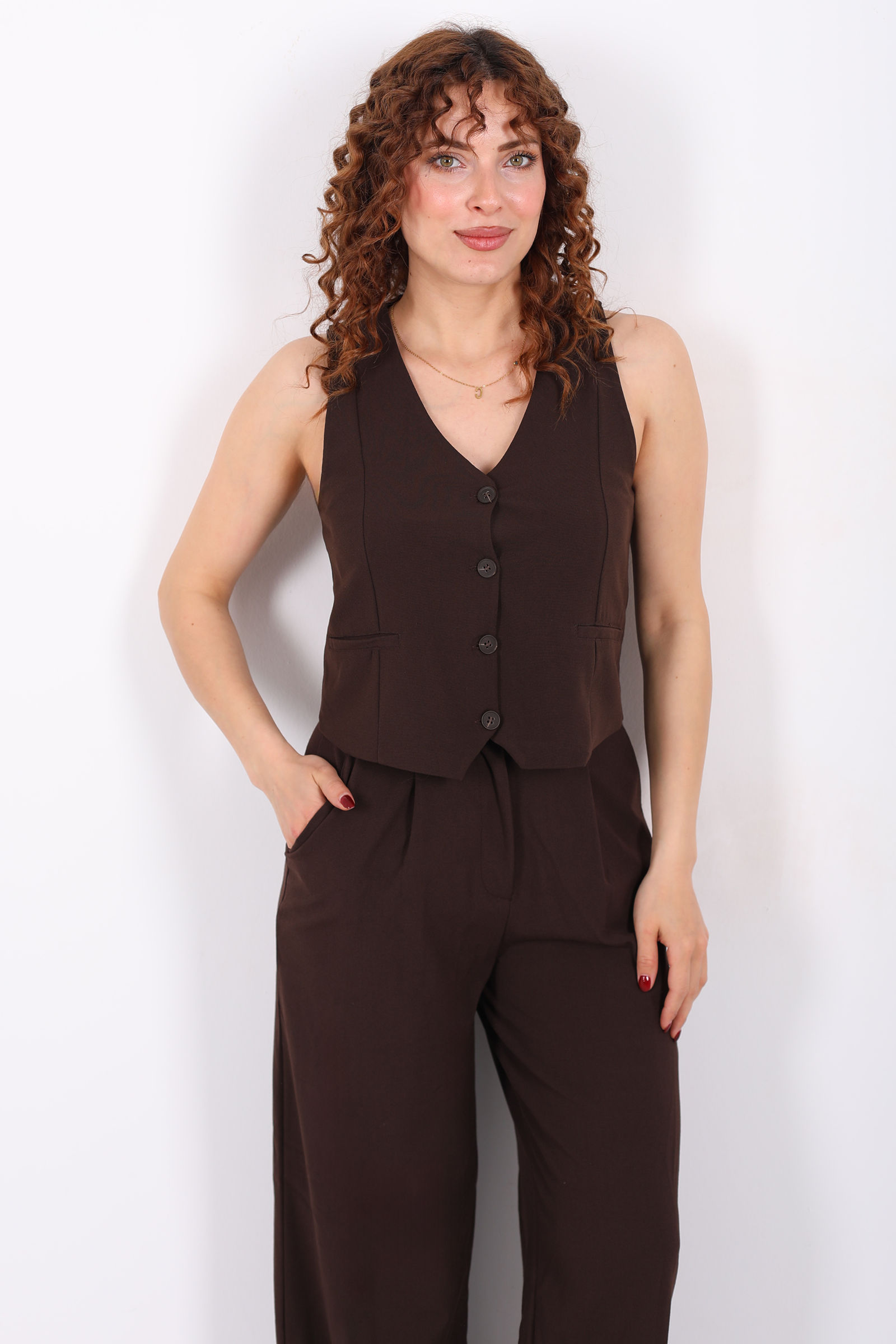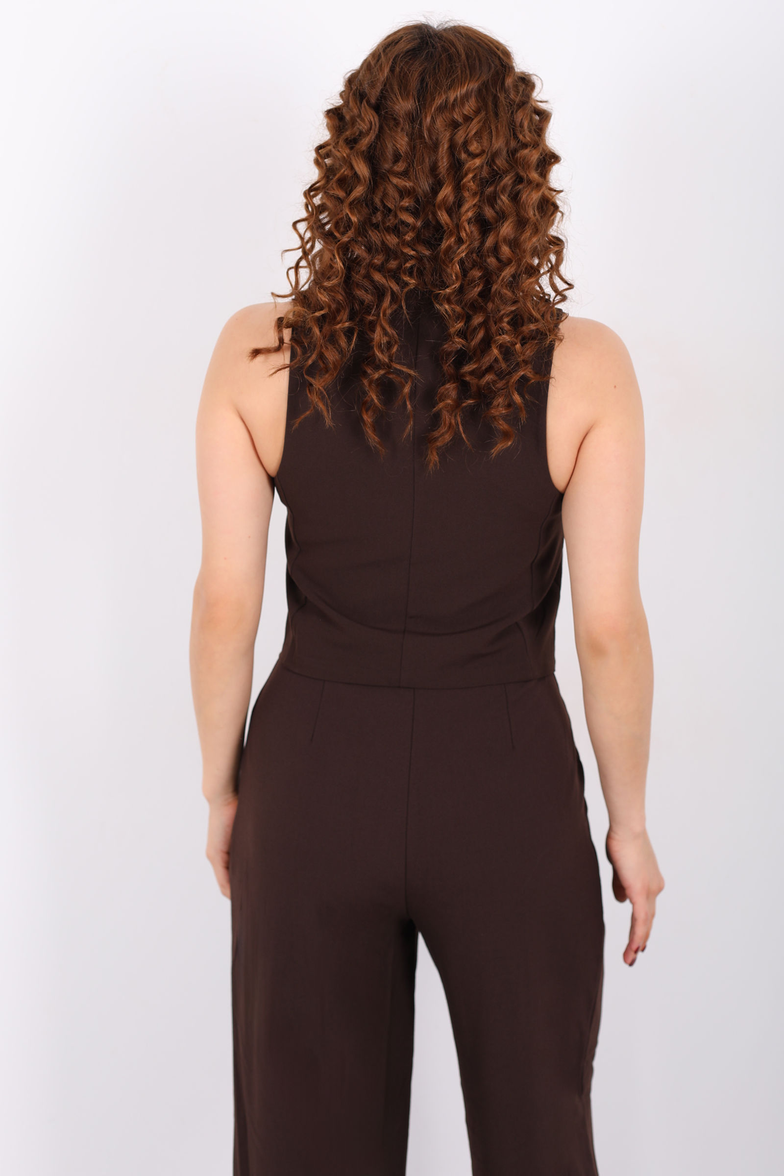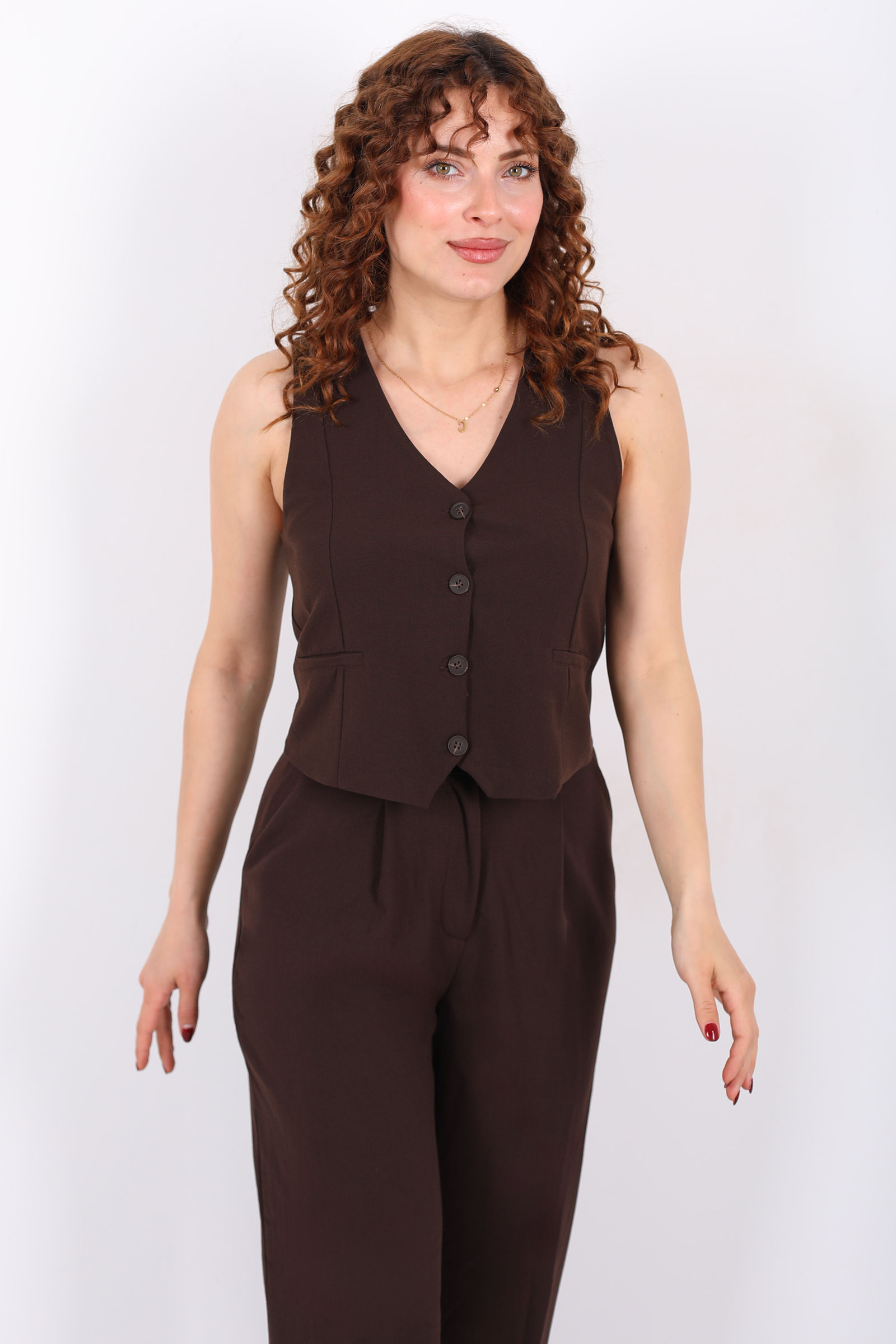 Kolsuz Fleto Cepli Kahverengi Kadın Yelek