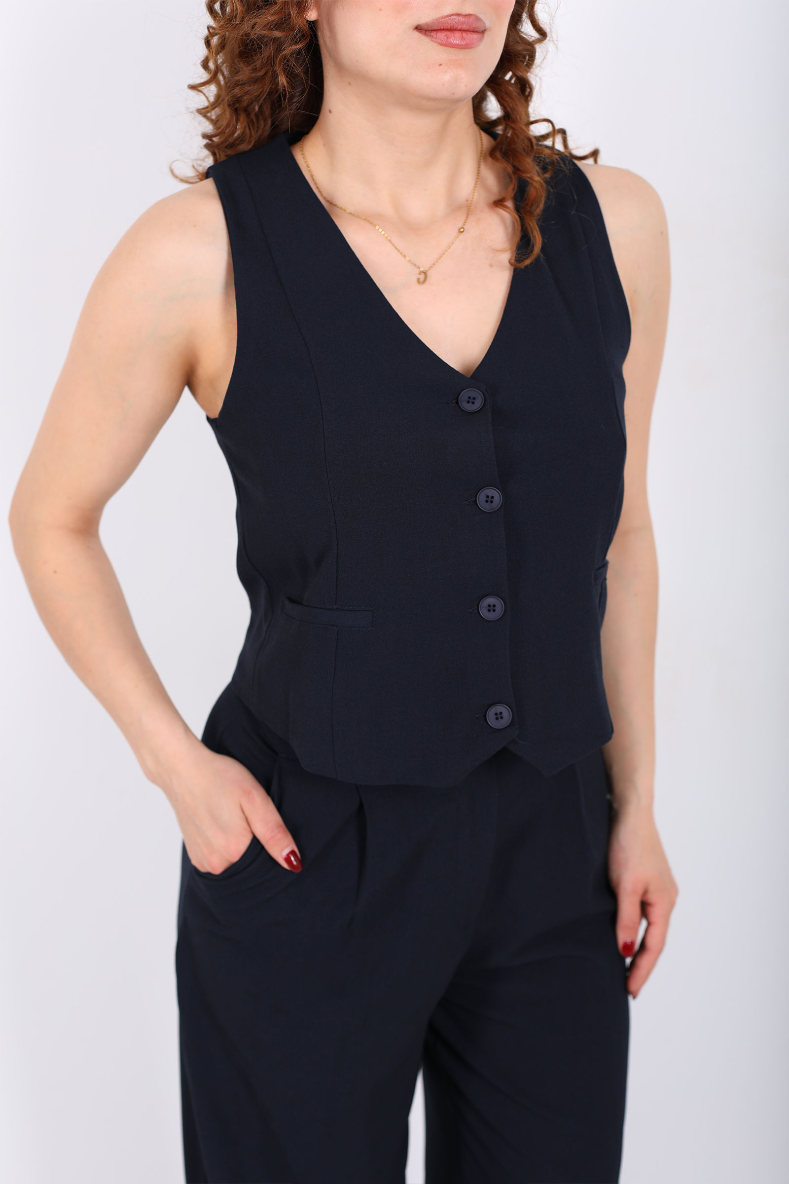 Kolsuz Fleto Cepli Lacivert Kadın Yelek
