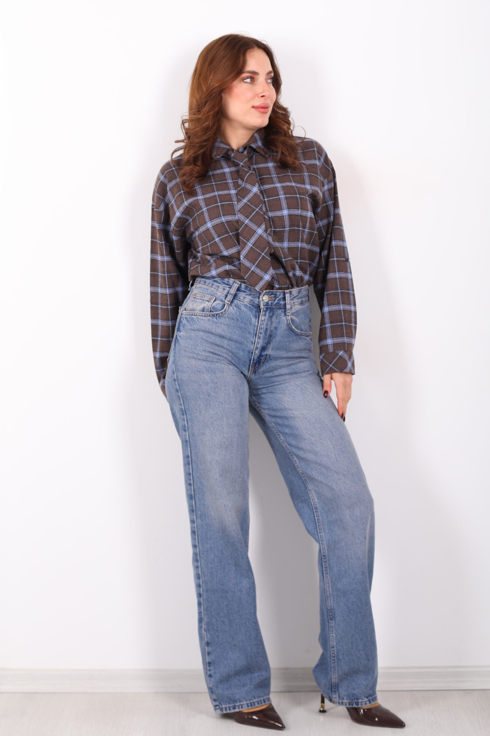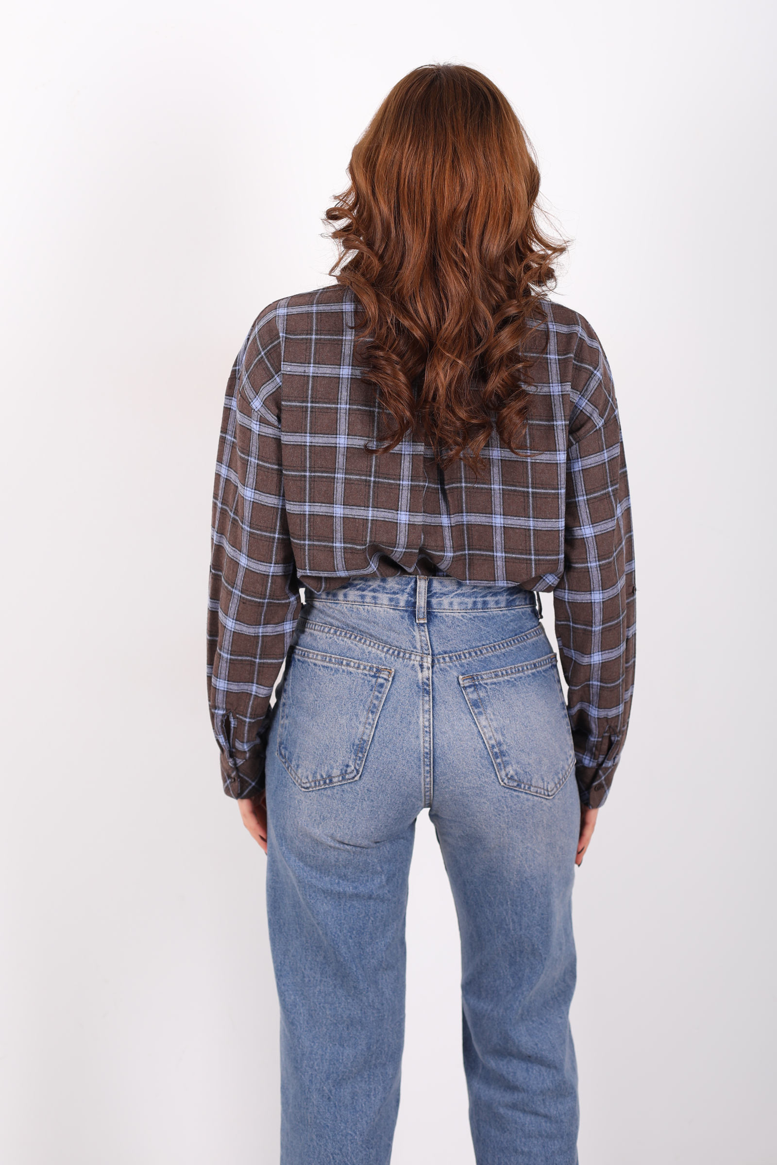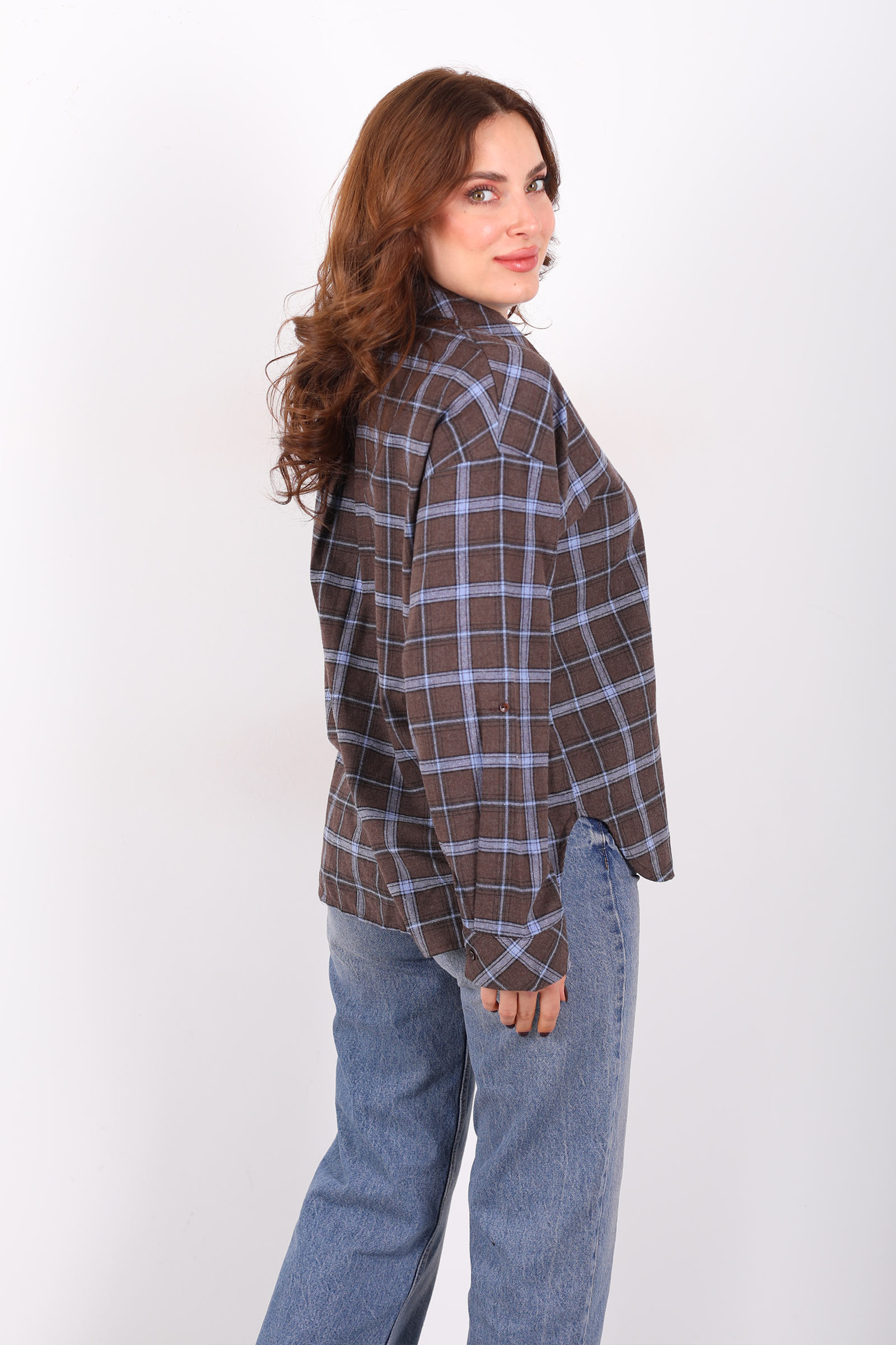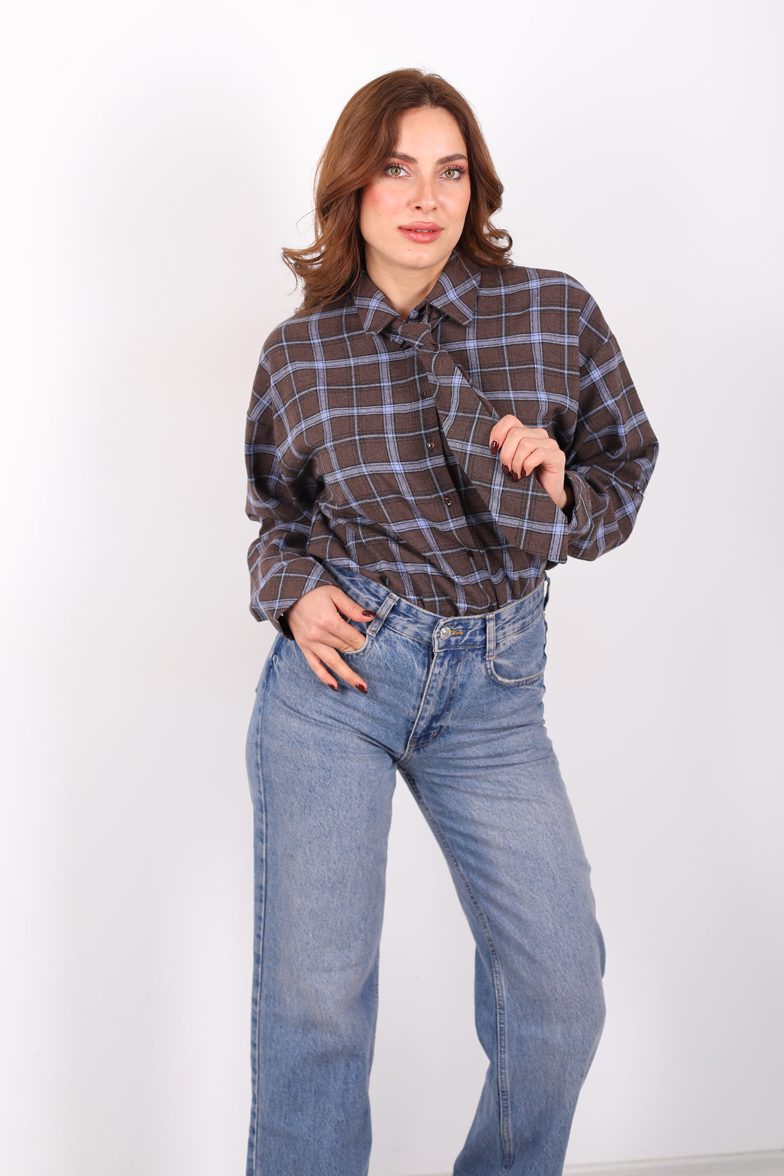 Kravatlı Ekose Kahverengi Kadın Gömlek