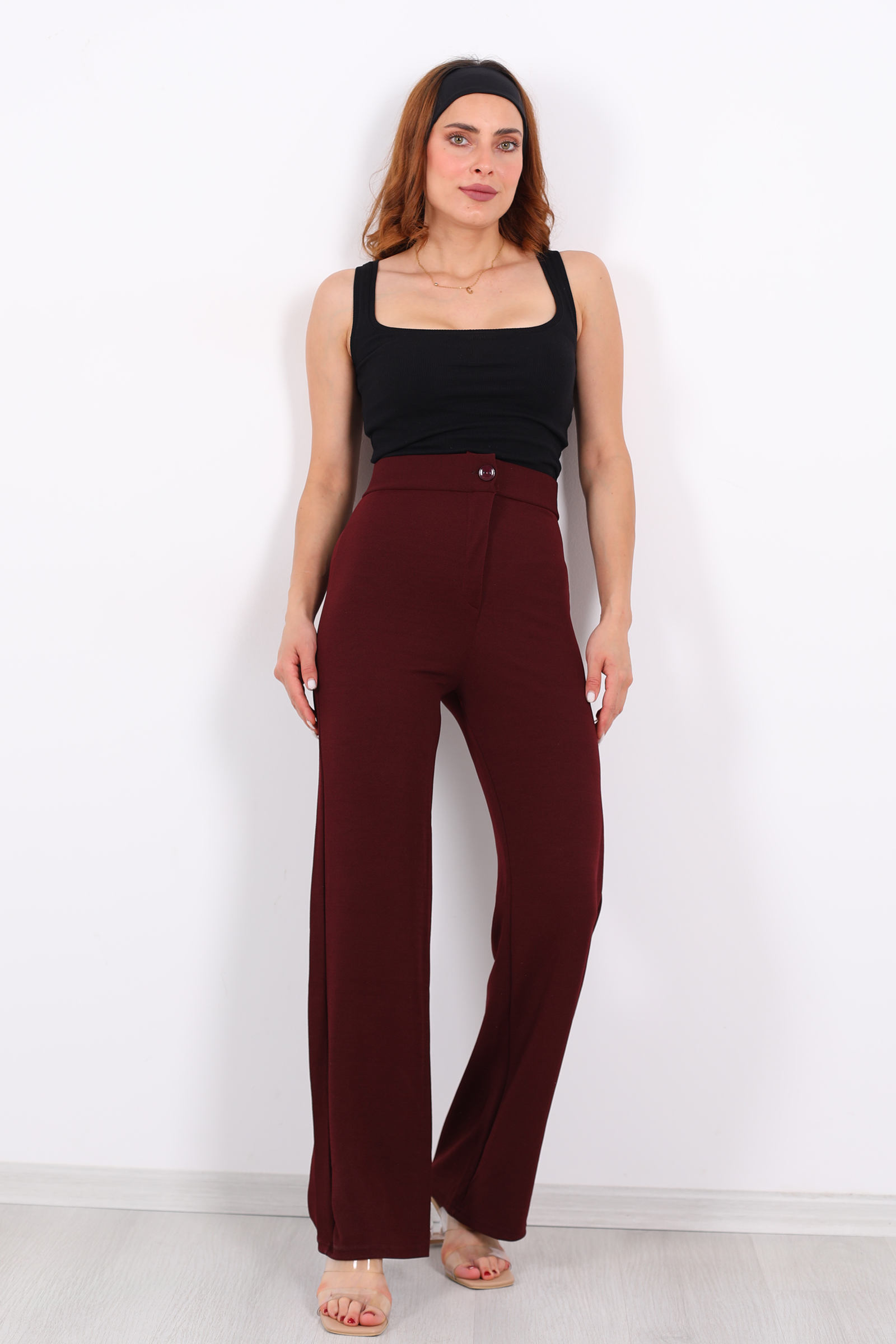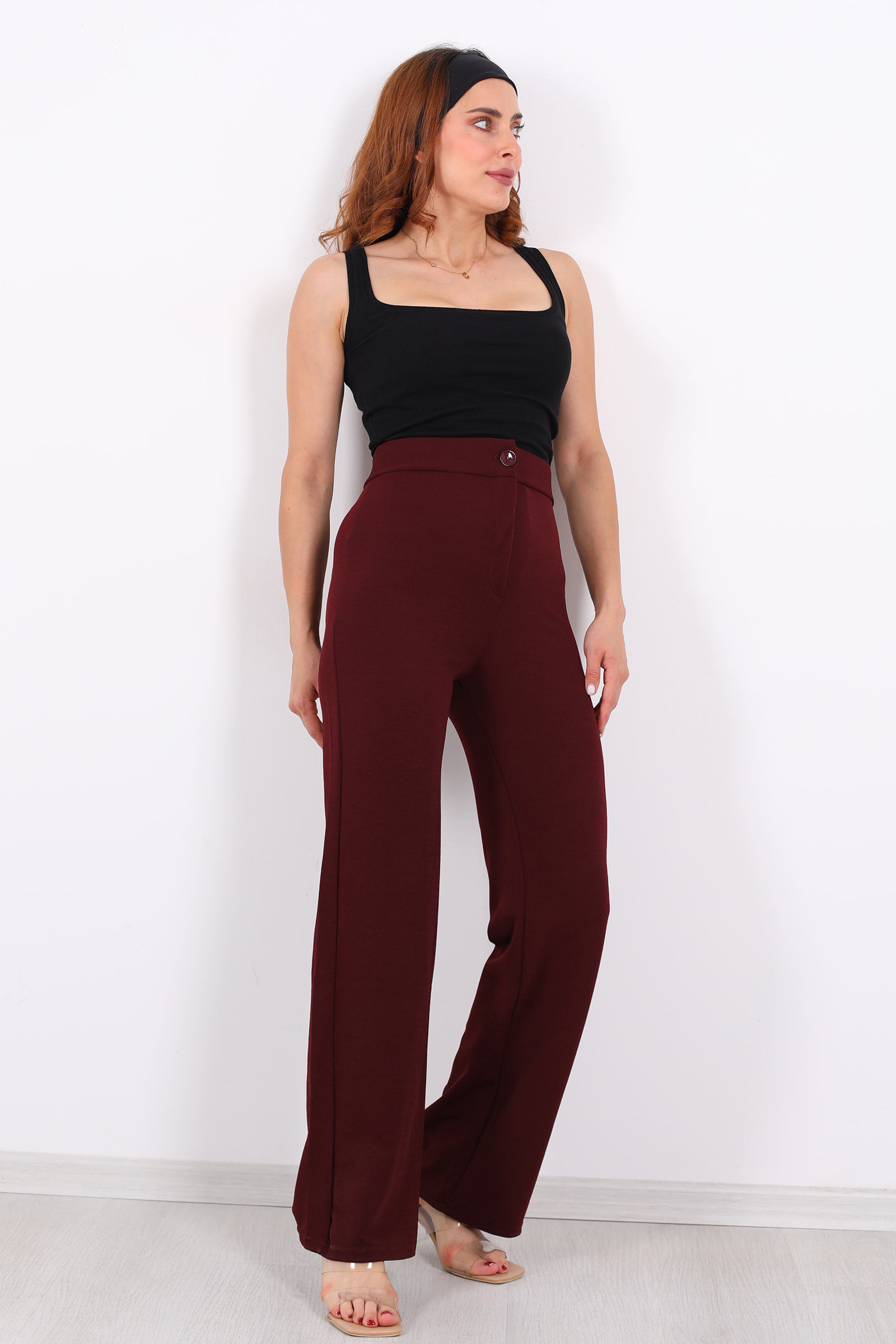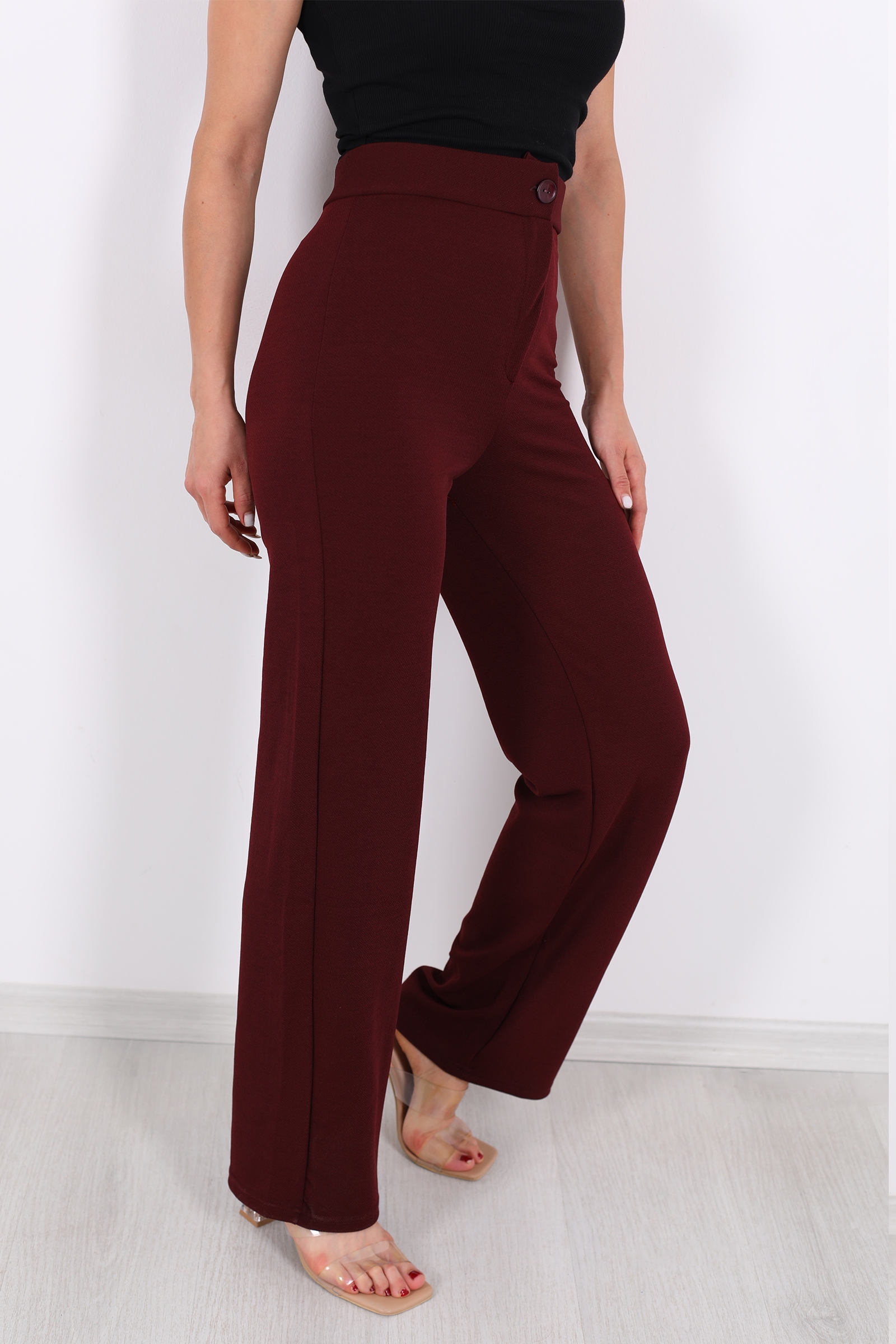 Zarafetin koyu tonu ile rahatlığı birleştiren bu bordo krep palazzo pantolon, gardırobunuza sofistike bir dokunuş katıyor. Etek gibi akan geniş palazzo paçalar, her adımda akışkan ve özgür bir duruş sağlarken, krep kumaşın sürtünmesiz ve hafif dokusu konforu ön planda tutar. Pasta‑bordo tonu, koyu tonlarla derin uyum yakalarken açık tonlarla da harika kontrast oluşturur.