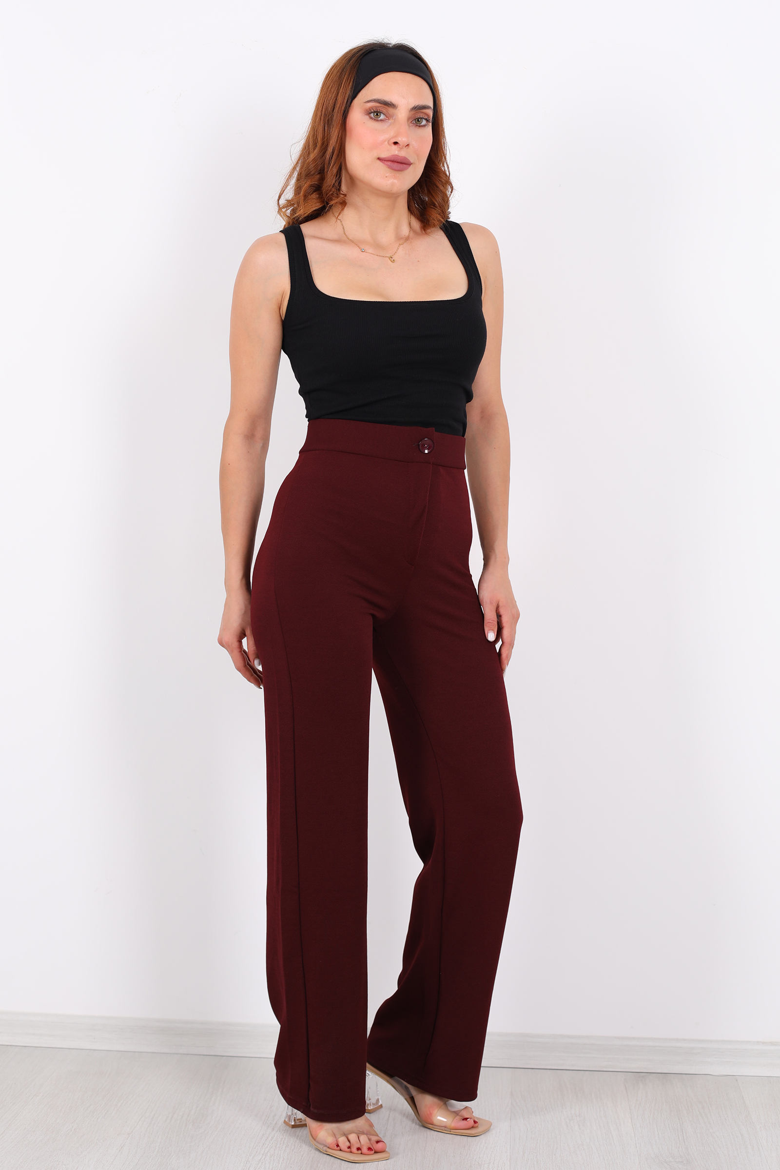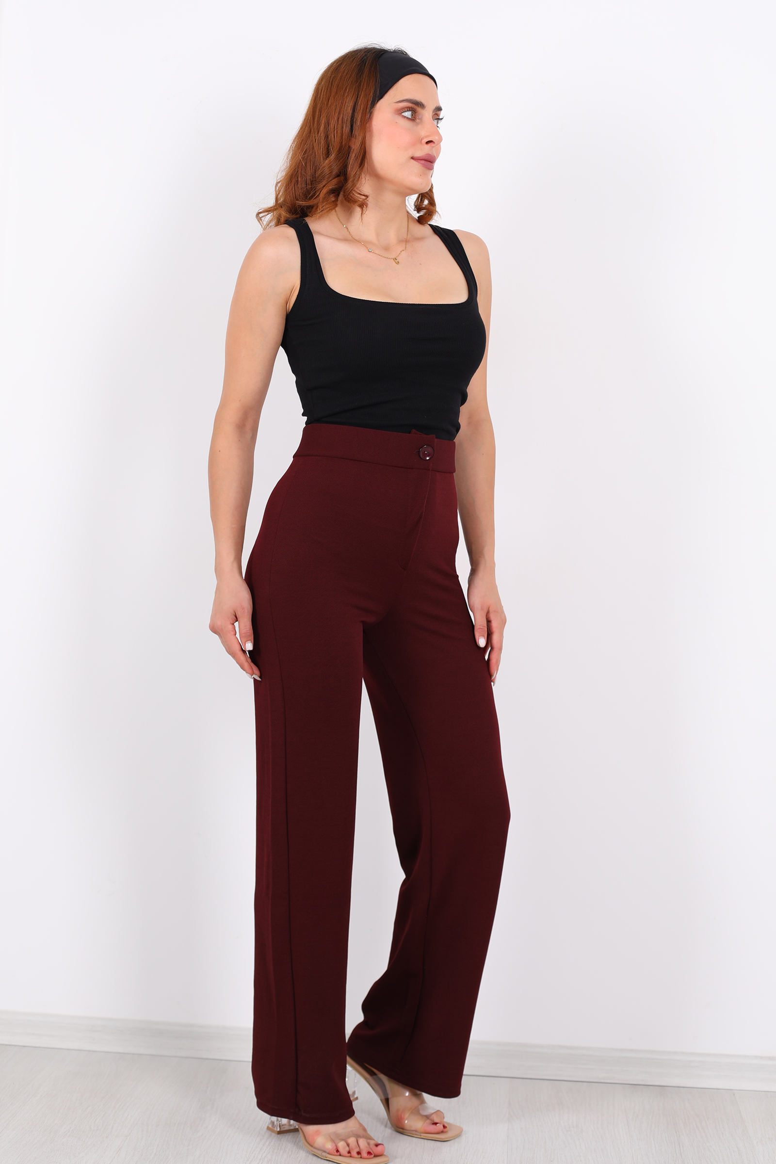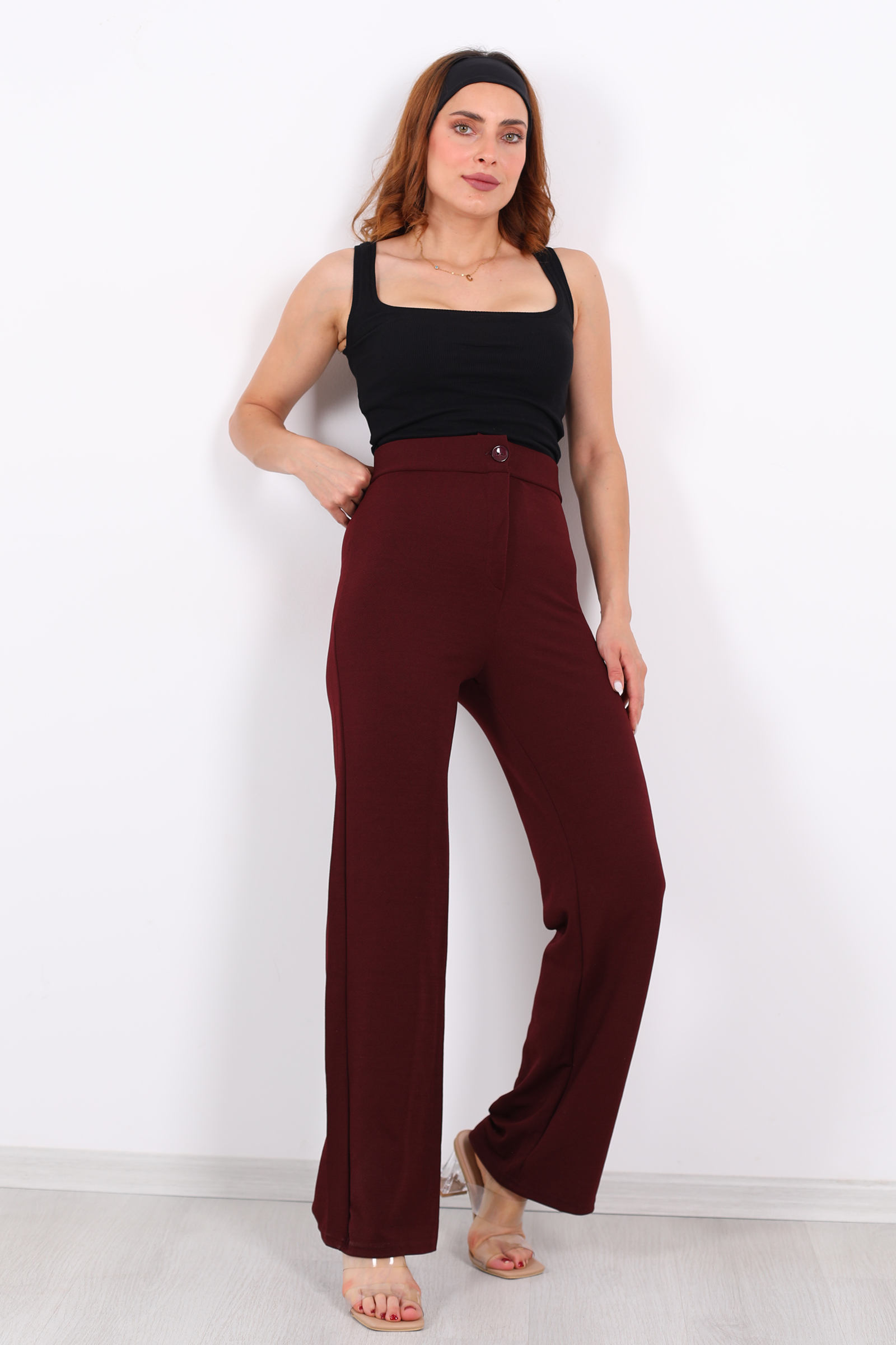 Zarafetin koyu tonu ile rahatlığı birleştiren bu bordo krep palazzo pantolon, gardırobunuza sofistike bir dokunuş katıyor. Etek gibi akan geniş palazzo paçalar, her adımda akışkan ve özgür bir duruş sağlarken, krep kumaşın sürtünmesiz ve hafif dokusu konforu ön planda tutar. Pasta‑bordo tonu, koyu tonlarla derin uyum yakalarken açık tonlarla da harika kontrast oluşturur.