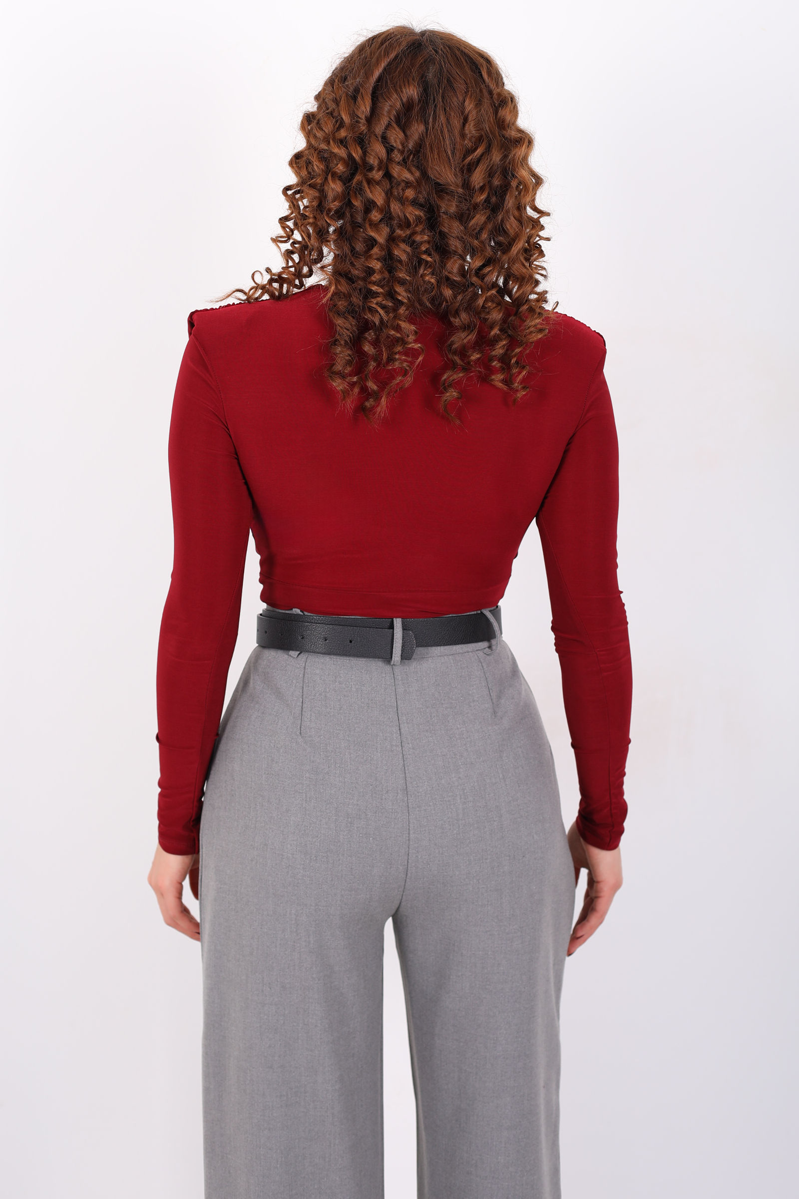 Bu şık bordonun derin ve asil tonunu, yüksek bel deri pantolonlarla veya dökümlü kumaş pantolonlarla birleştirerek gece davetlerine, şık yemeklere veya ofis ortamına rahatlıkla taşıyabilirsiniz. Gardırobunuzu çeşitlendirmek için diğer kadın body modellerimize de göz atmayı unutmayın.