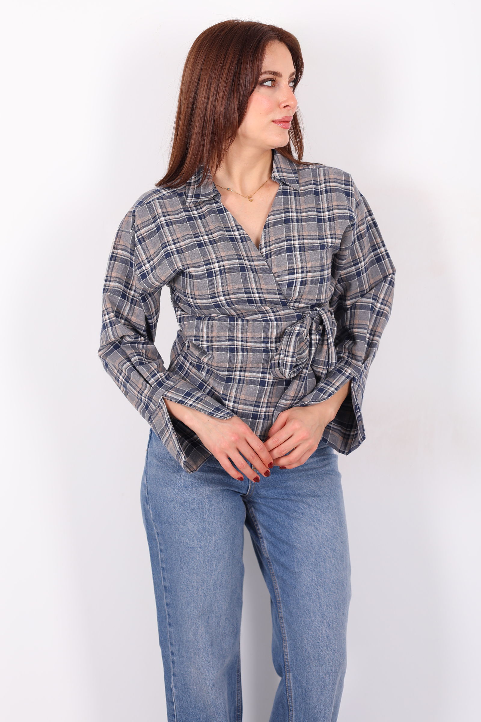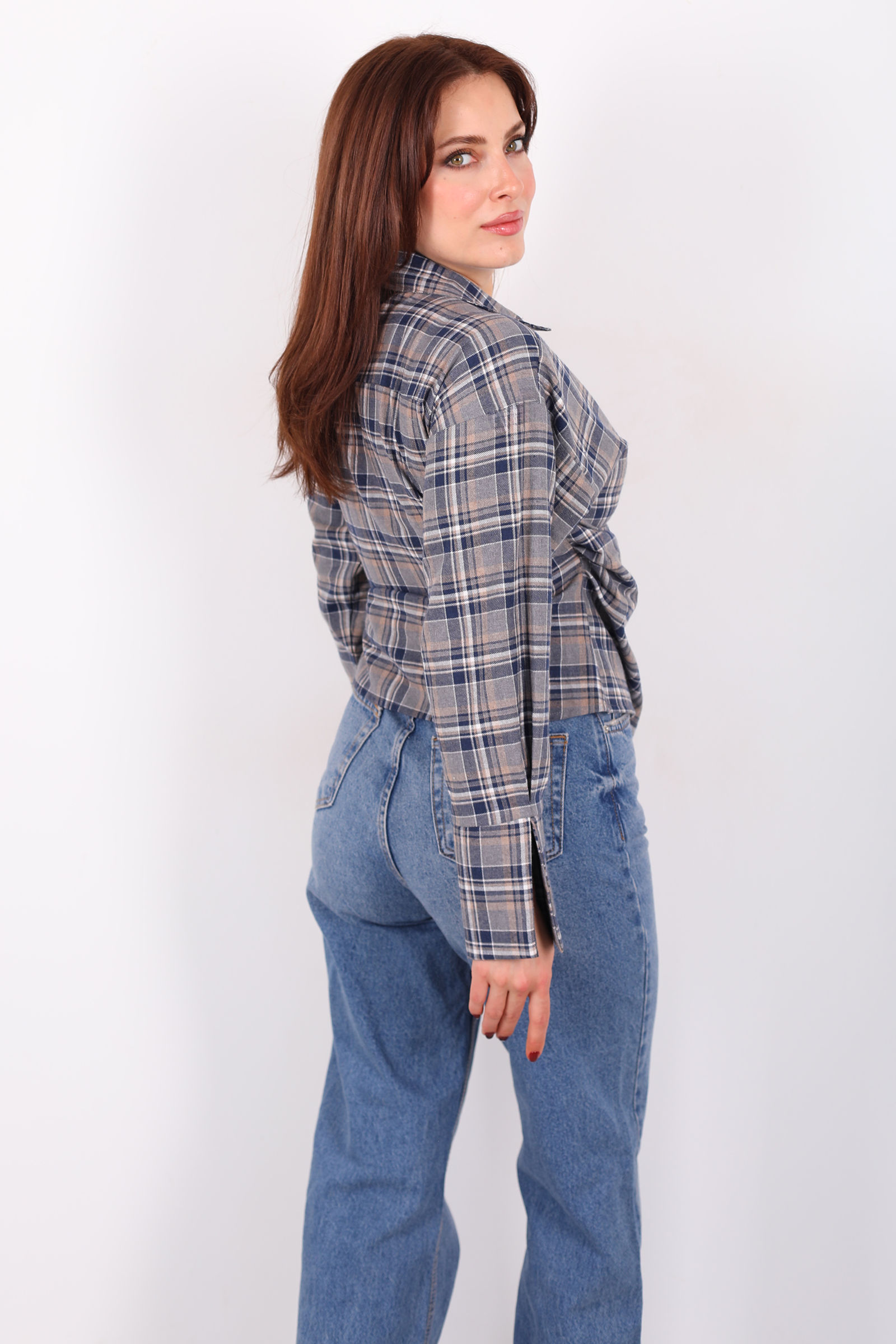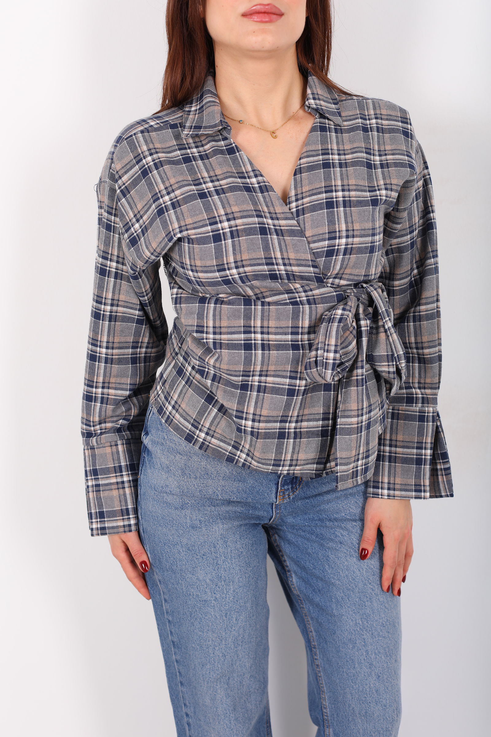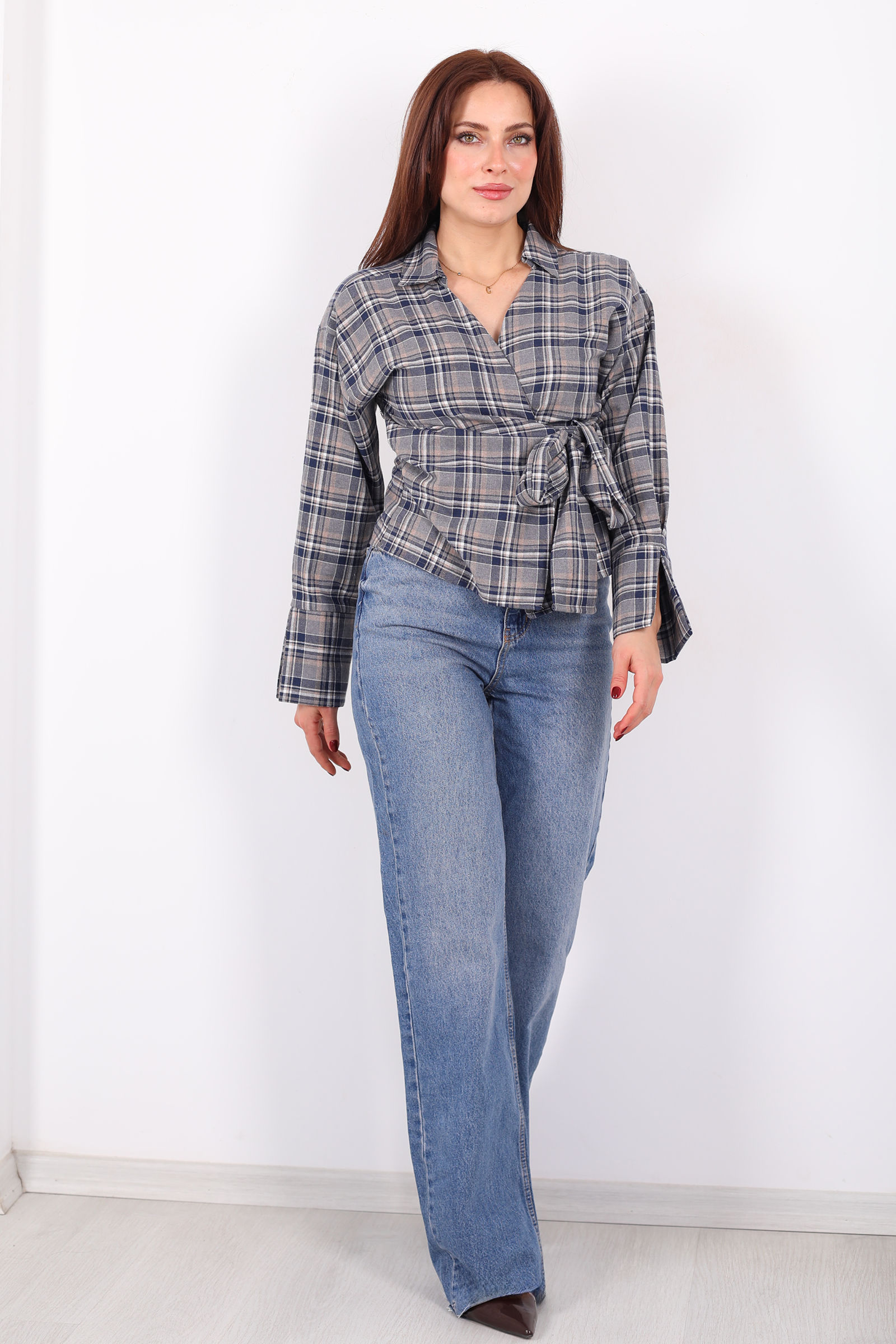 Modern çizgileri klasik ekose deseniyle buluşturan bu gri kruvaze yaka gömlek, günlük kombinlerinize zarif ve dinamik bir dokunuş katar. Yandan bağlamalı tasarımı siluetinize feminen bir vurgu yaparken, hafif kumaşı gün boyu konfor sağlar. Jean veya kumaş pantolonlarla kolayca eşleşen bu model, şehir stilinizin temel parçalarından biri olmaya aday. Sokak stilinden ofis şıklığına kadar her ortamda şık ve etkileyici bir görünüm sunar.