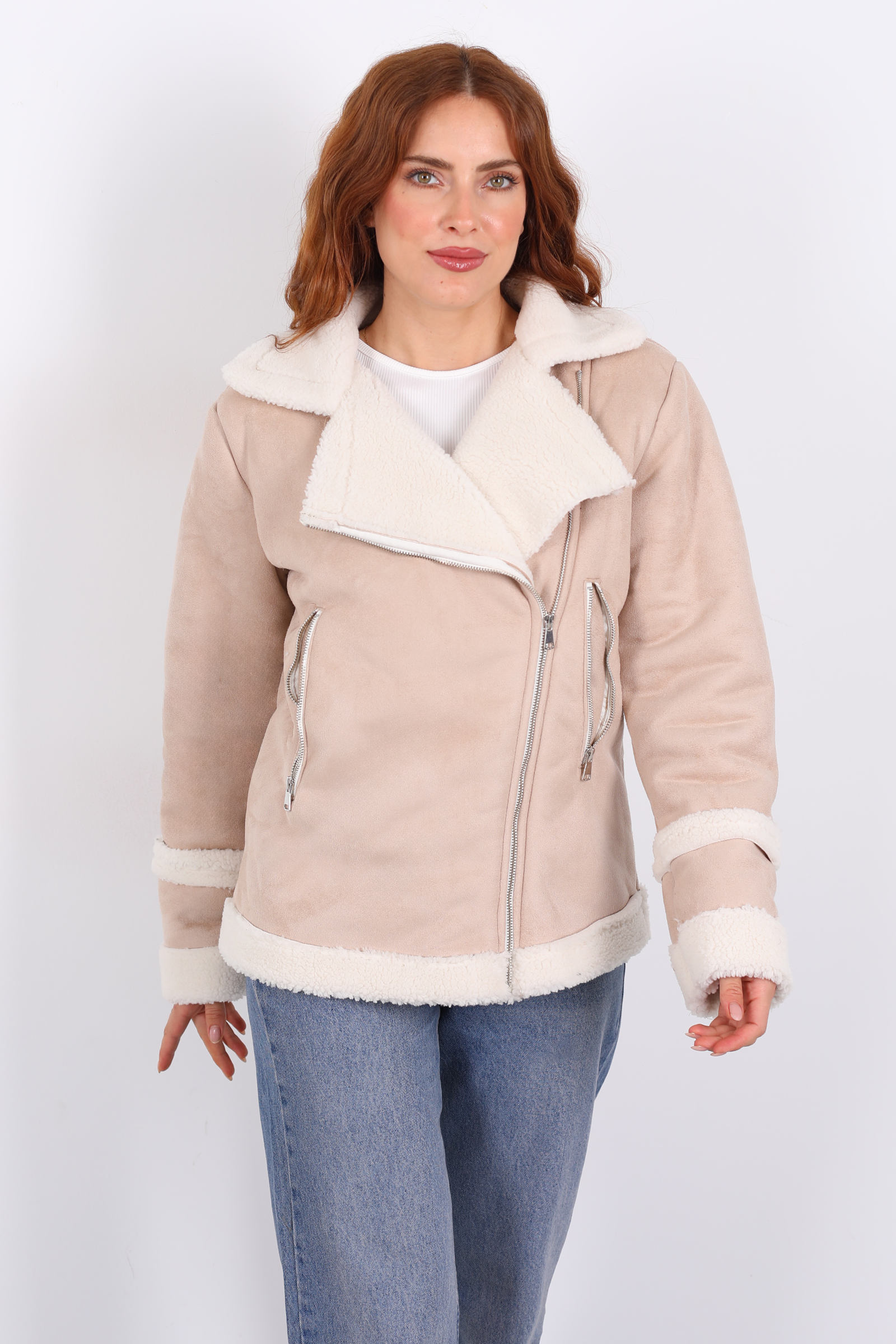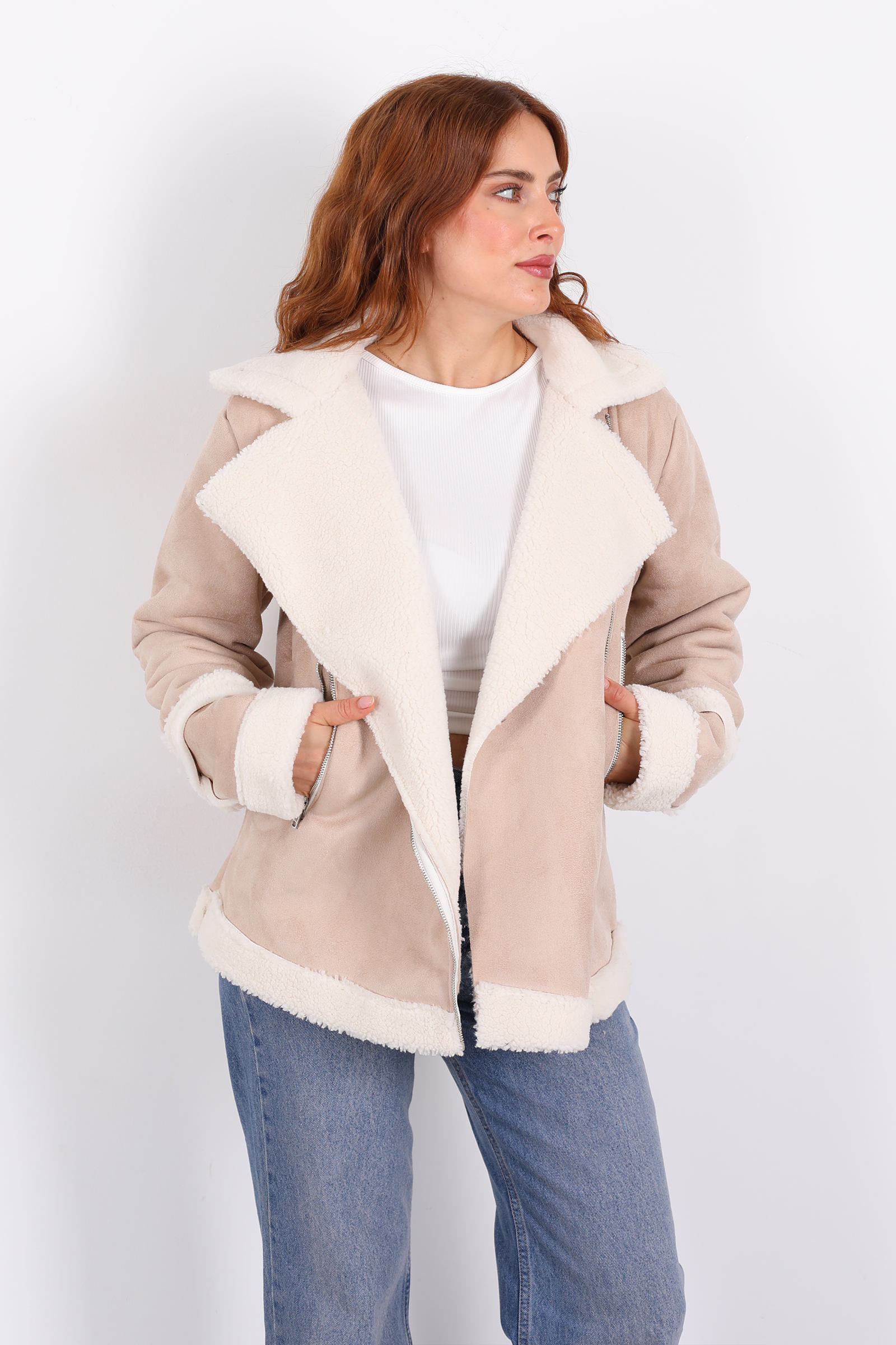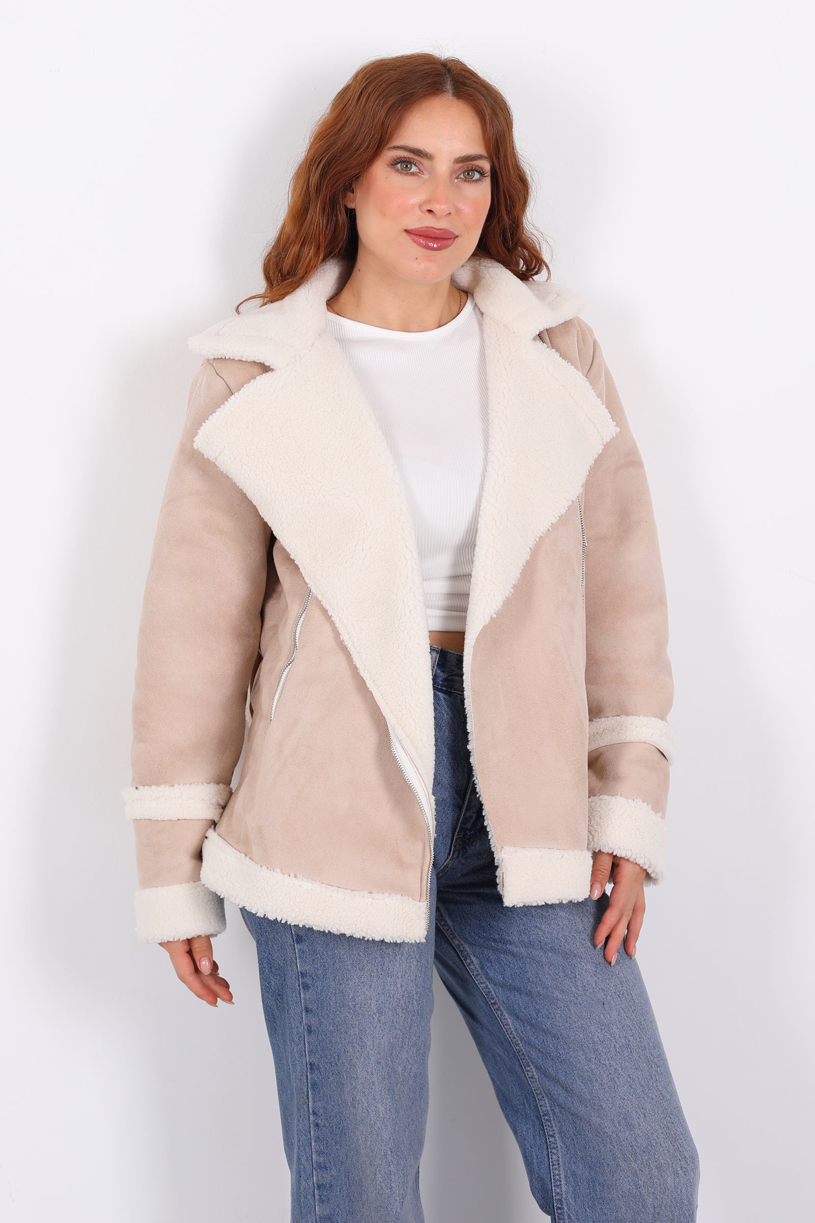 Kraliçemsi bir duruş sergileyen bu krem süet mont, kürk biyeli yakasıyla zarafeti yumuşak bir dokunuşla tamamlıyor. Montun krem rengi, doğadan ilham alan sıcak bir nötr tonu yansıtırken süet dokusu sofistike ve davetkar bir his katıyor.Süet yüzeyi, mat ve kadifemsi bir his sunar; sentetik ya da gerçek süet olabilir, her iki durumda da dış görünüşünde zarif bir yapı vardır.